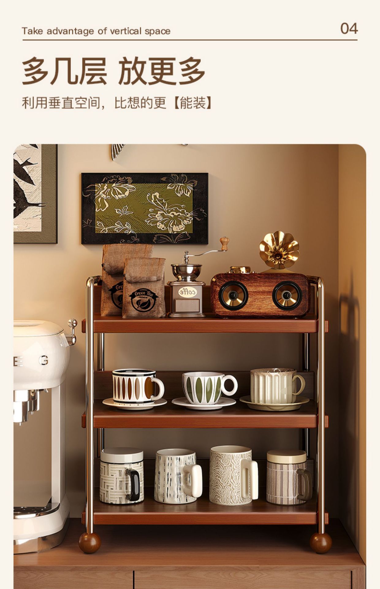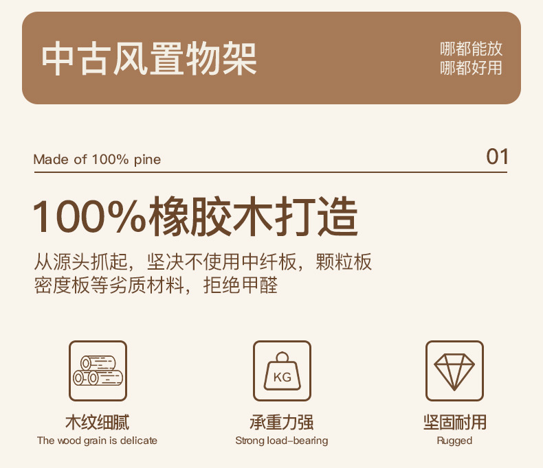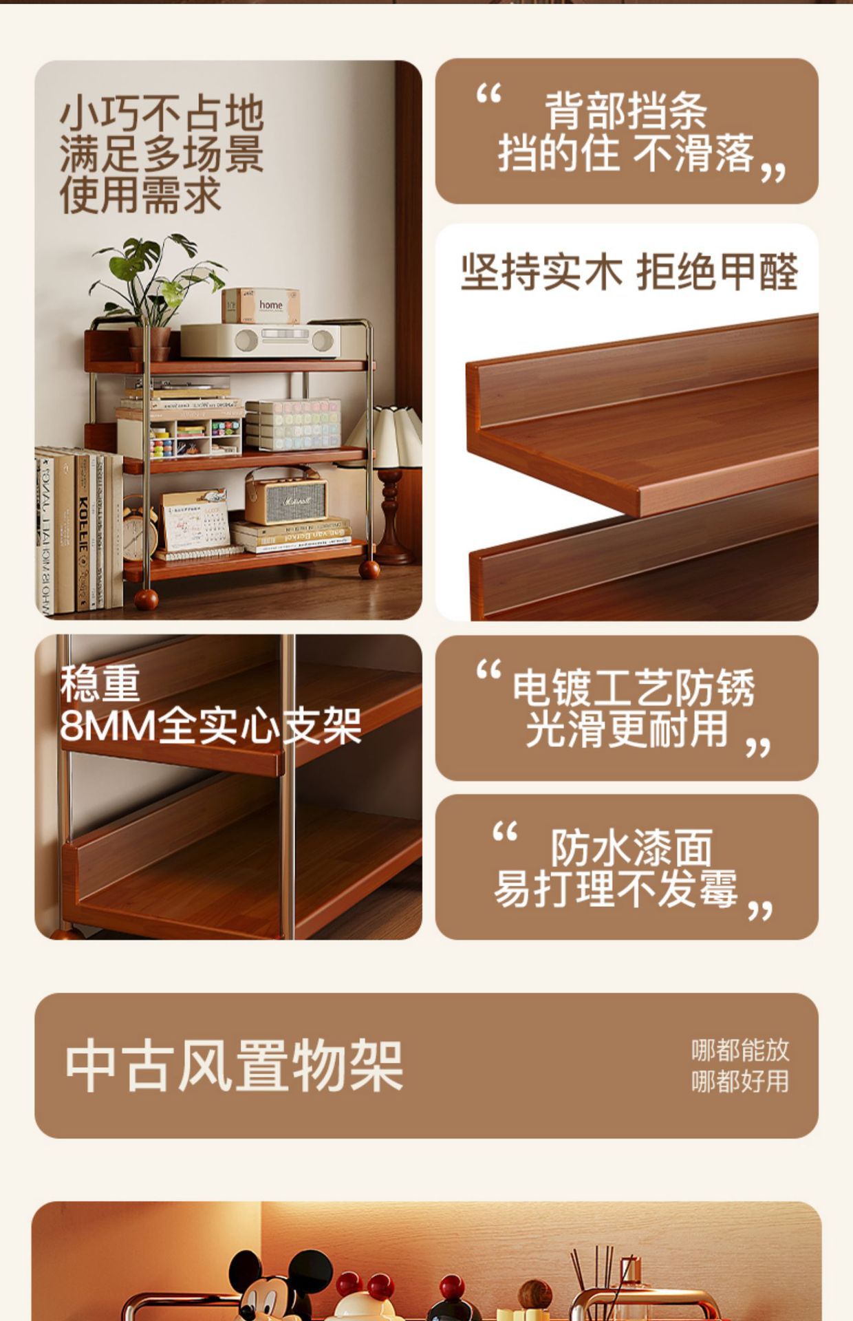 • [중세 원목] 3단 수납선반 [뒷면에 배플이 높아짐]