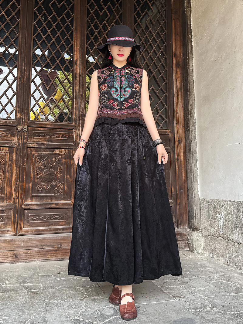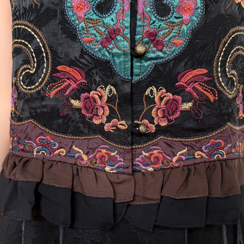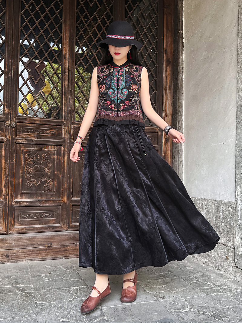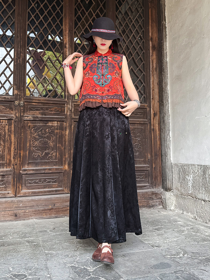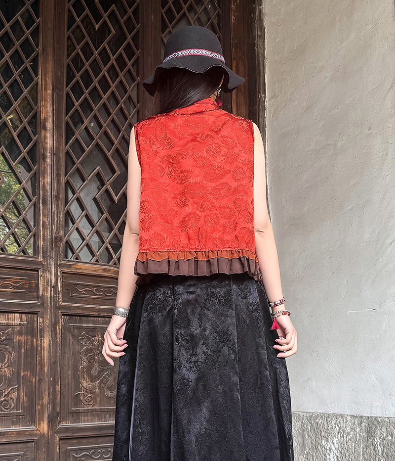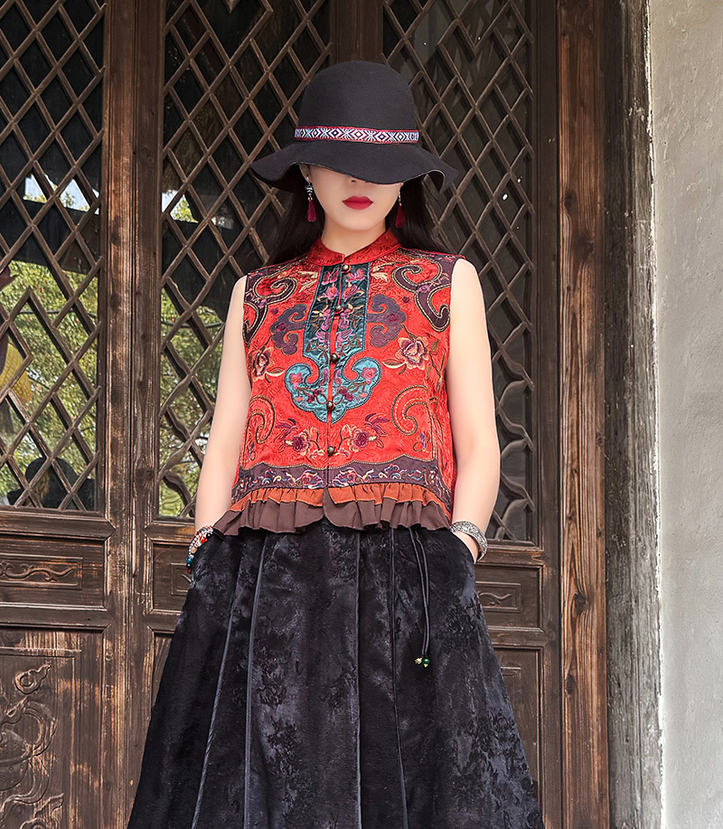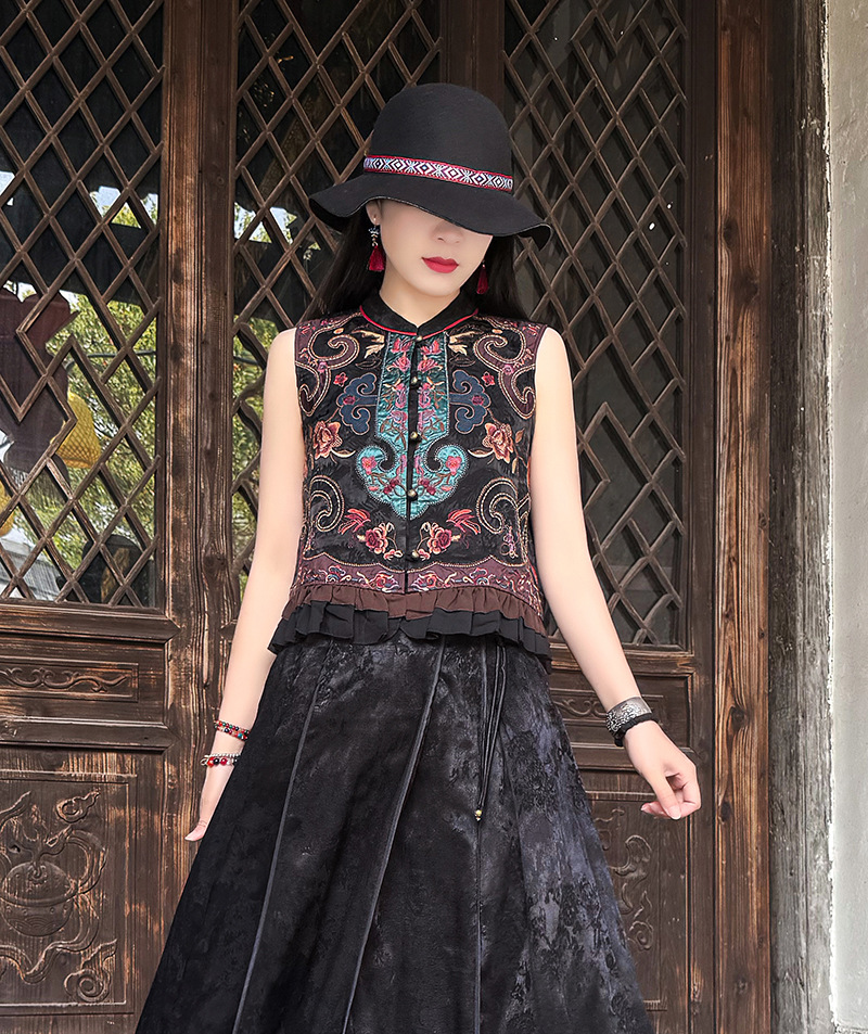 여성을위한 여름 얇은 조끼 민족 스타일 수 놓은 조끼 짧은 스타일 경량 통기성 중국 스타일 스탠드 칼라 대형 탑 여성 의류스토어 가기