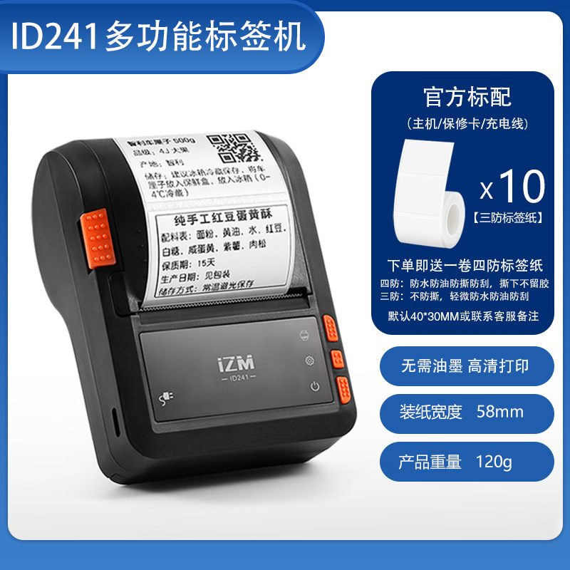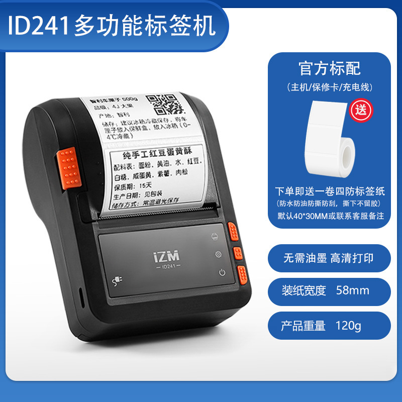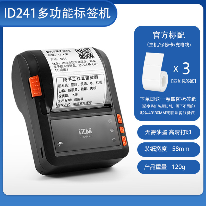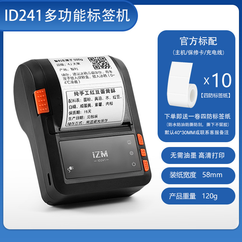 • ID241은 주문 시 4방형 라벨 용지 1롤을 제공합니다(라벨은 기본적으로 40*30mm 또는 비고란에 기재되어 있음) - 공식 표준