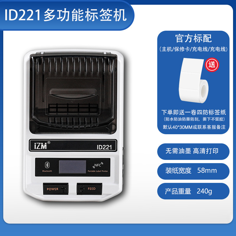 • ID221 주문 시 4방형 라벨 용지 1롤이 무료로 제공됩니다(라벨은 기본적으로 40*30mm 또는 비고란에 표시됩니다) - 공식 표준