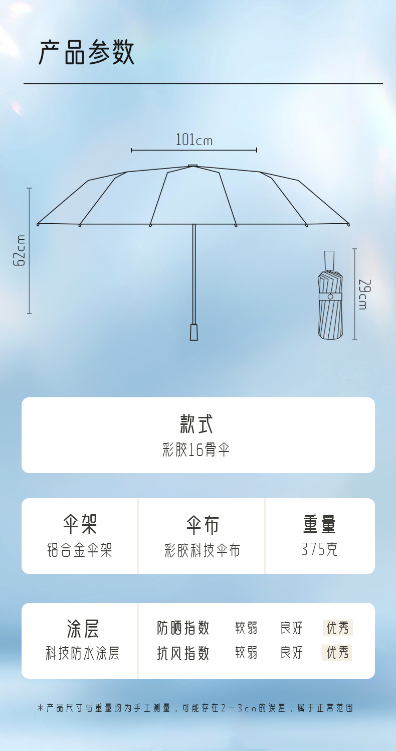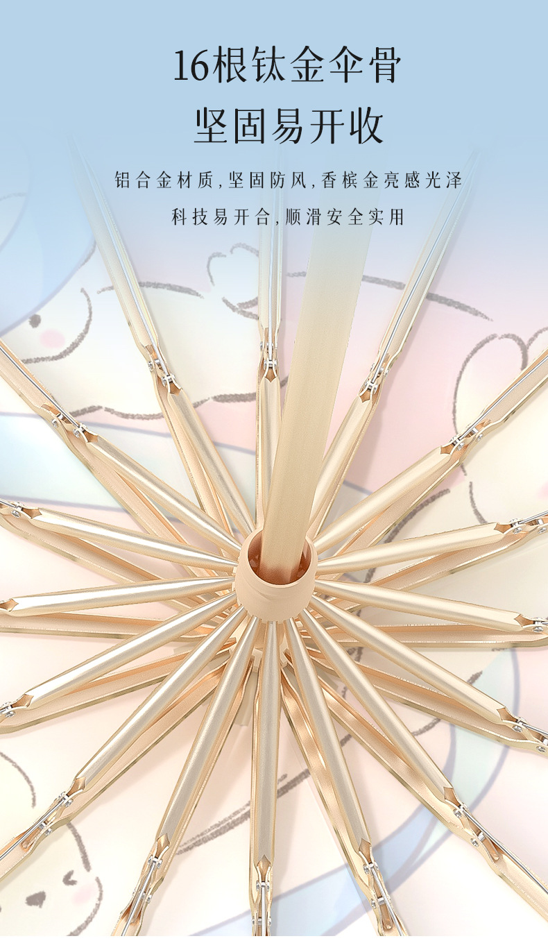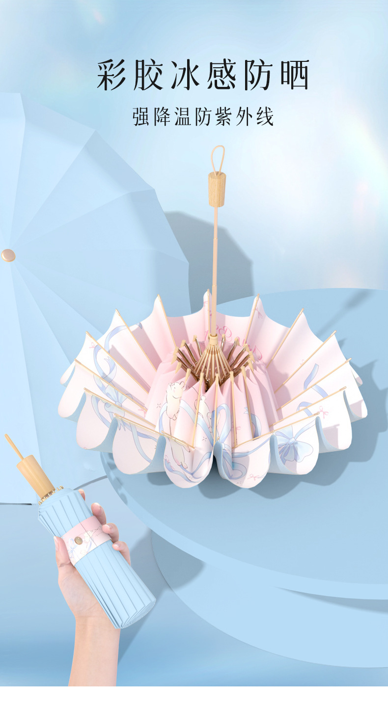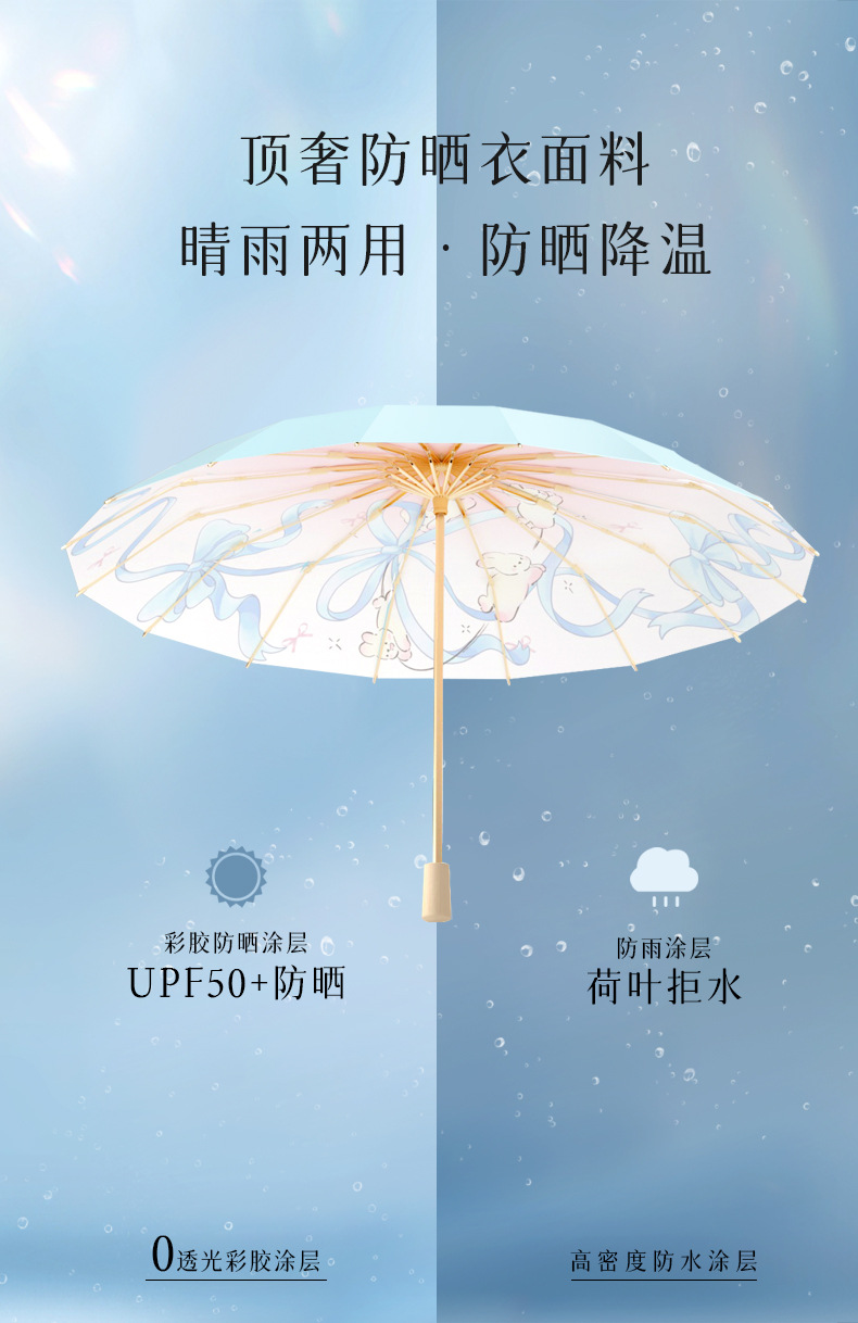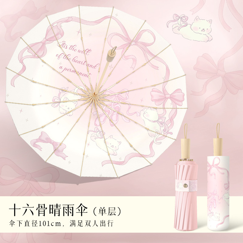 맑고 비오는 이중 목적 선 스크린 태양 우산 높은 색 접착제 태양 우산 및 내구성 16-뼈 접는 우산 경화스토어 가기