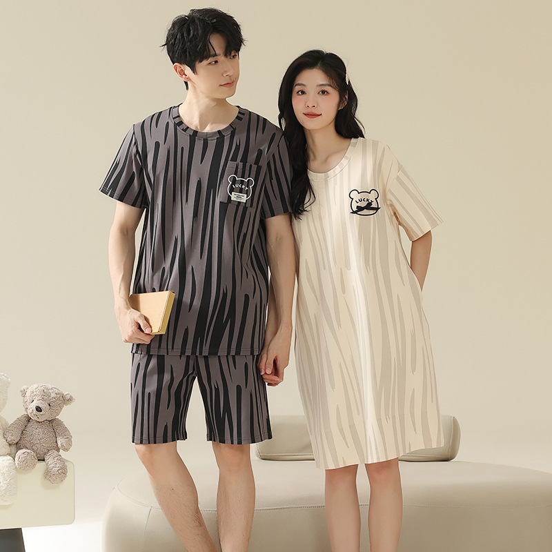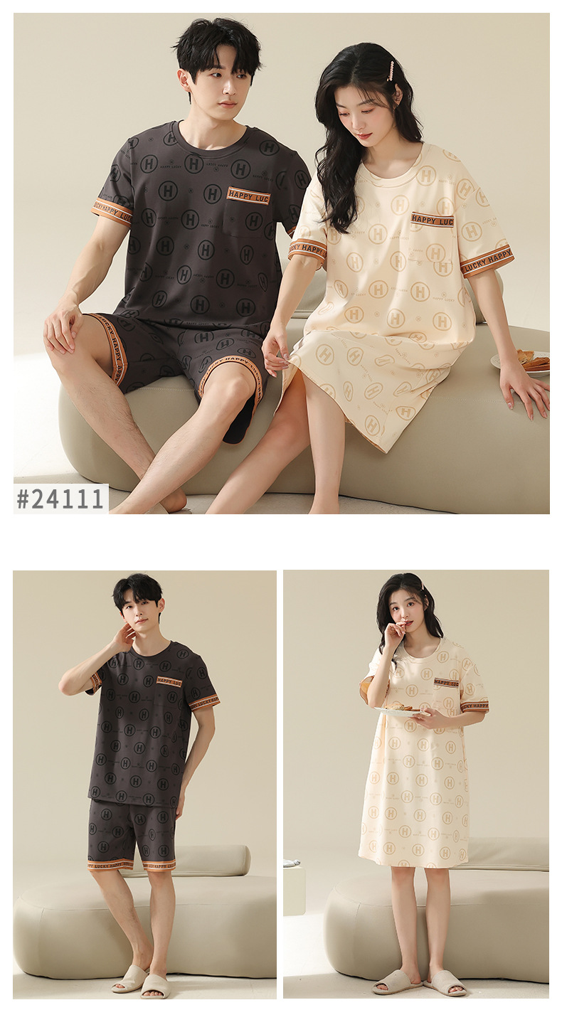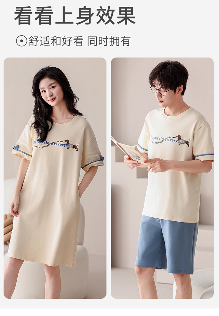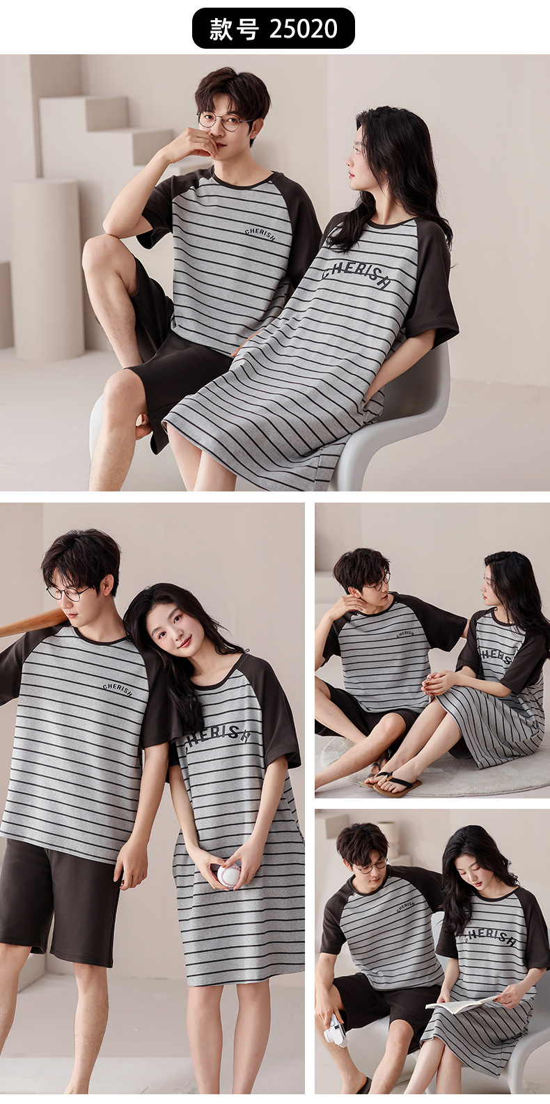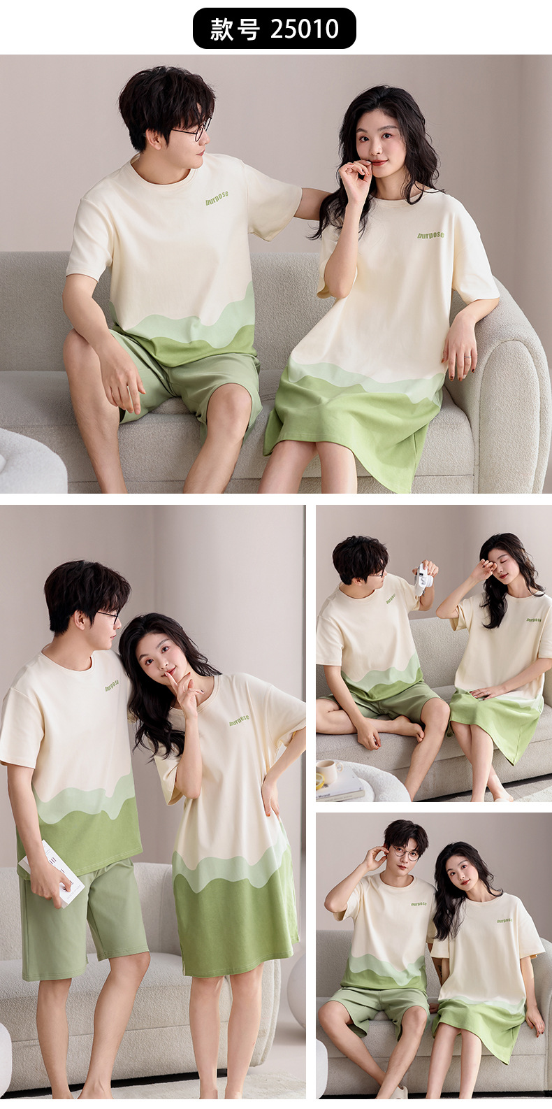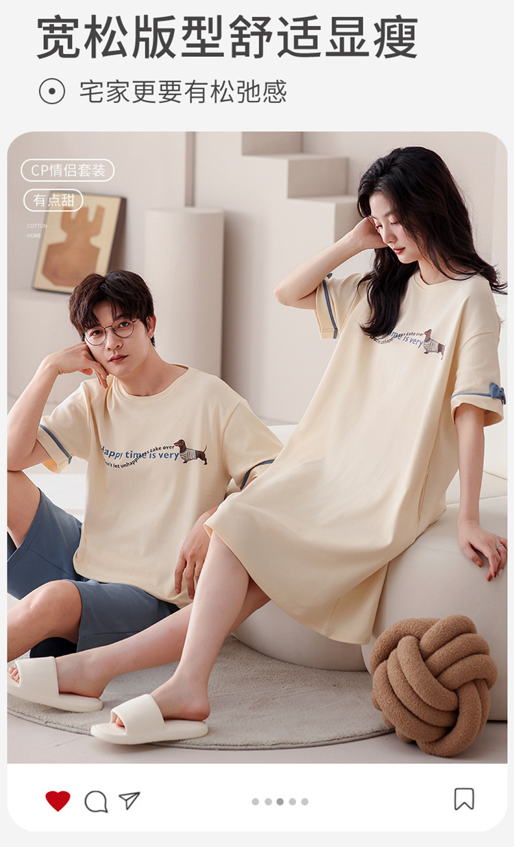커플 잠옷 여름 항균 순수 코튼 얇은 가슴 패드 반팔 잠옷 여성 캐주얼 라운드 넥 남성 홈웨어 세트스토어 가기