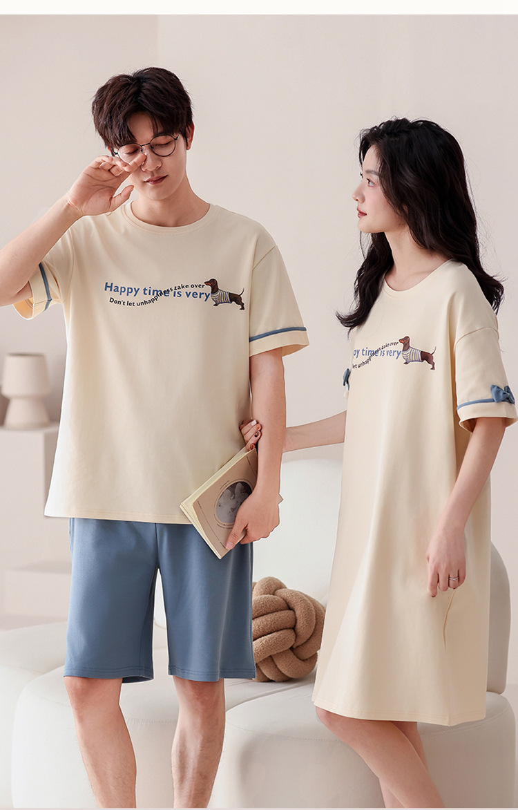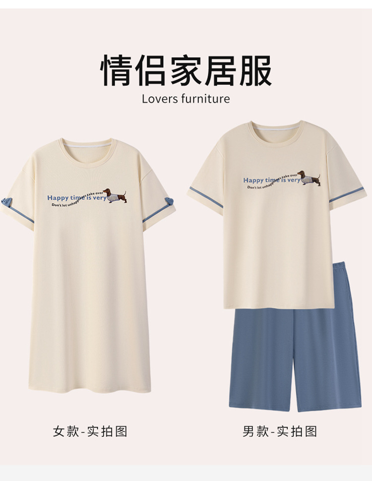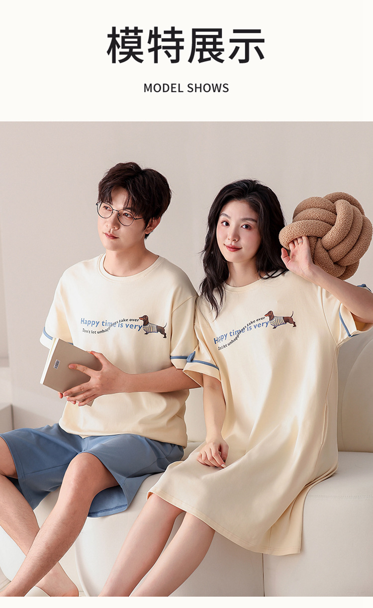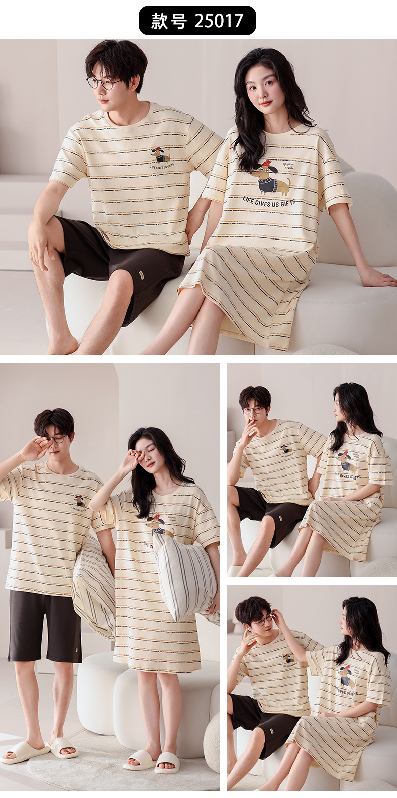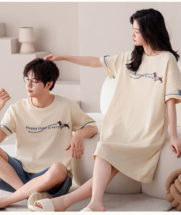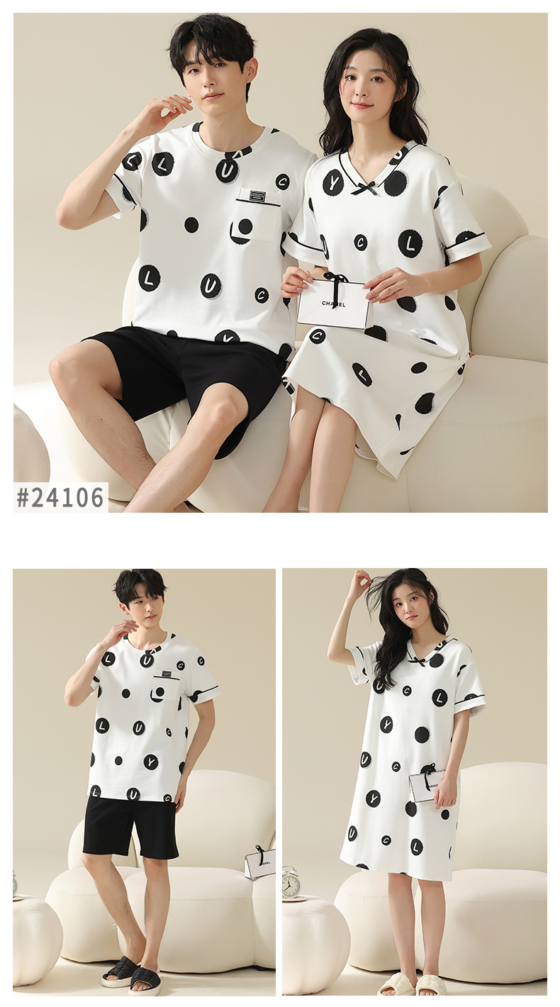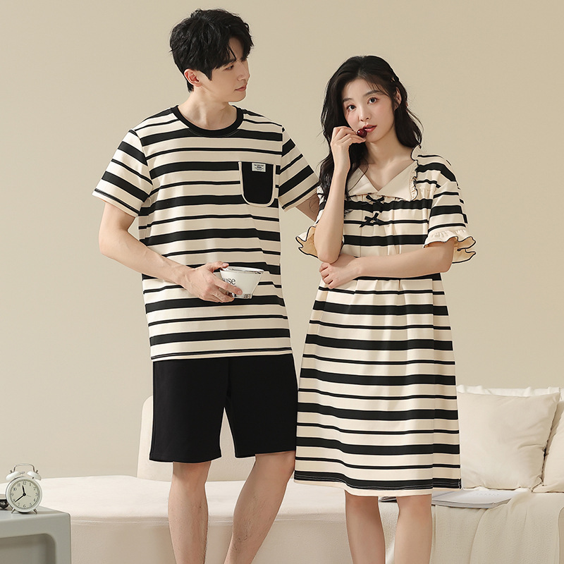 커플 잠옷 여름 항균 순수 코튼 얇은 가슴 패드 반팔 잠옷 여성 캐주얼 라운드 넥 남성 홈웨어 세트스토어 가기