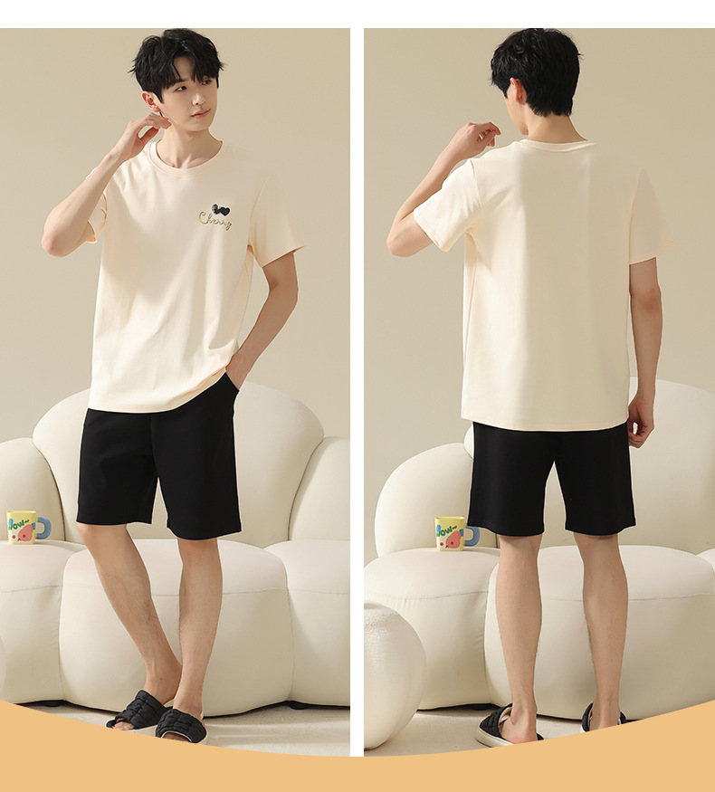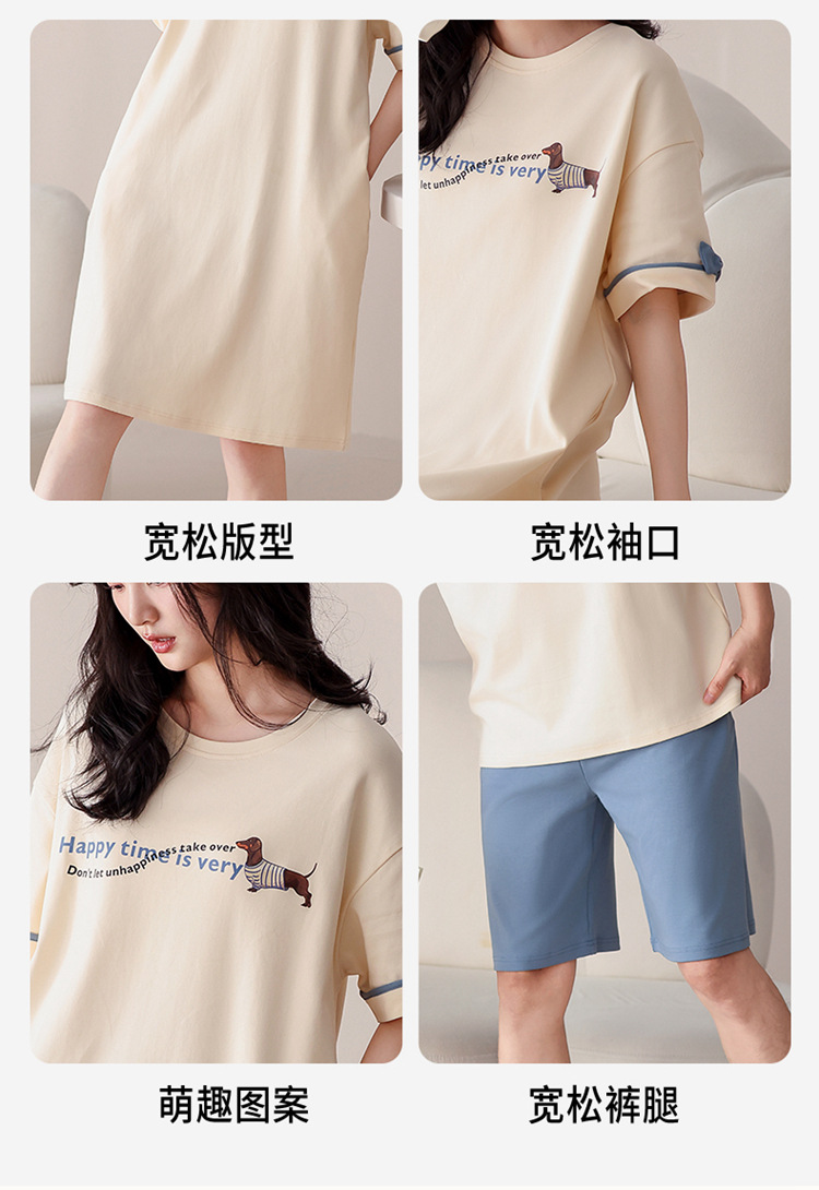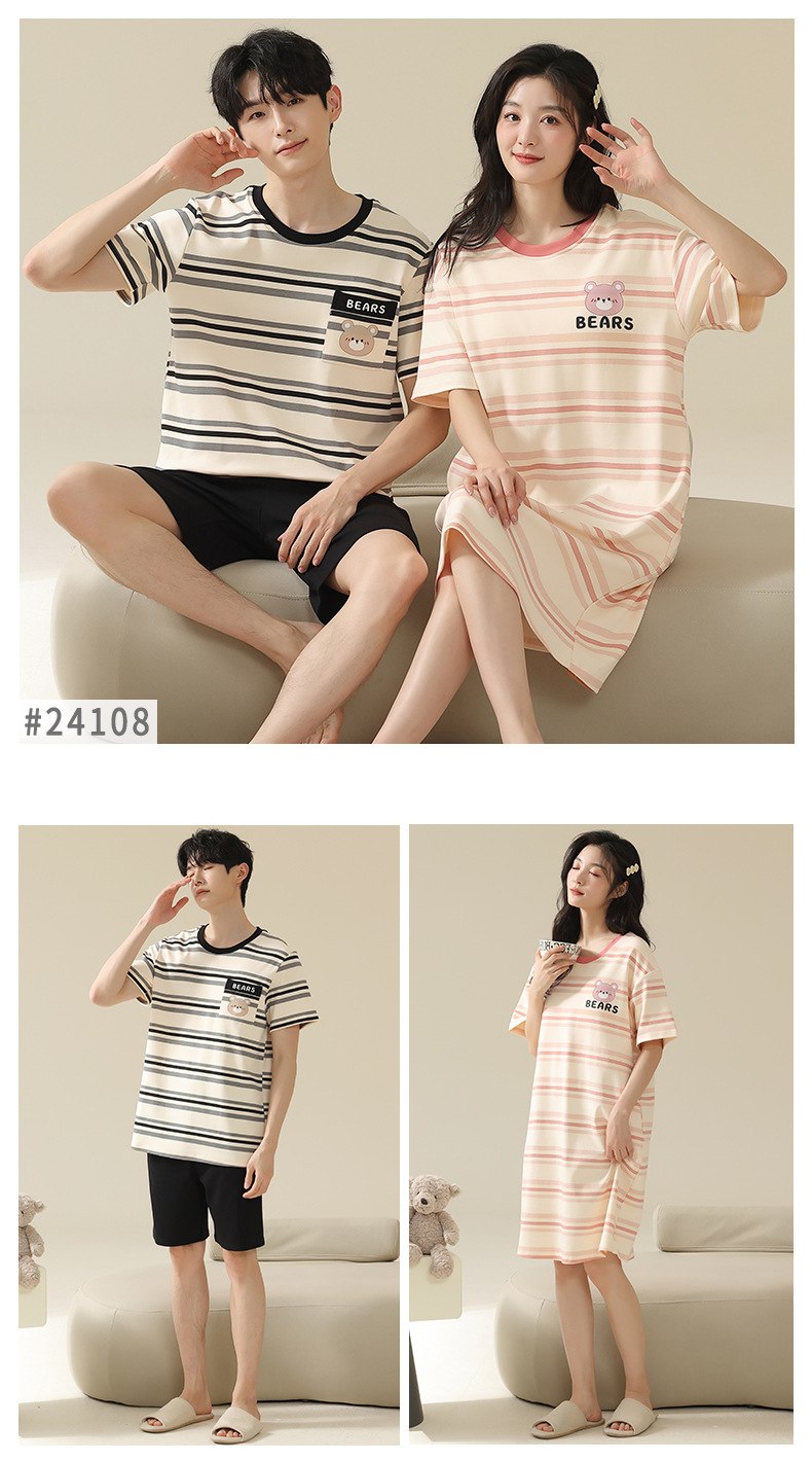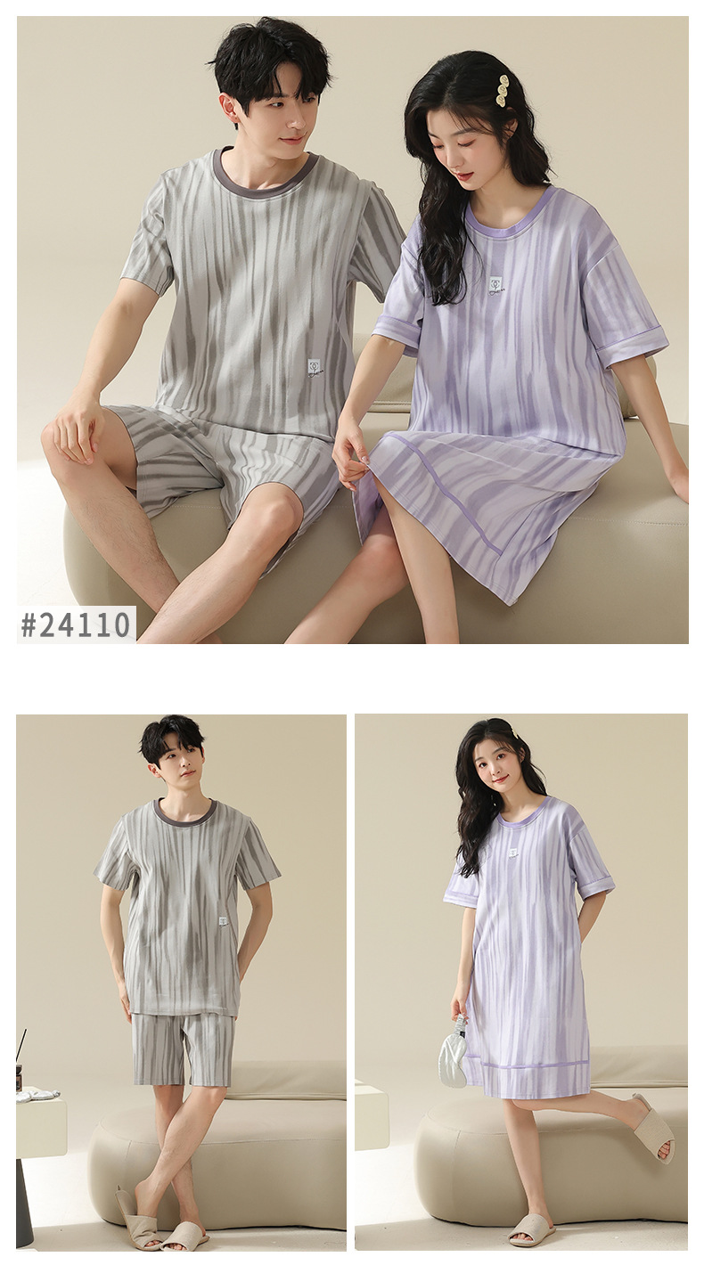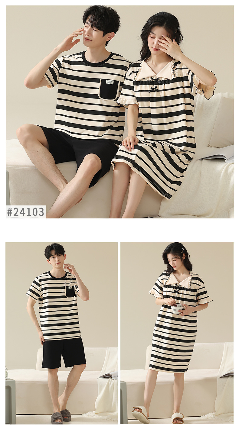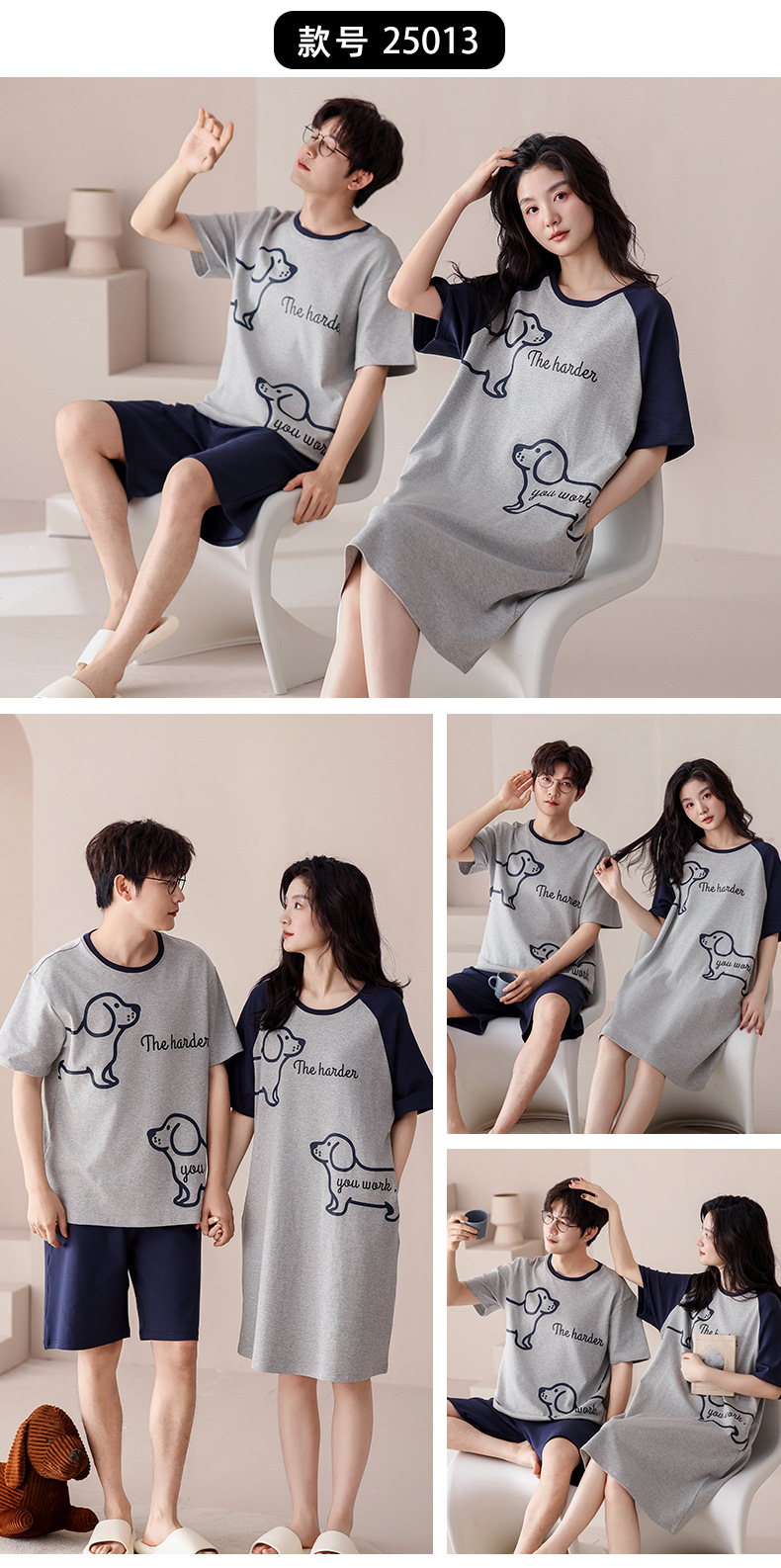 커플 잠옷 여름 항균 순수 코튼 얇은 가슴 패드 반팔 잠옷 여성 캐주얼 라운드 넥 남성 홈웨어 세트스토어 가기