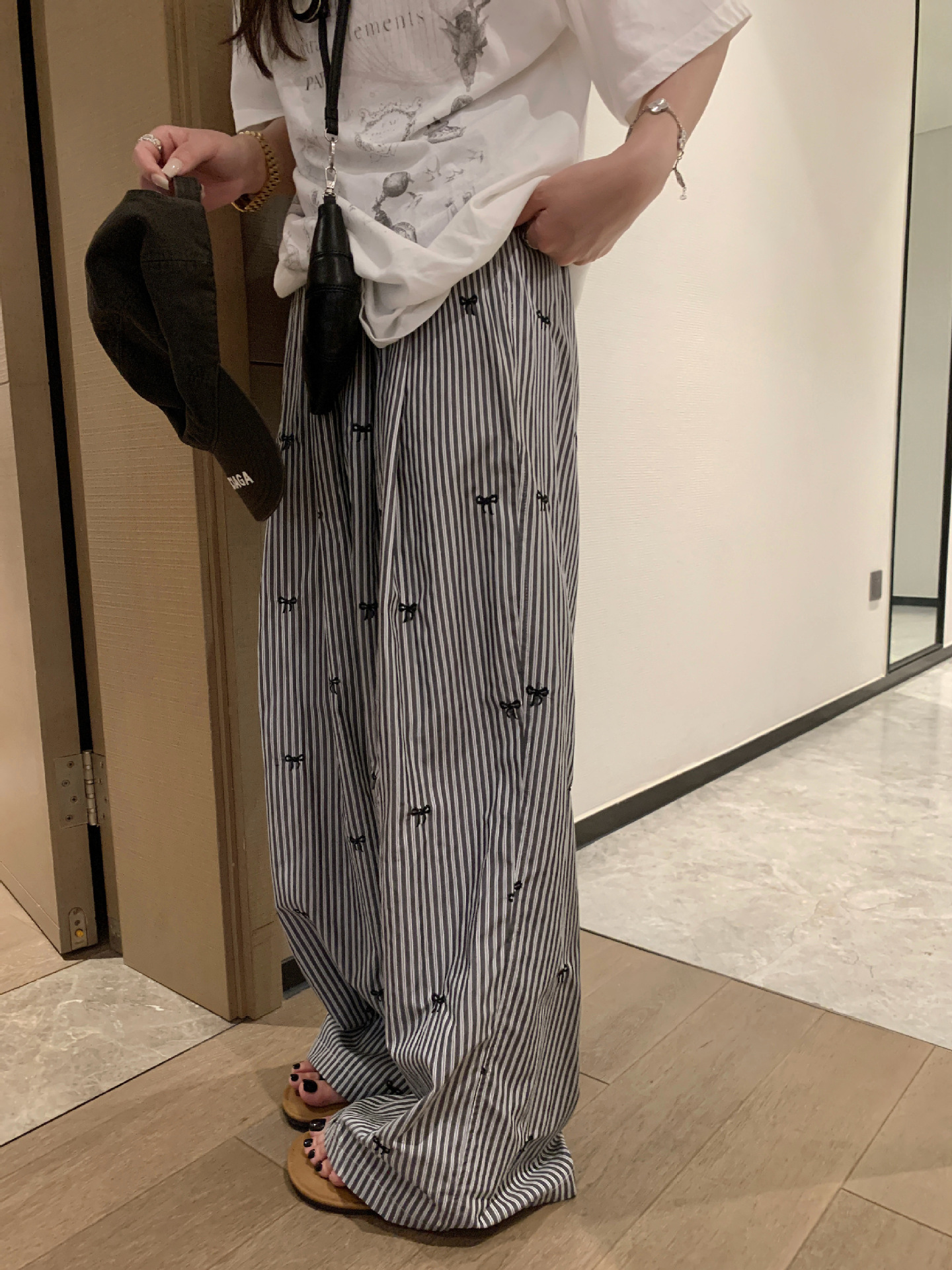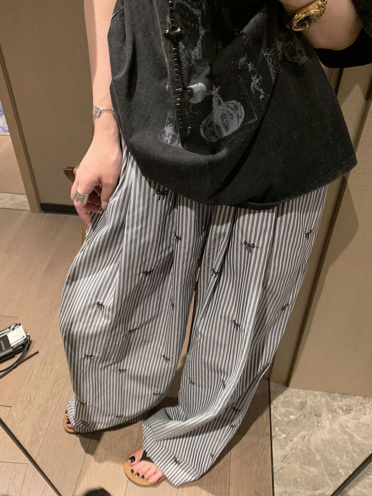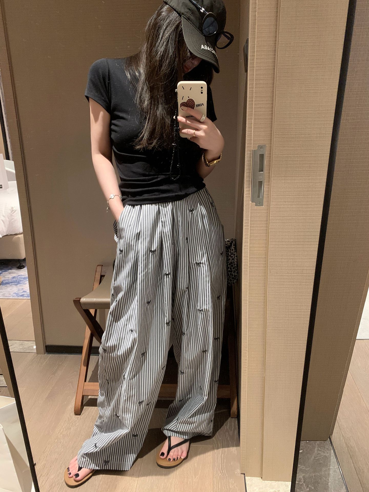本期超爱的遛弯条纹神裤,穿上不想脱系列,高腰阔腿的版型 很显腿长腰细,