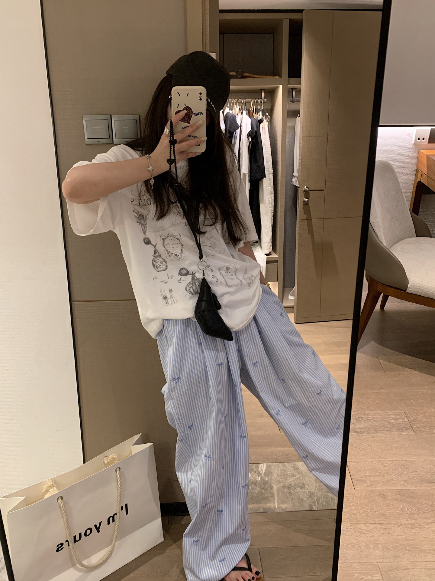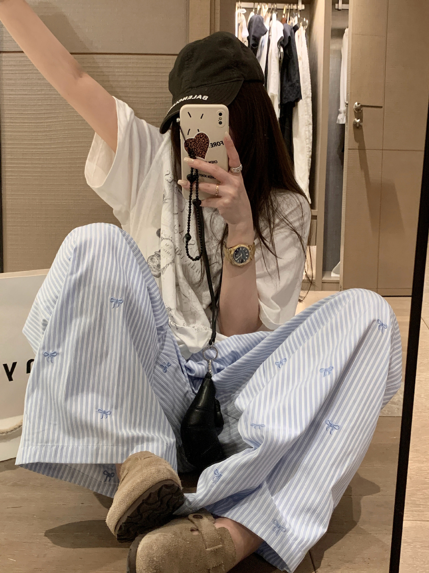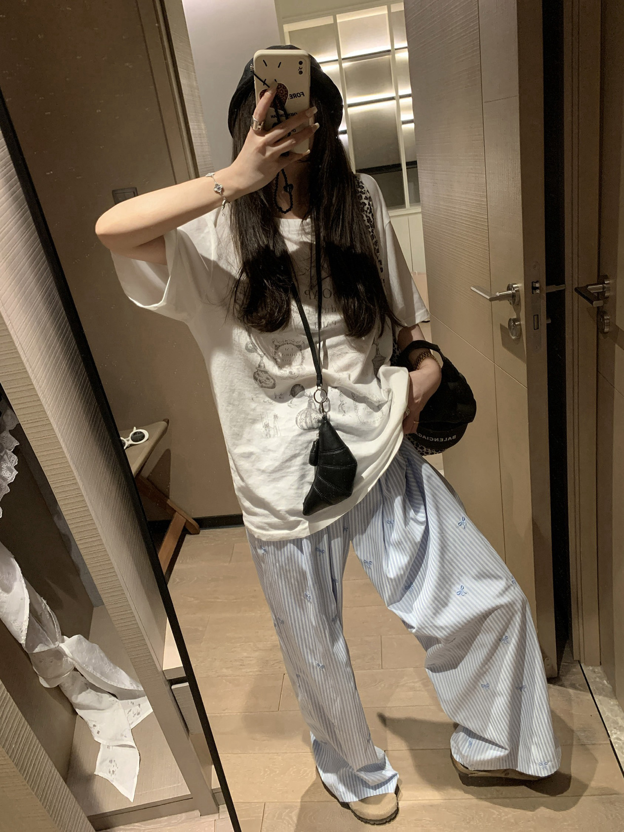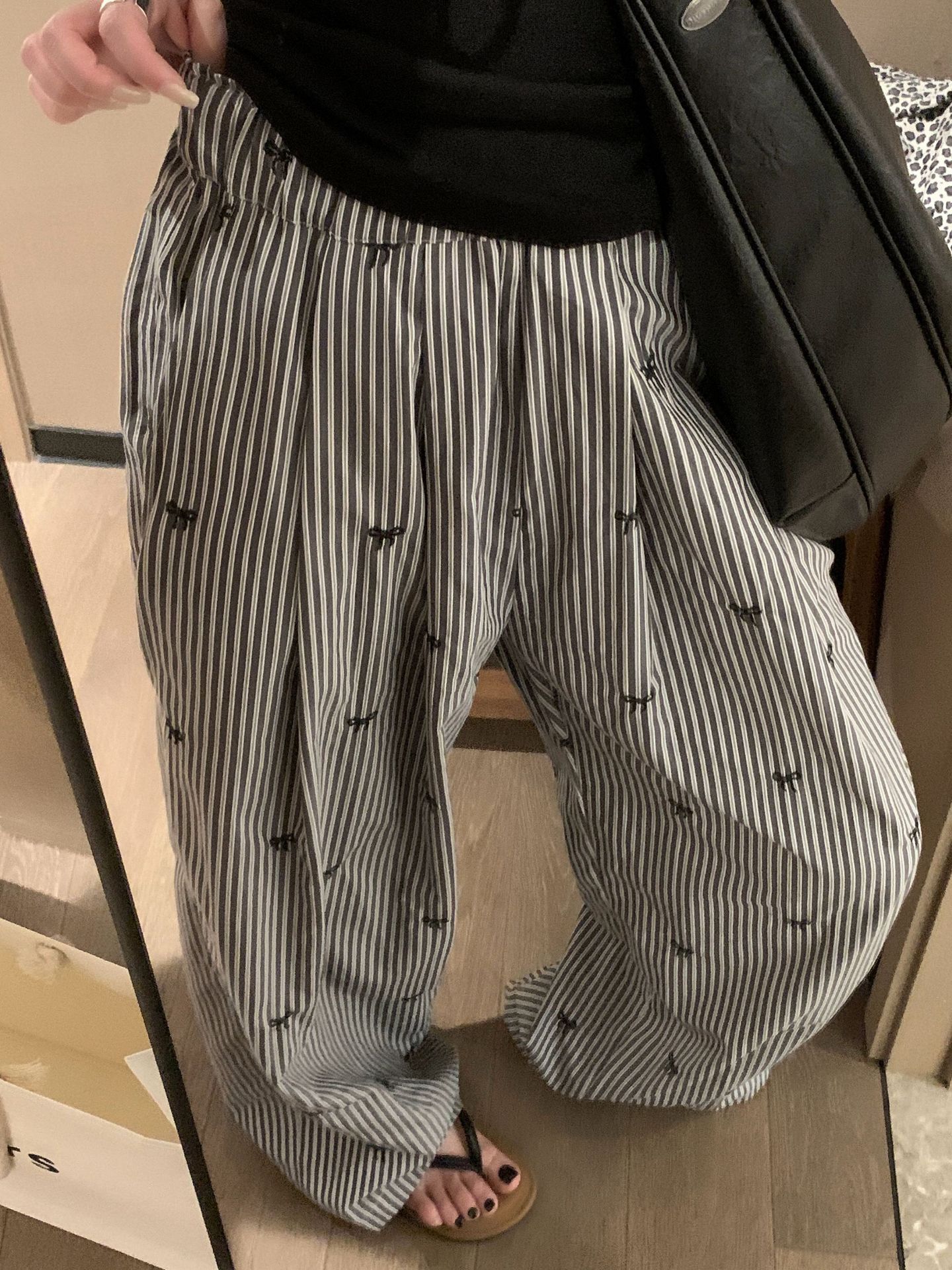 本期超爱的遛弯条纹神裤,穿上不想脱系列,高腰阔腿的版型 很显腿长腰细,