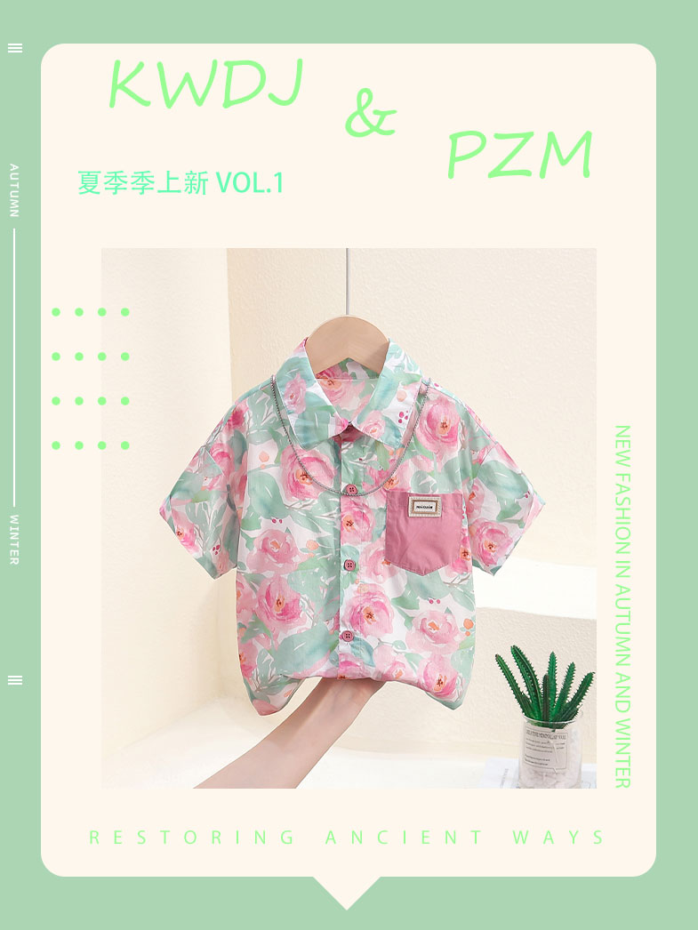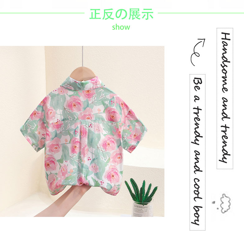 소년의 반팔 셔츠 2025 새로운 스타일 서양식 어린이 강아지 핸섬 프라이드 스트리트 탑 아기의 여름 옷 어린이 꽃 셔츠 트렌디스토어 가기