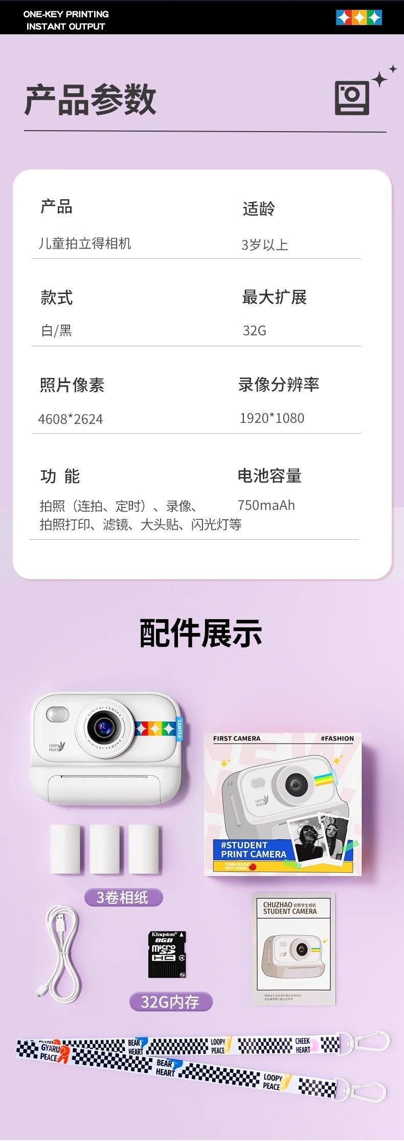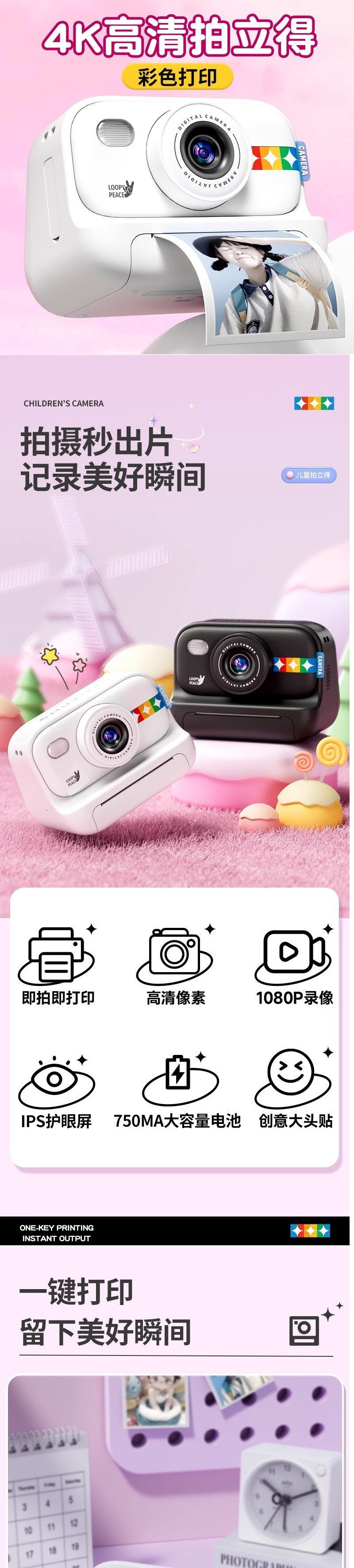 어린이 폴라로이드 소형 고화질 카메라 카메라 인쇄 사진 생일 선물 사진 디지털 장난감 소녀스토어 가기