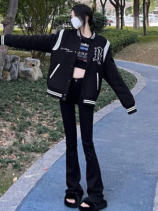 가을 여성을 위한 블랙 마이크로 플레어 디자인 청바지 새로운 다용도 하이웨이스트 슬리밍 스트레치 버전 말굽 바지스토어 가기