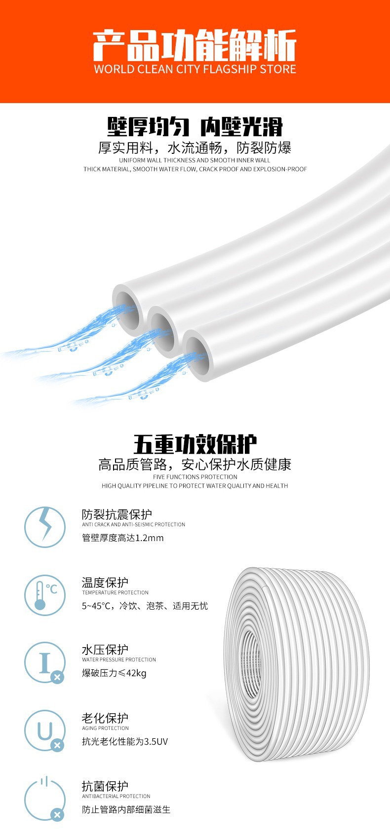 2 포인트 PE 파이프 100 미터 전체 롤 가정용 정수기 식품 등급 PE 직접 식수 파이프 호스 정수기 액세서리스토어 가기