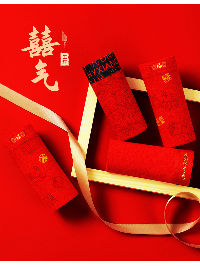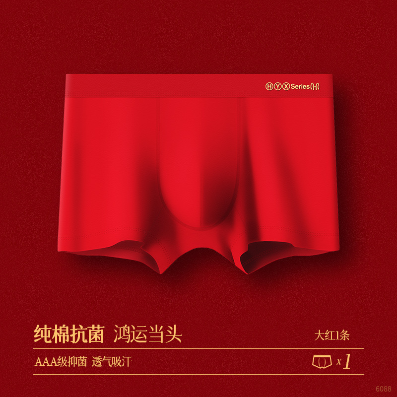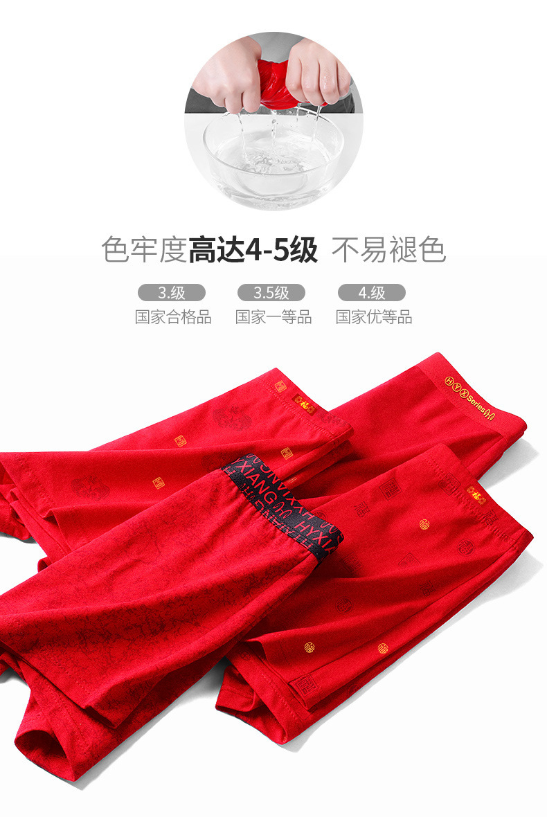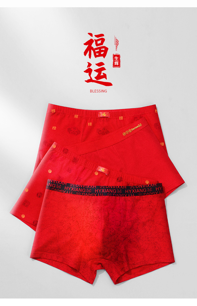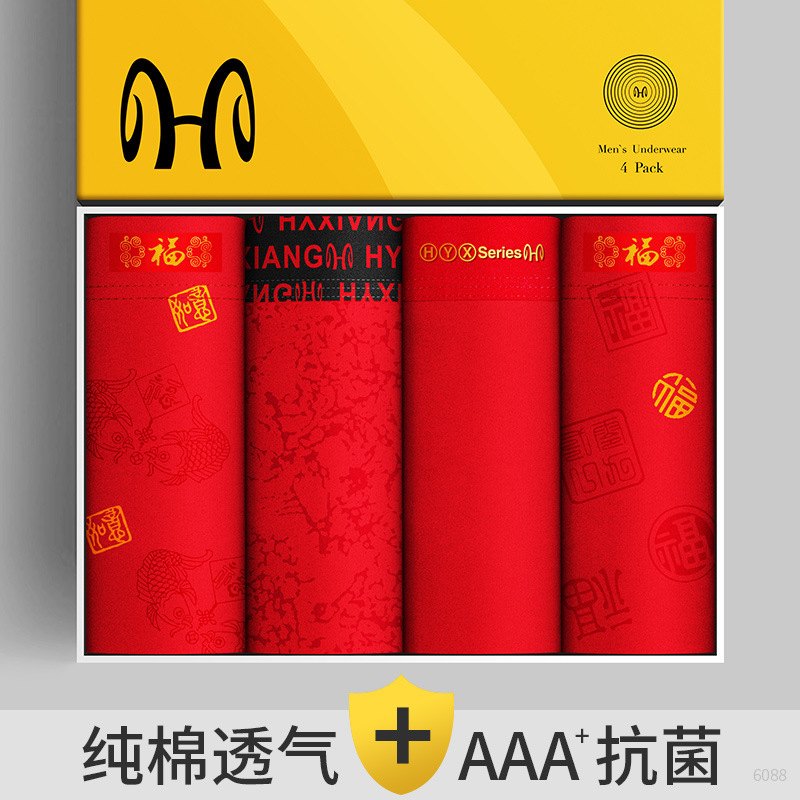 Hengyuanxiang 남성면 속옷 브닝 니언 속옷 레드 복서 웨딩 축제 속옷 4 팩스토어 가기