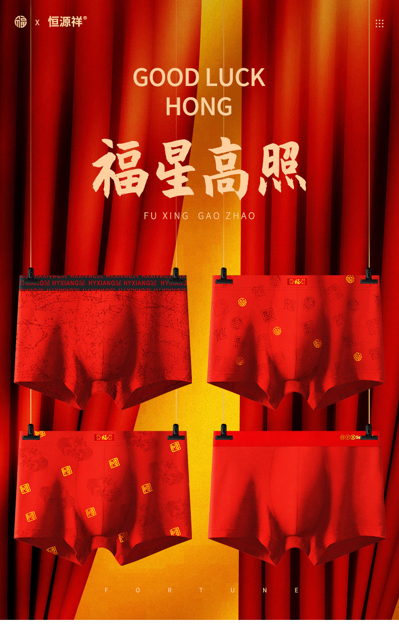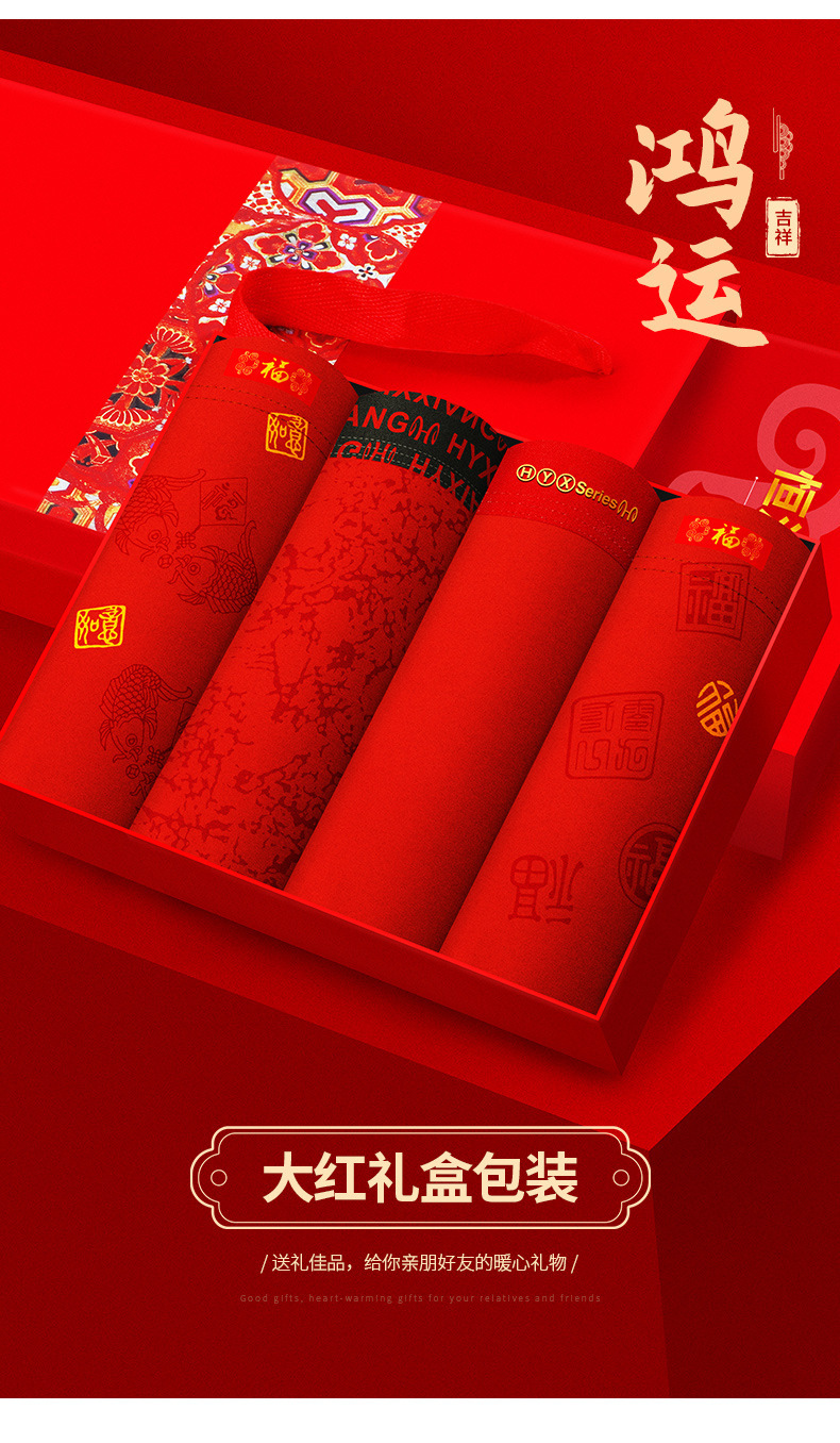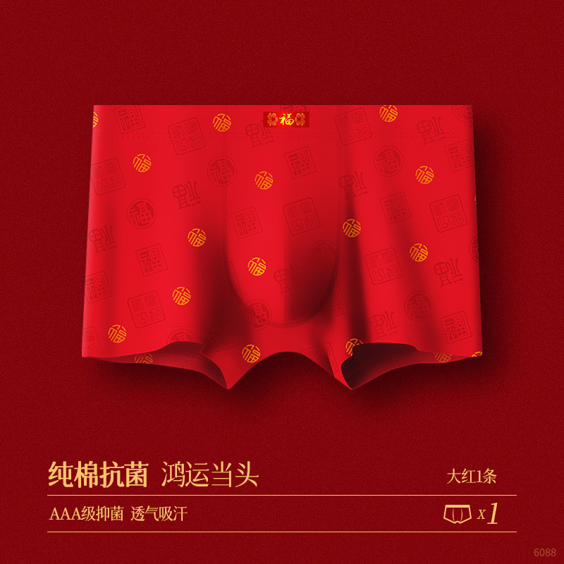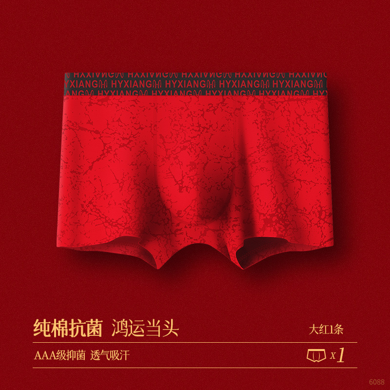 Hengyuanxiang 남성면 속옷 브닝 니언 속옷 레드 복서 웨딩 축제 속옷 4 팩스토어 가기