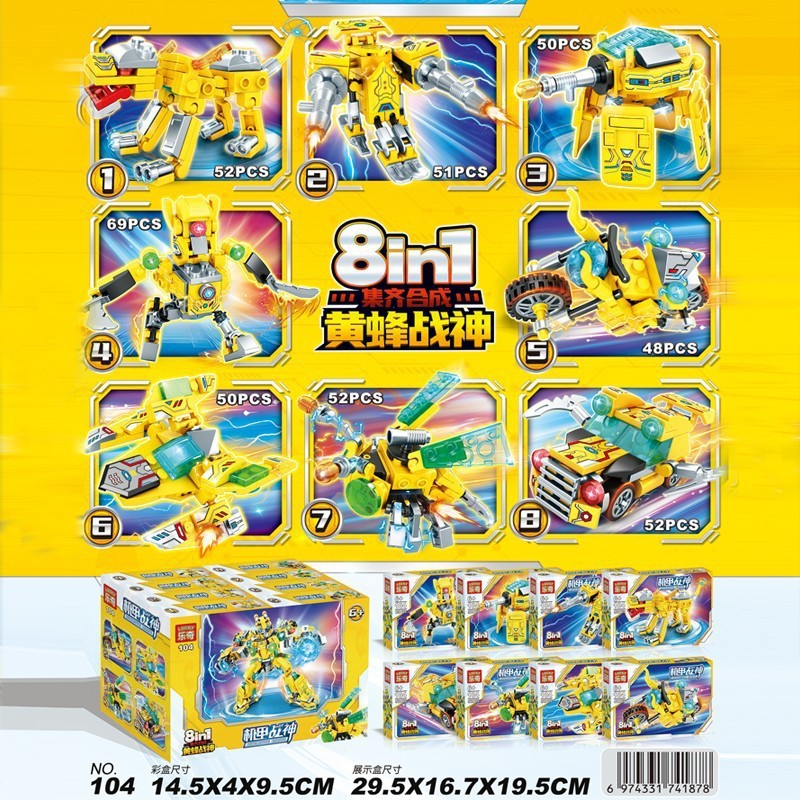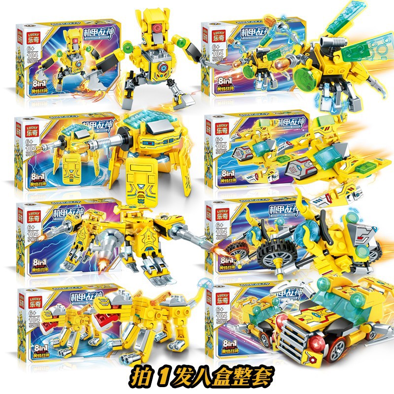 Leqi 104 Wasp Mech Ares 조립 빌딩 블록 8-in-1 로봇 모델 소년 조립 장난감 선물스토어 가기