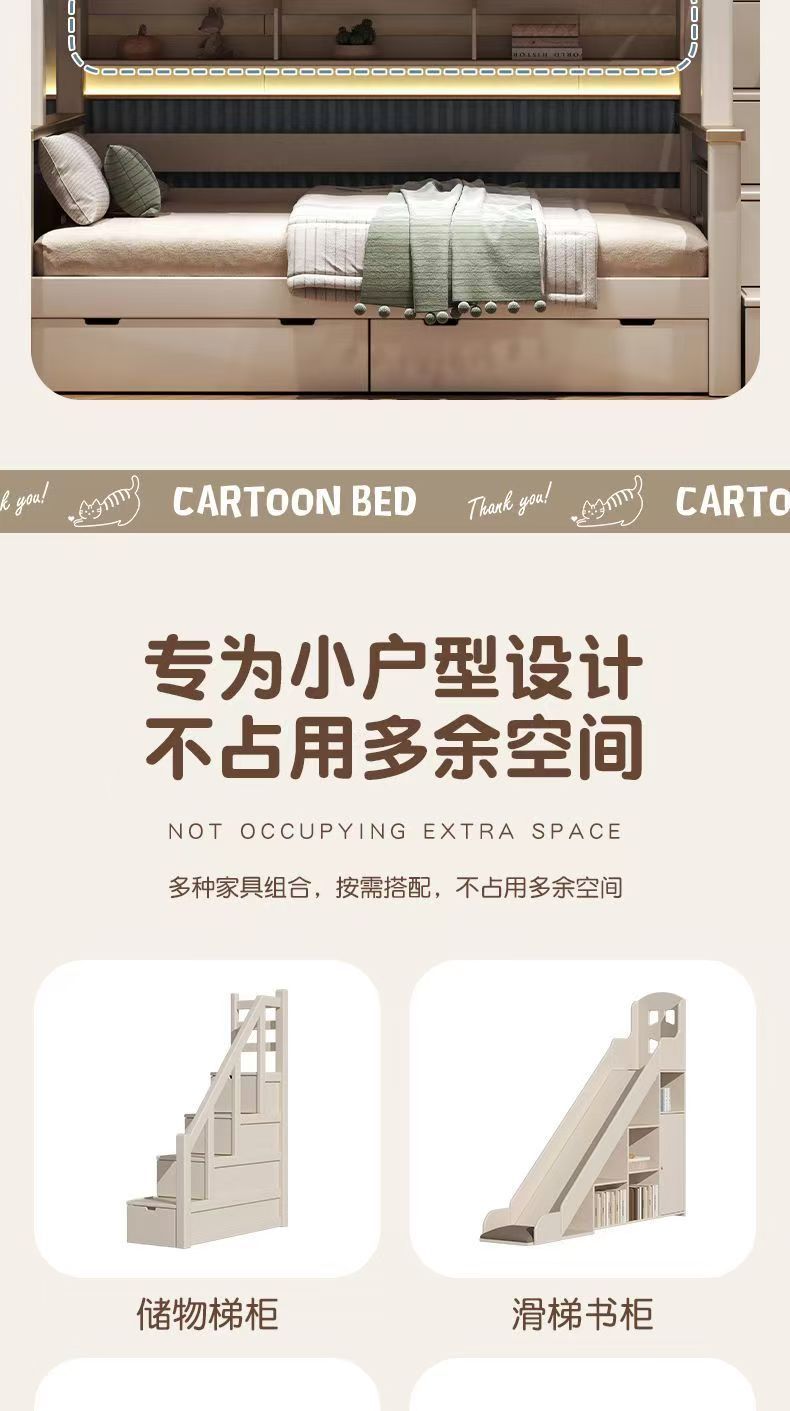 • 사다리 캐비닛 + 슬라이드 + 책장 + 이중 서랍 + 라텍스 매트리스*2