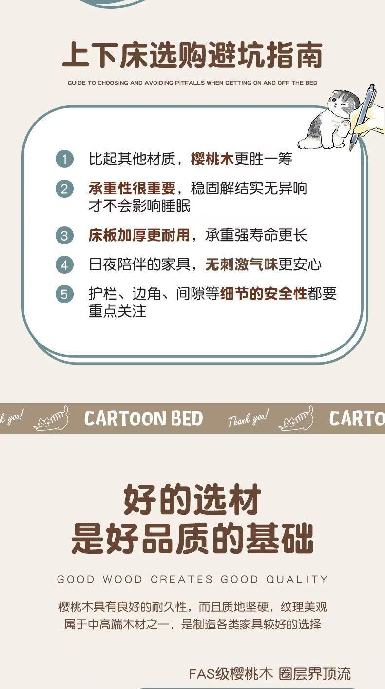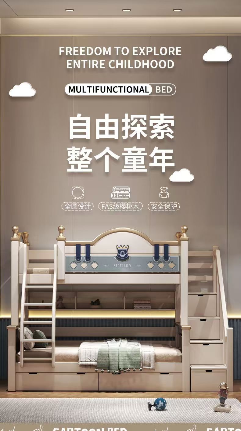 체리우드 이층침대, 이층침대, 다기능 조합 하이앤로우 침대, 공주침대, 이층침대