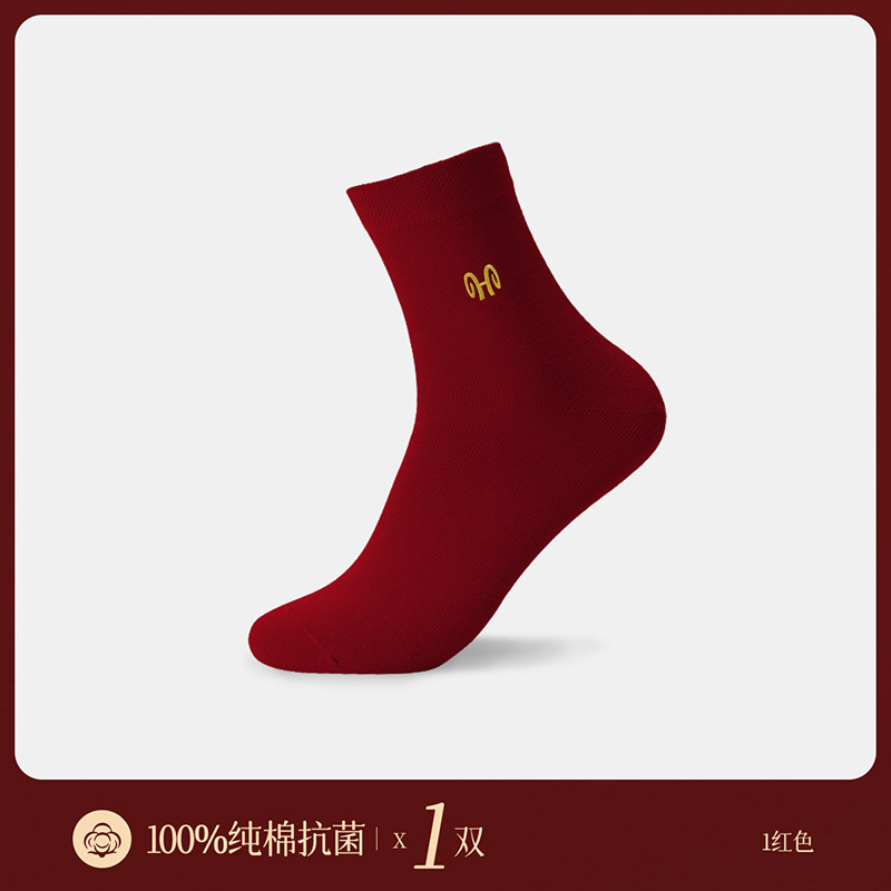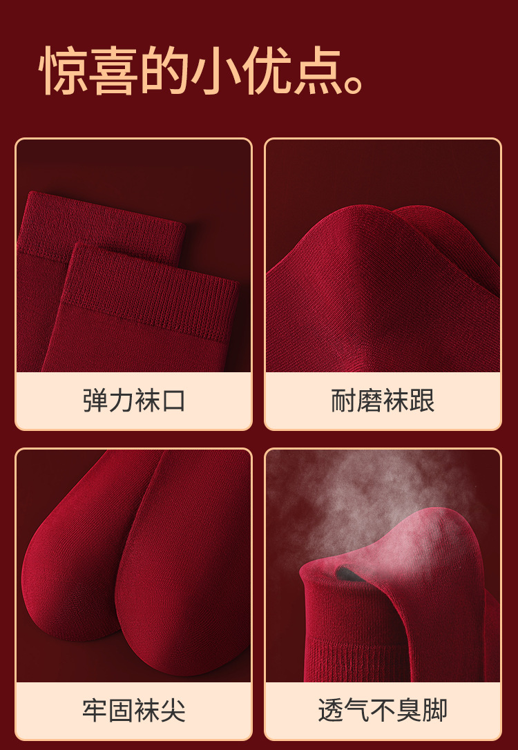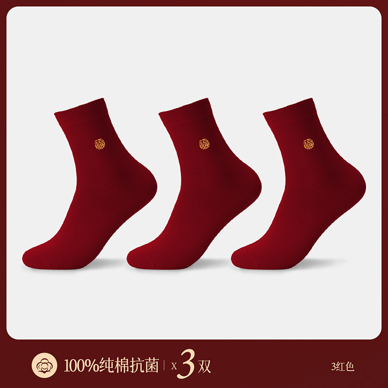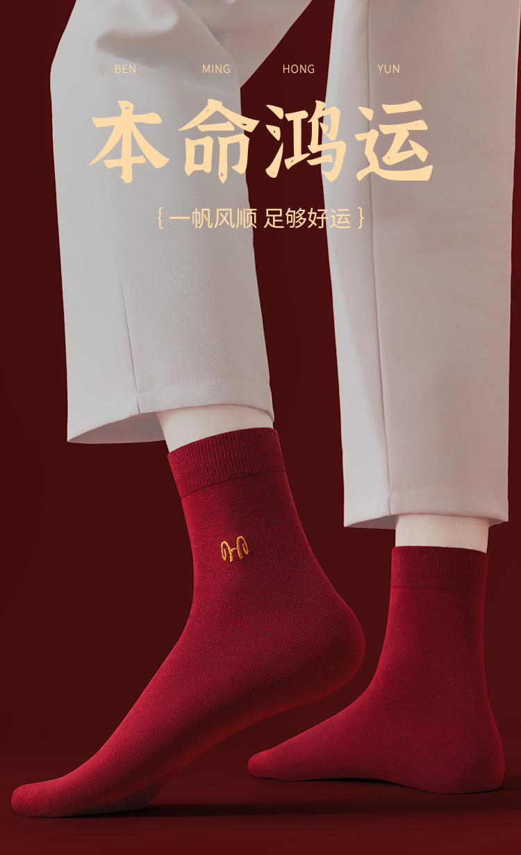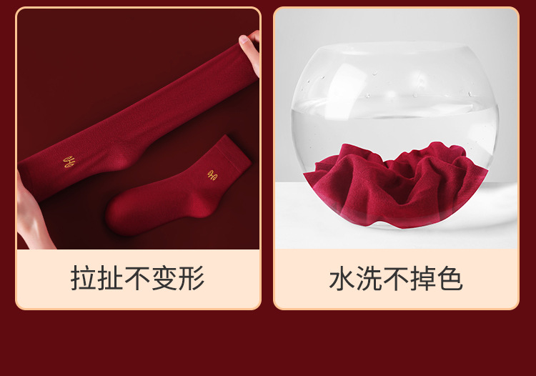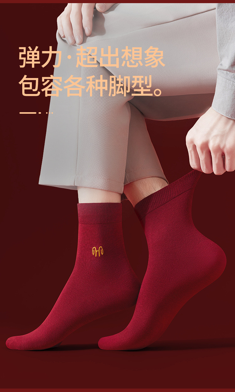 Hengyuanxiang 부르고뉴 코튼 축제 남성과 여성 양말 자수 결혼 행운의 해 빨간색 양말 5 쌍 박스형스토어 가기