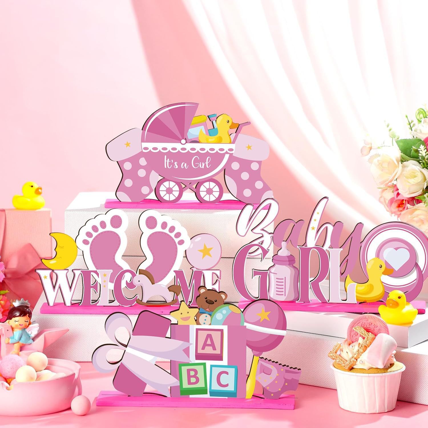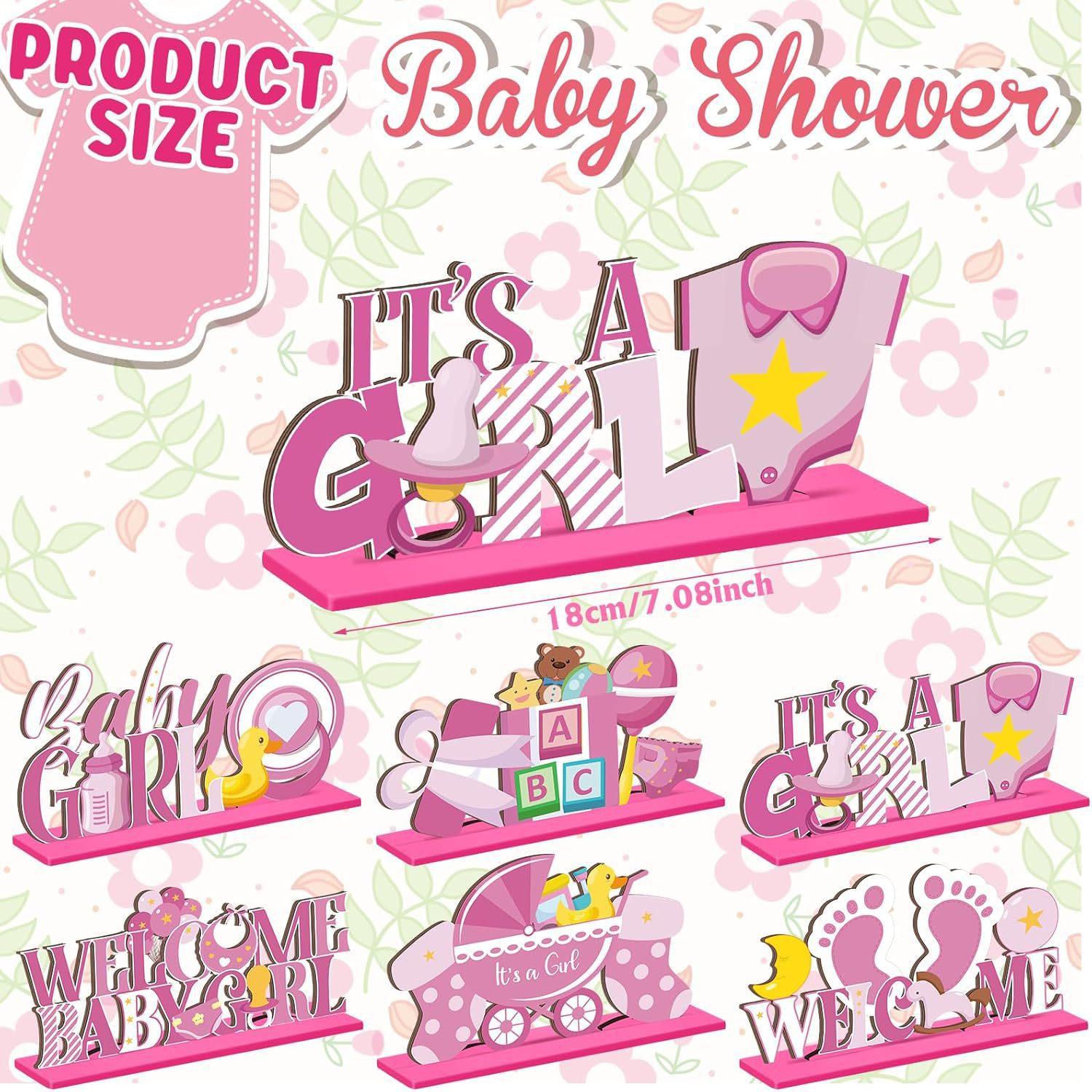 6pcs 핑크 베이비 샤워 나무 테이블 장식품 베이비 샤워 장식 신생아 생일 소품 장식스토어 가기