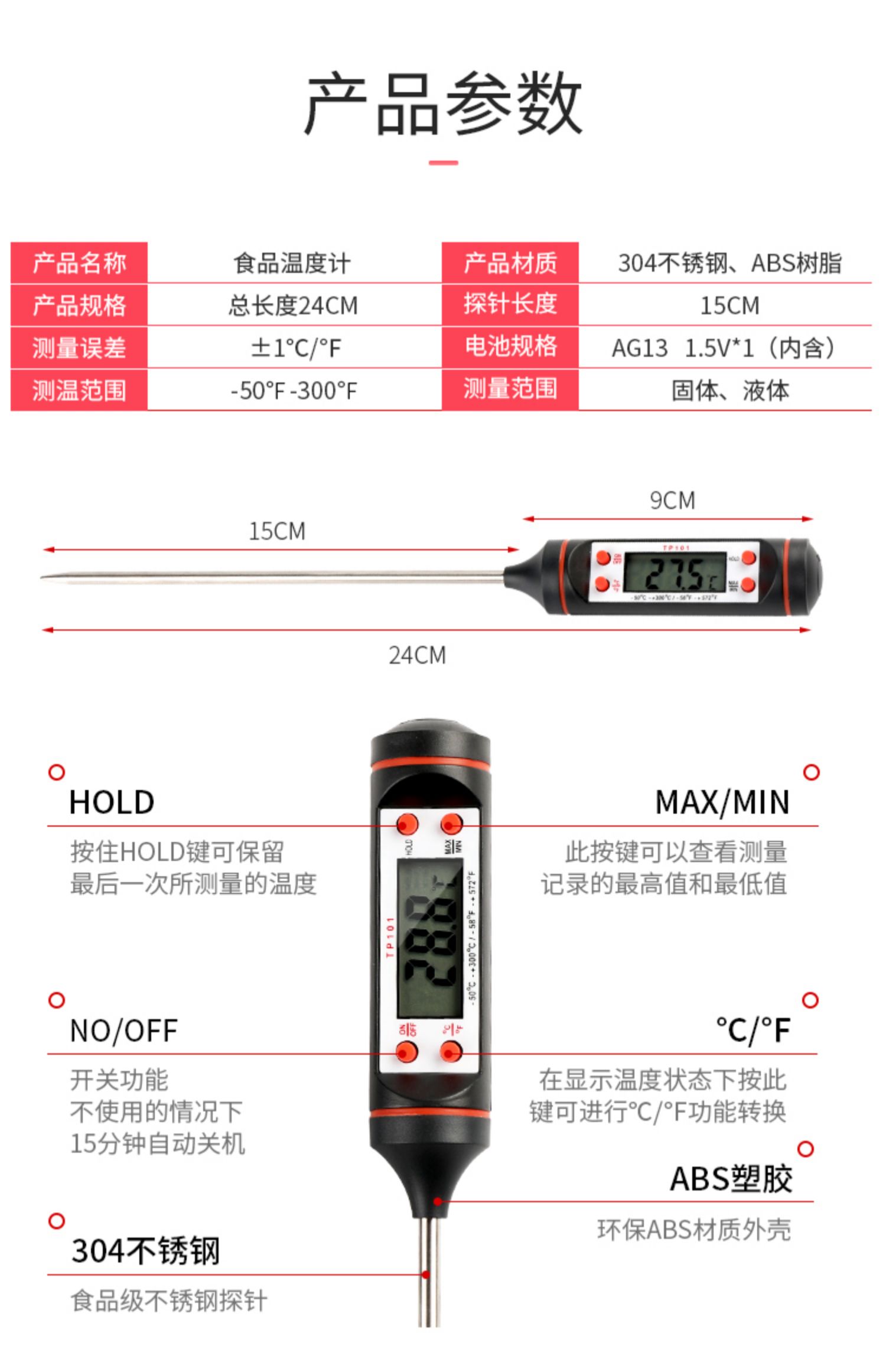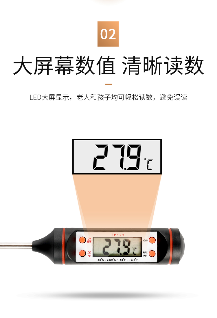 식품 온도계 액체 가정용 베이킹 프로브 유형 우유 케이크 커피 밀크 티 샵 오일 온도 튀김 상업용 측정스토어 가기