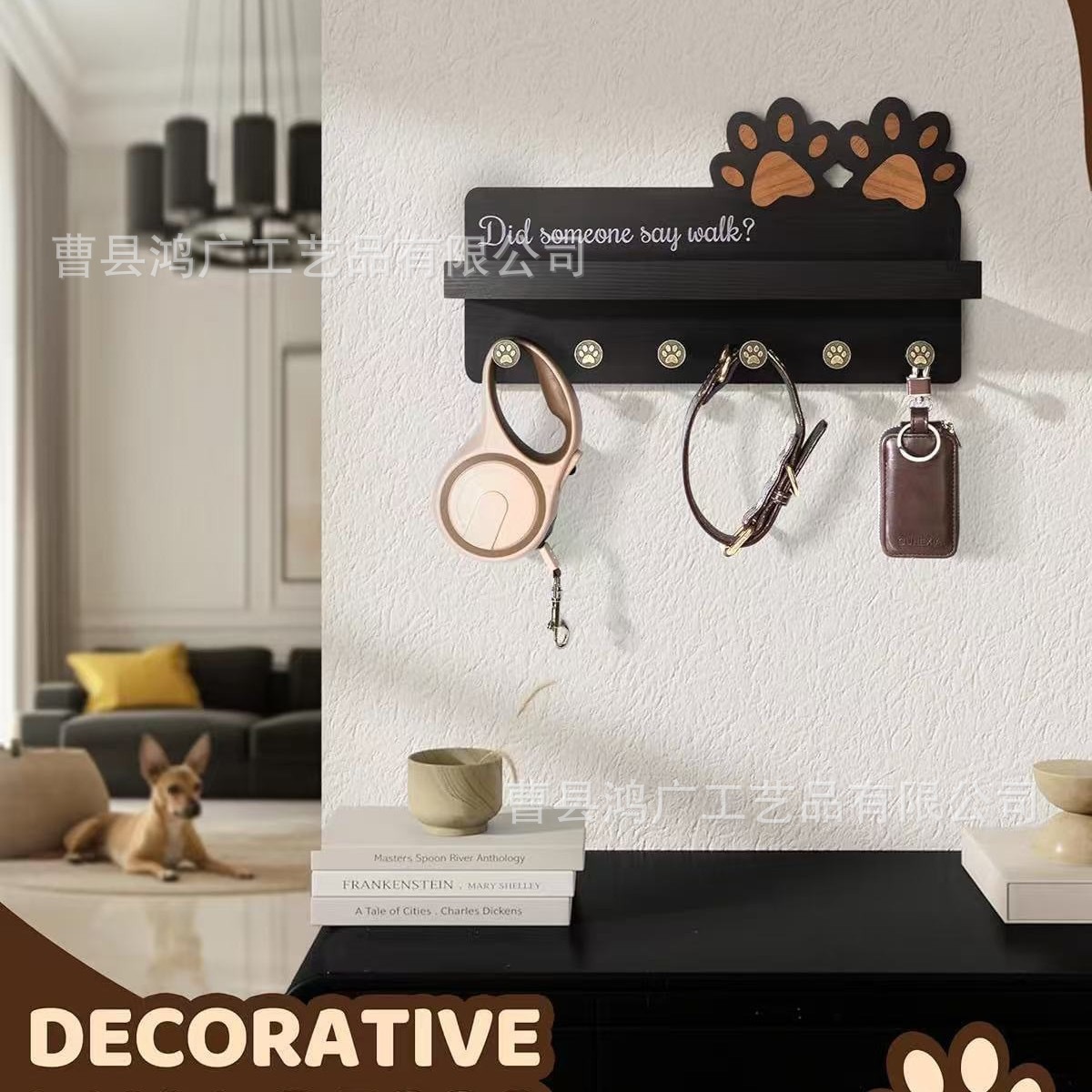 벽걸이 형 애완 동물 가죽 끈 보관 랙 벽 개 장난감 보관 랙 단단한 나무 입구 문 열쇠 걸이스토어 가기