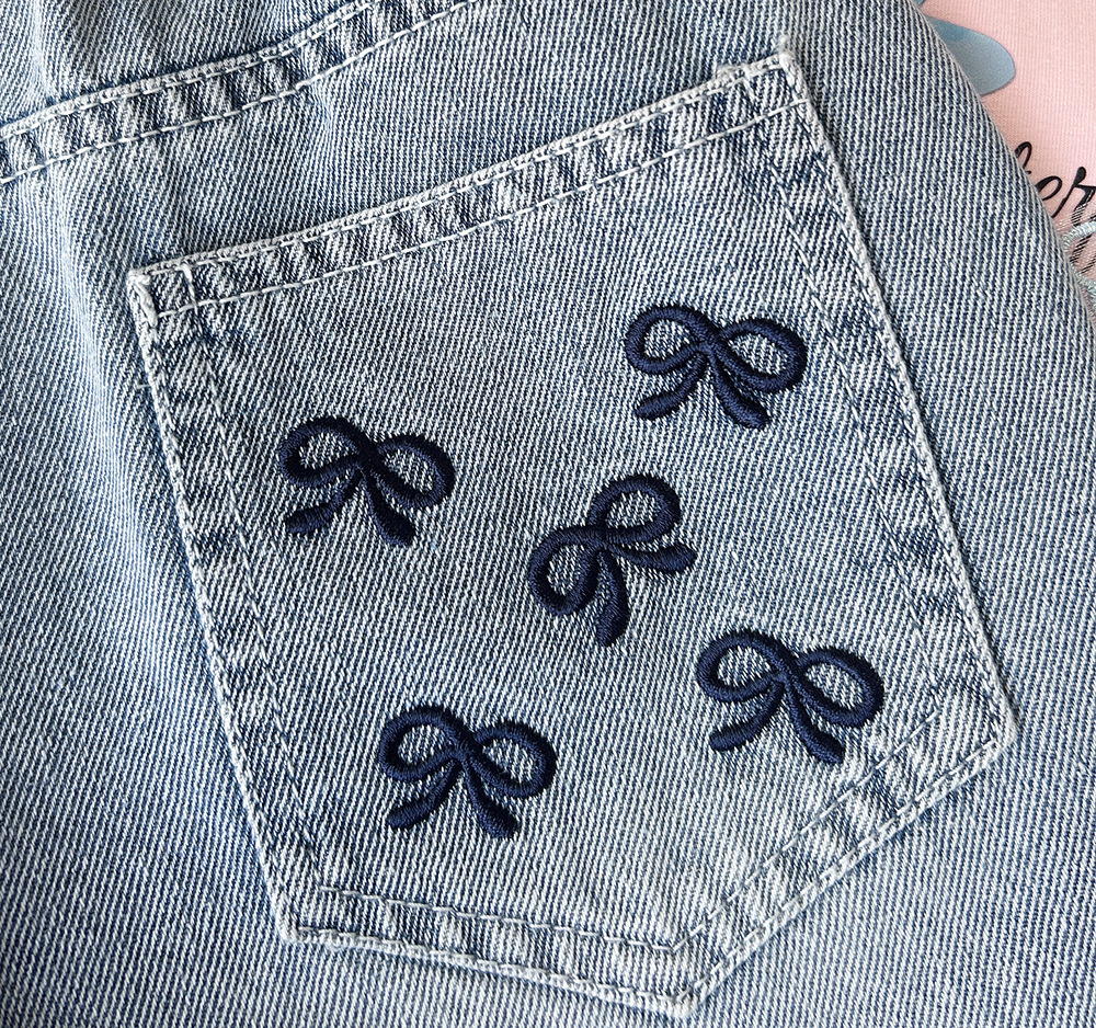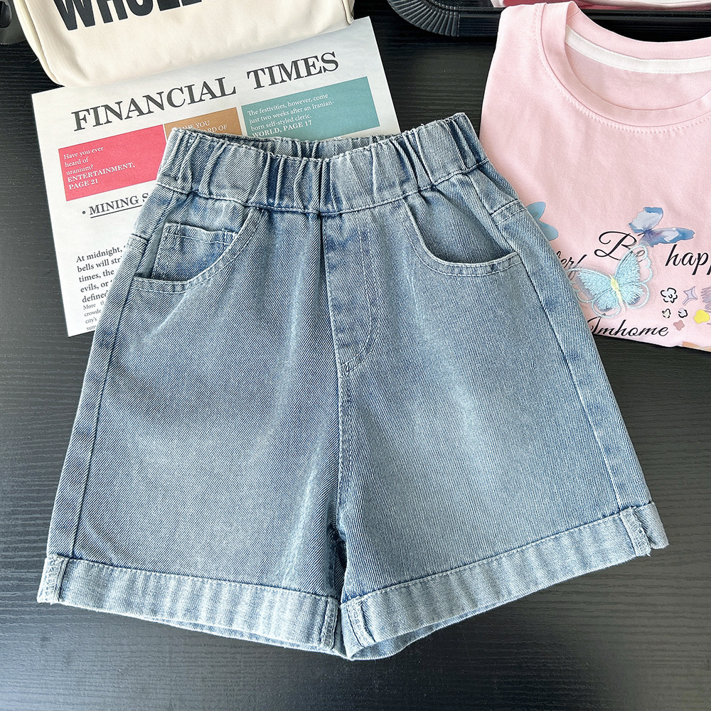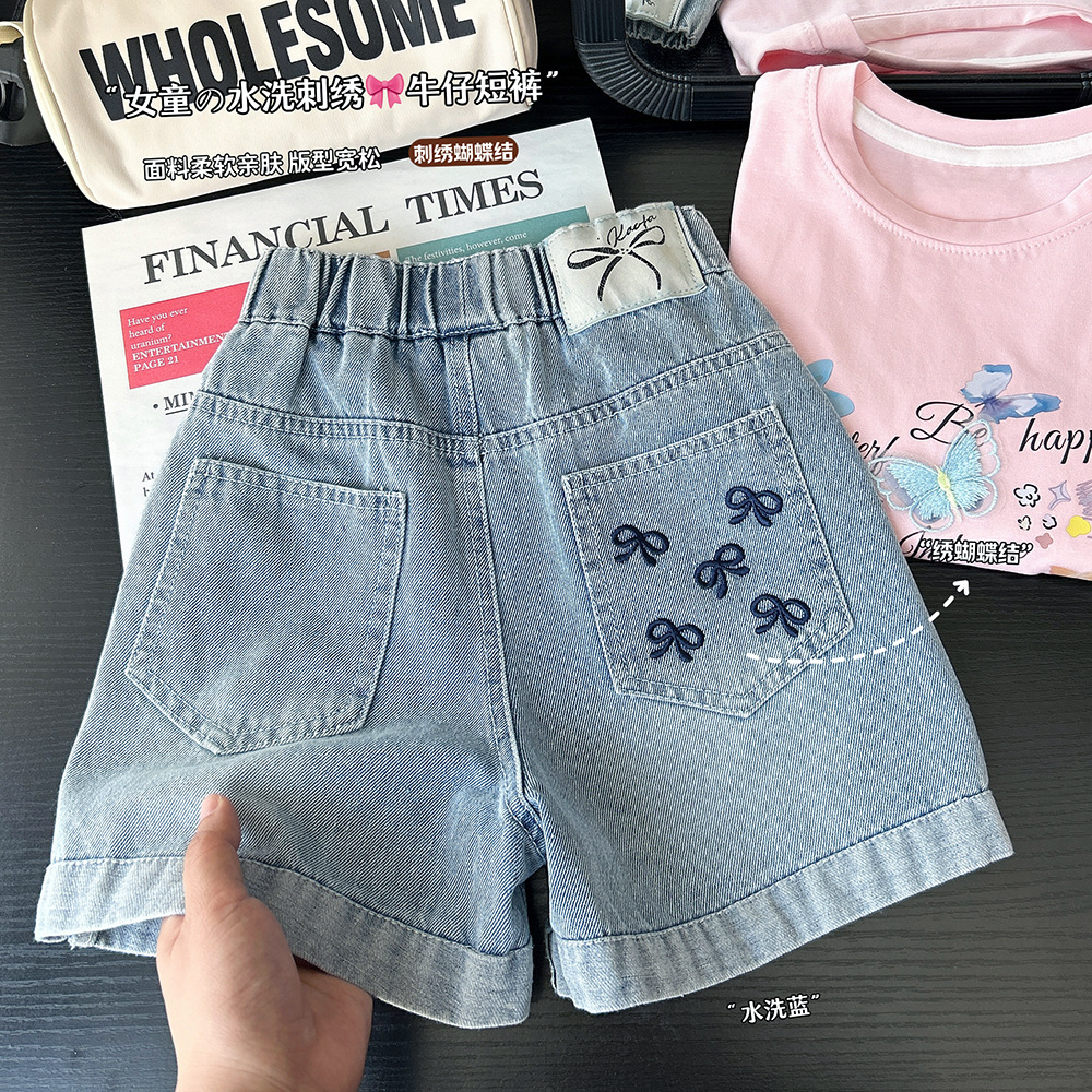 2025 여름 아동복 소녀 데님 반바지 여름 산소 달콤한 자수 핫팬츠 얇은 통기성 바지스토어 가기