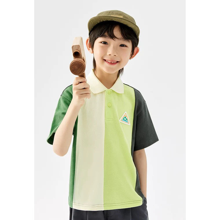 2025 년 여름 새로운 평화 같은 스타일 중대형 어린이 폴로 셔츠 부드럽고 편안한 컬러 어울리는 옷깃 짧은 소매 티셔츠