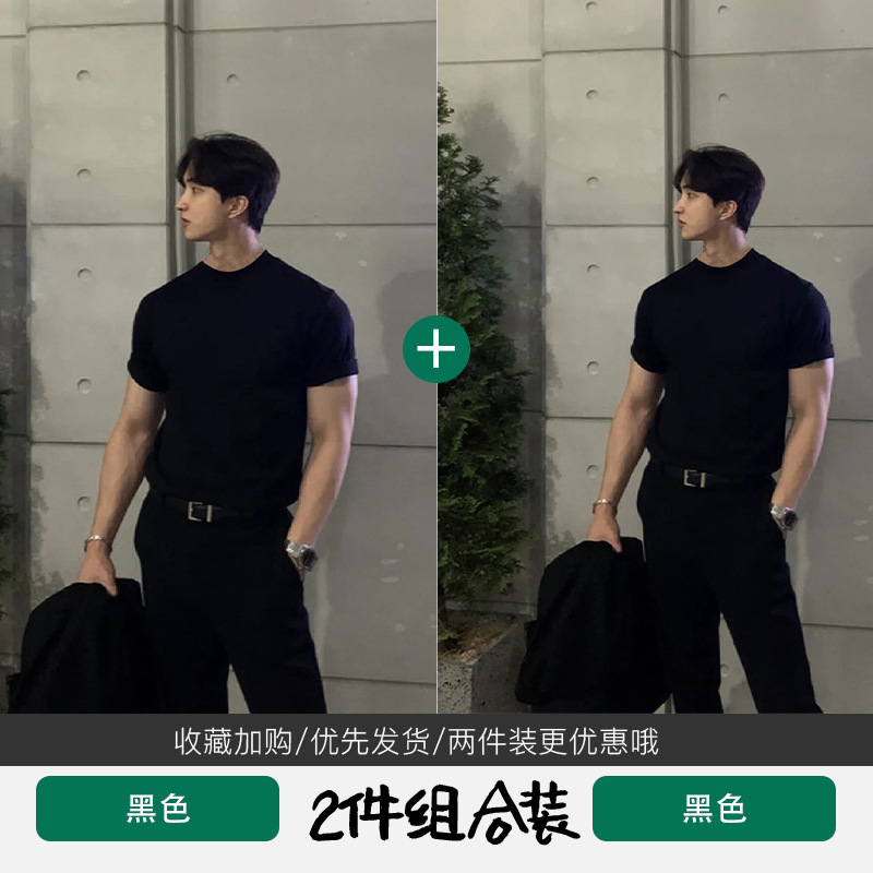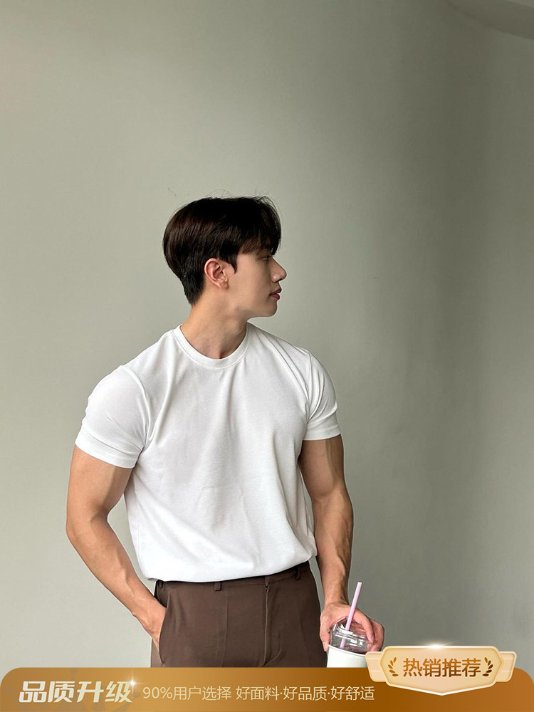 남성용 반팔 티셔츠 여름 라운드넥 슬림핏 타이트 피트니스 탄력성 솔로나 트레이닝 아웃도어 베이스 레이어 캐주얼스토어 가기