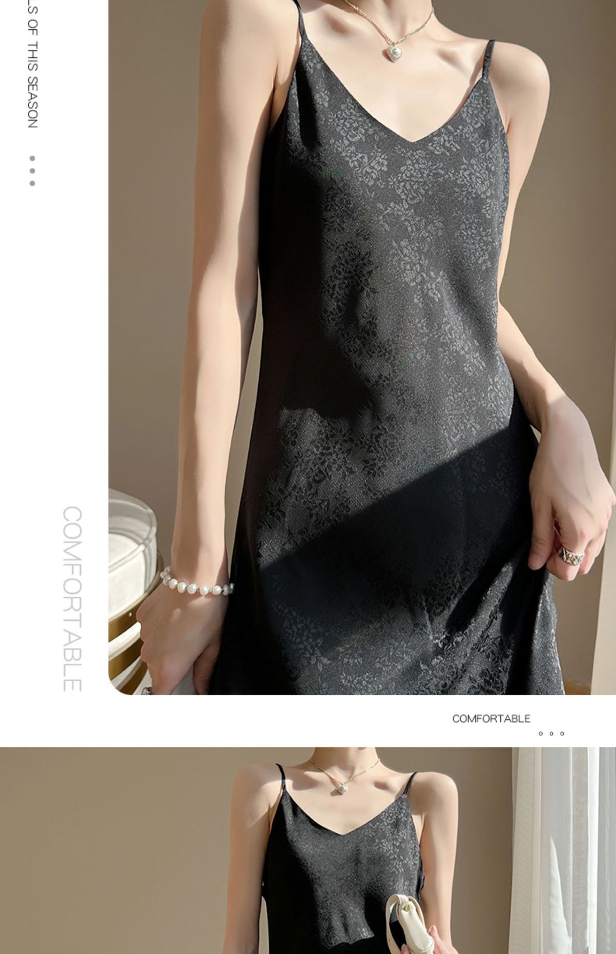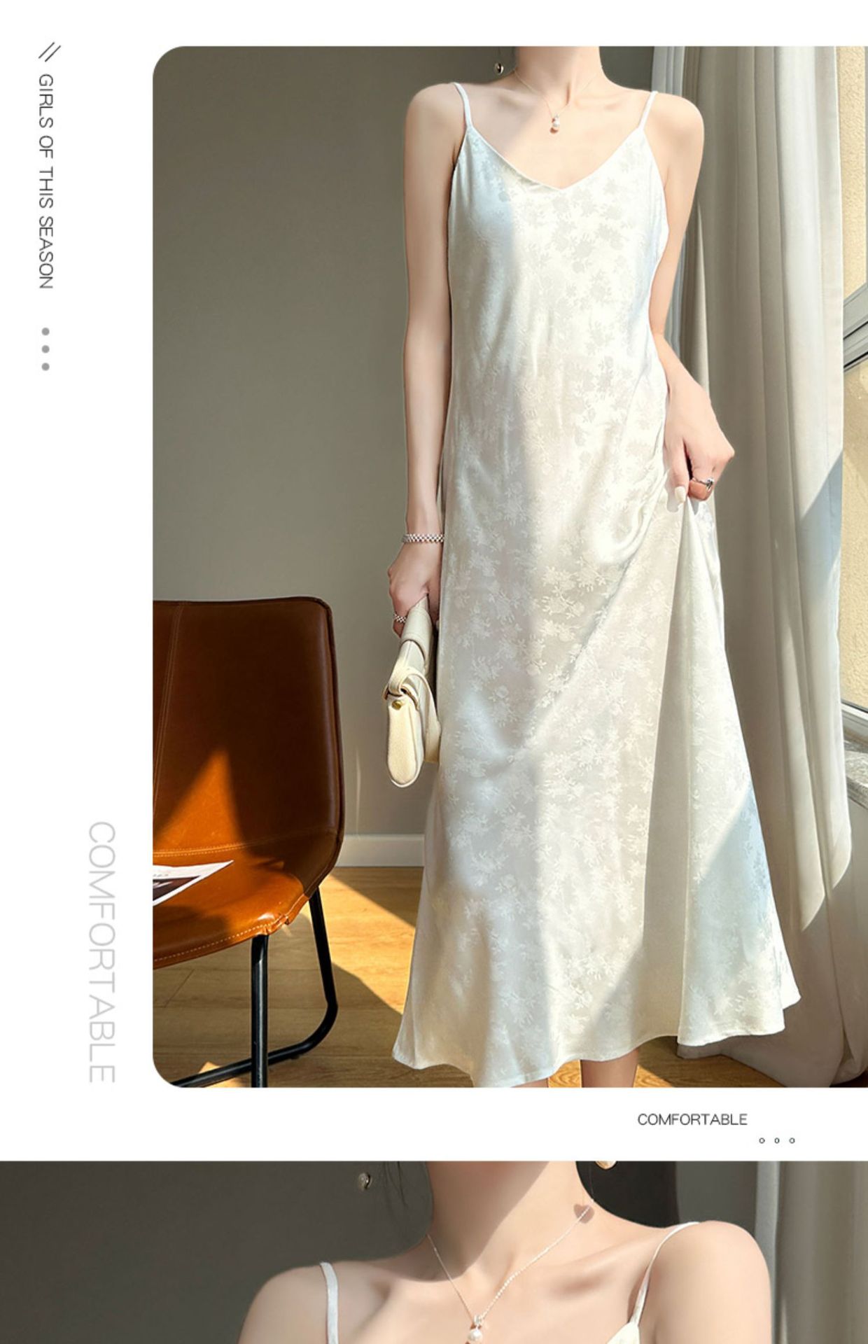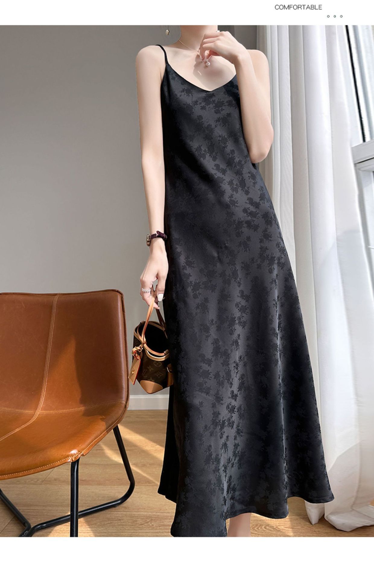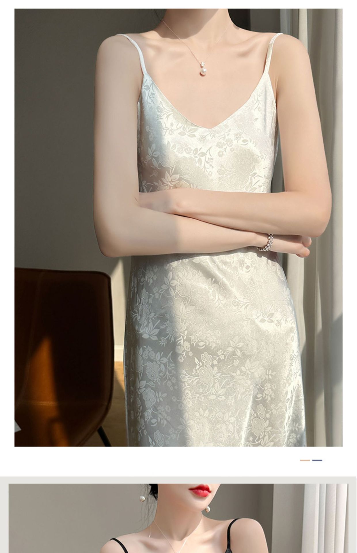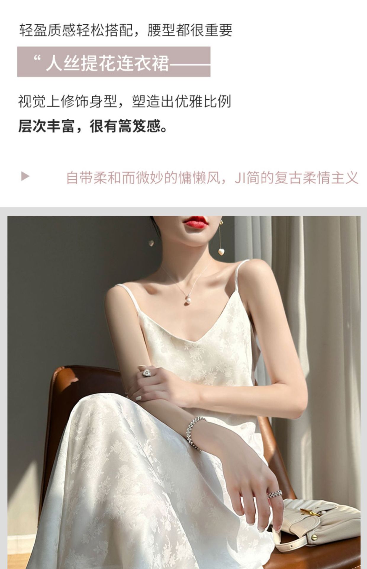 여름 자카드 V 넥 슬링 원피스 여성용 아세트산 새틴 오버 더 무릎 A 라인 롱 원피스 슬리밍 내셔널 스타일베이스 원피스스토어 가기