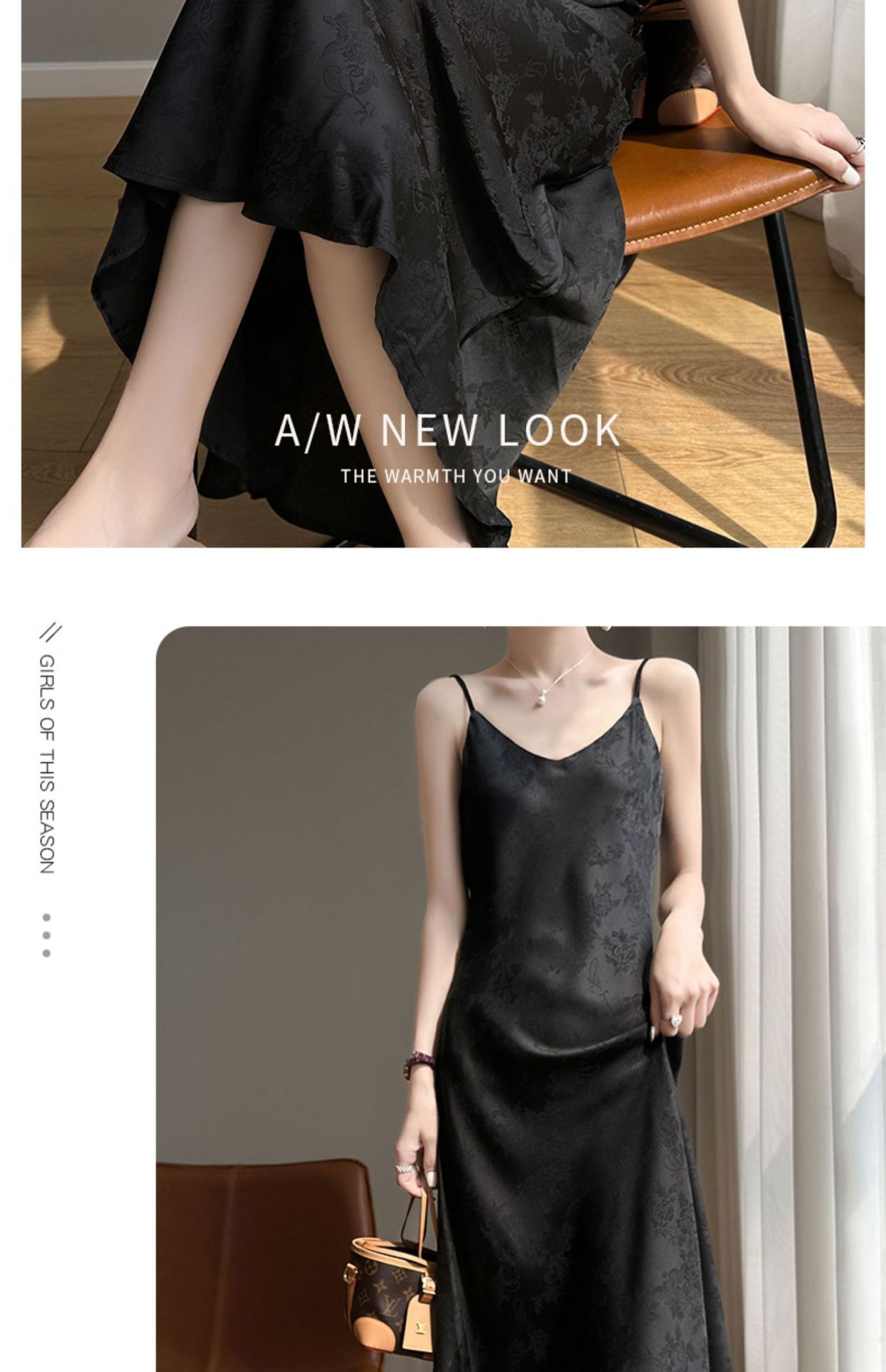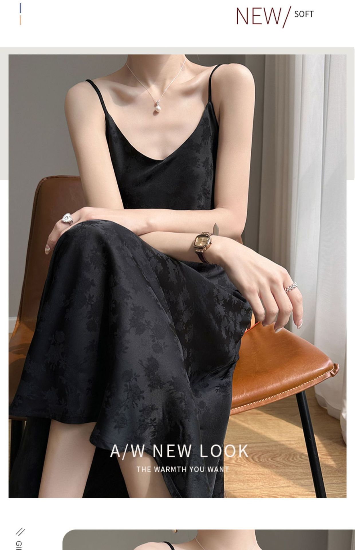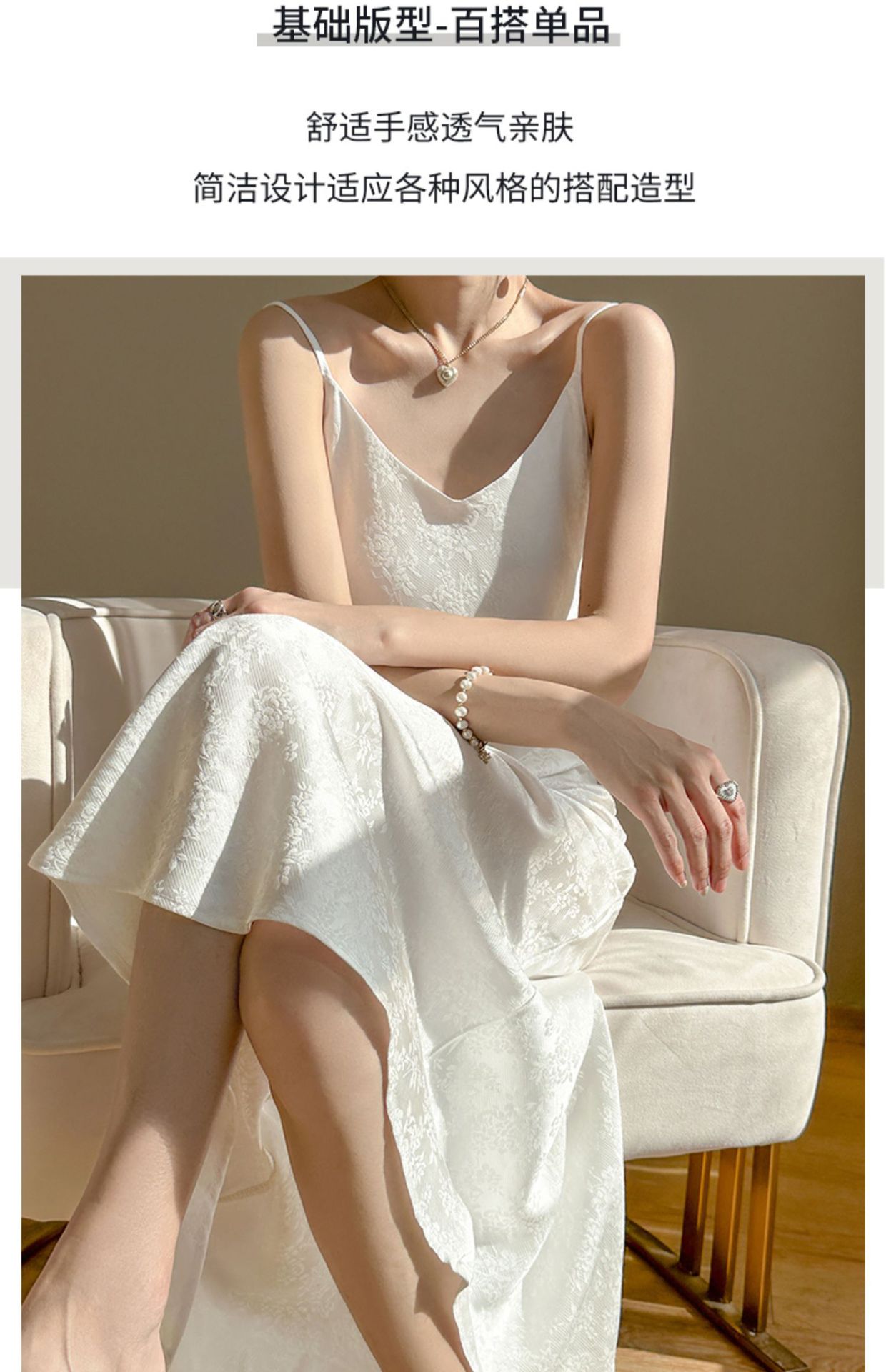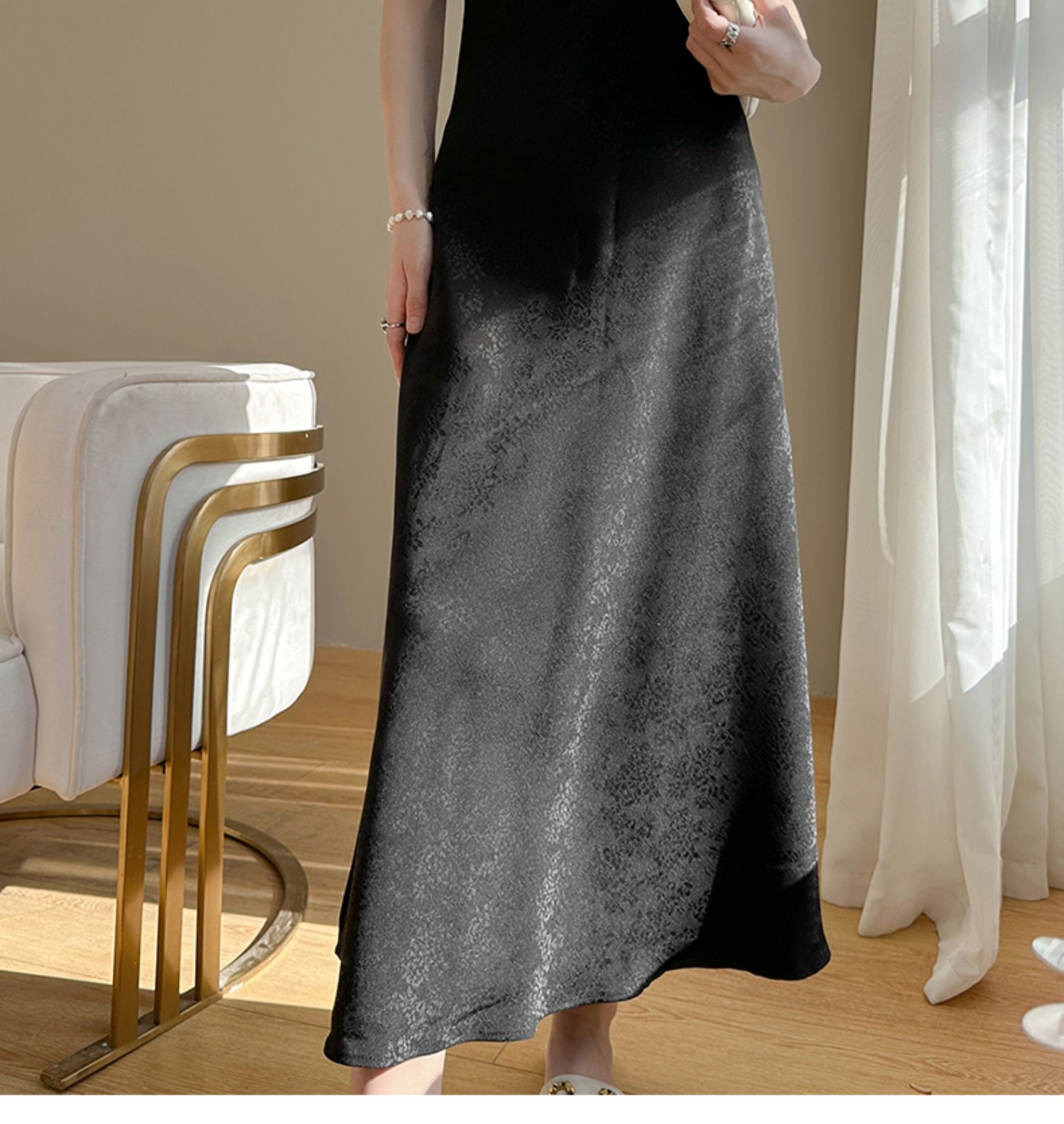 여름 자카드 V 넥 슬링 원피스 여성용 아세트산 새틴 오버 더 무릎 A 라인 롱 원피스 슬리밍 내셔널 스타일베이스 원피스스토어 가기