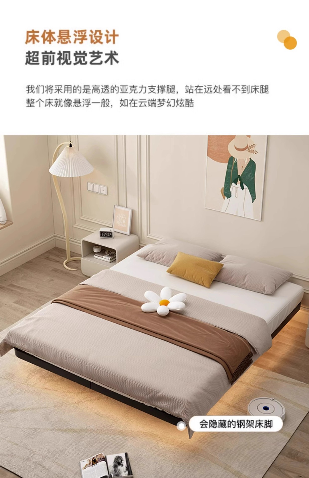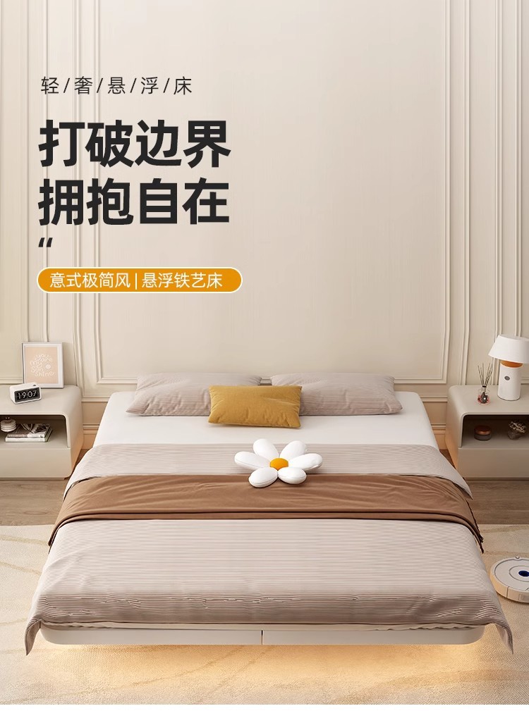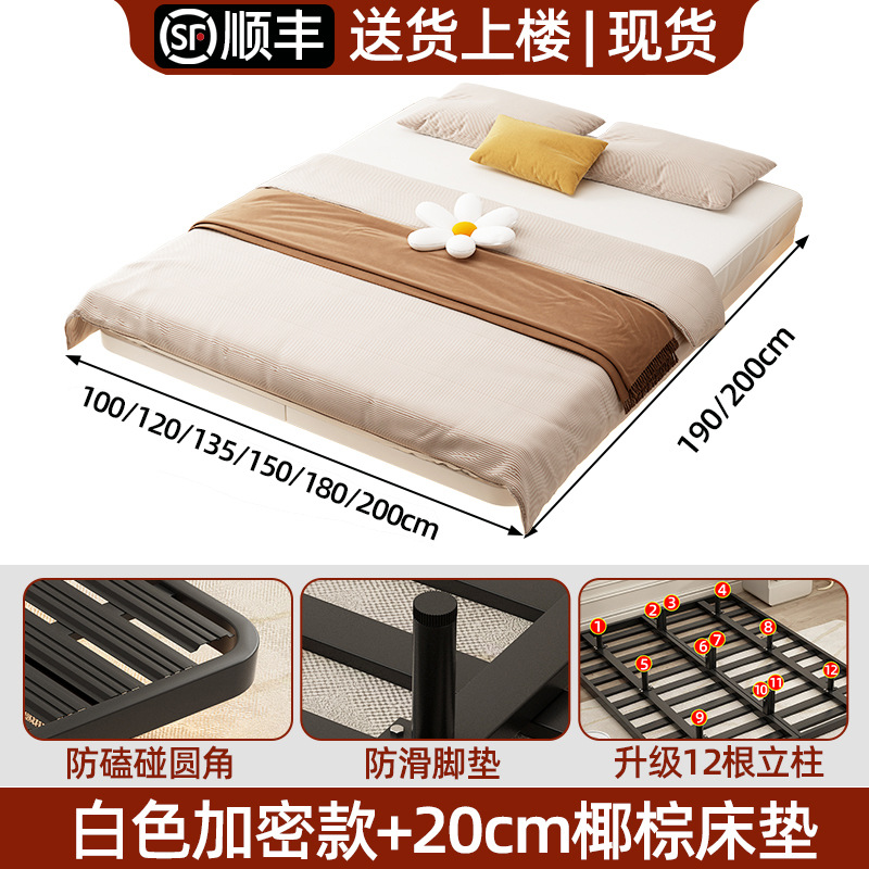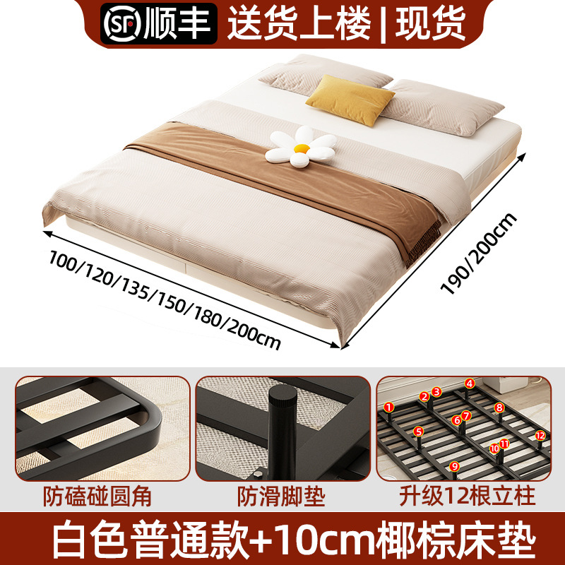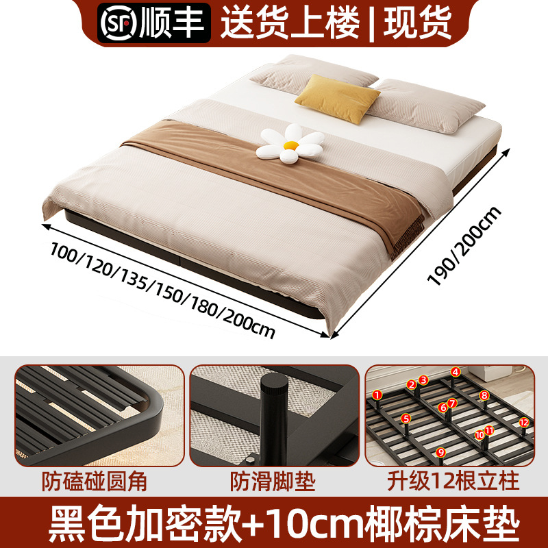 일본식 심플한 침대 없는 공중부양 침대 선반, 가정용 철제 침대, 두꺼운 싱글 및 더블 철제 선반 침대스토어 가기