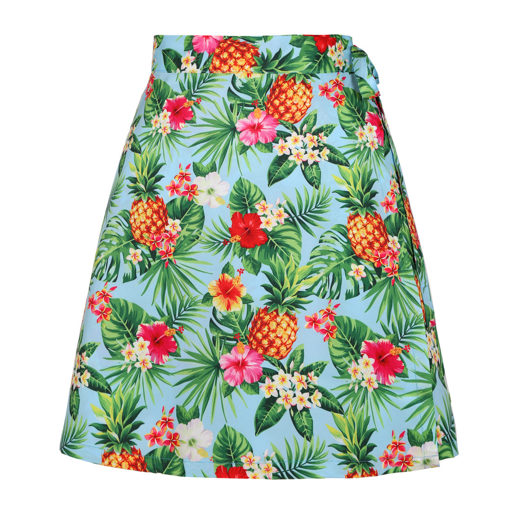 신선한 해변 높은 웨이스트 데이지 짧은 치마 기하학적 인쇄 A 라인 웨이스트 미니 스커트 스트랩 플러스 사이즈 여성용 스커트