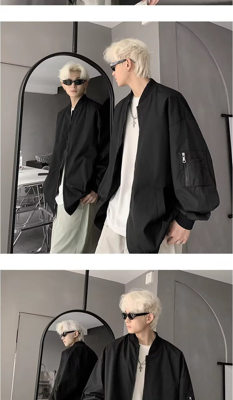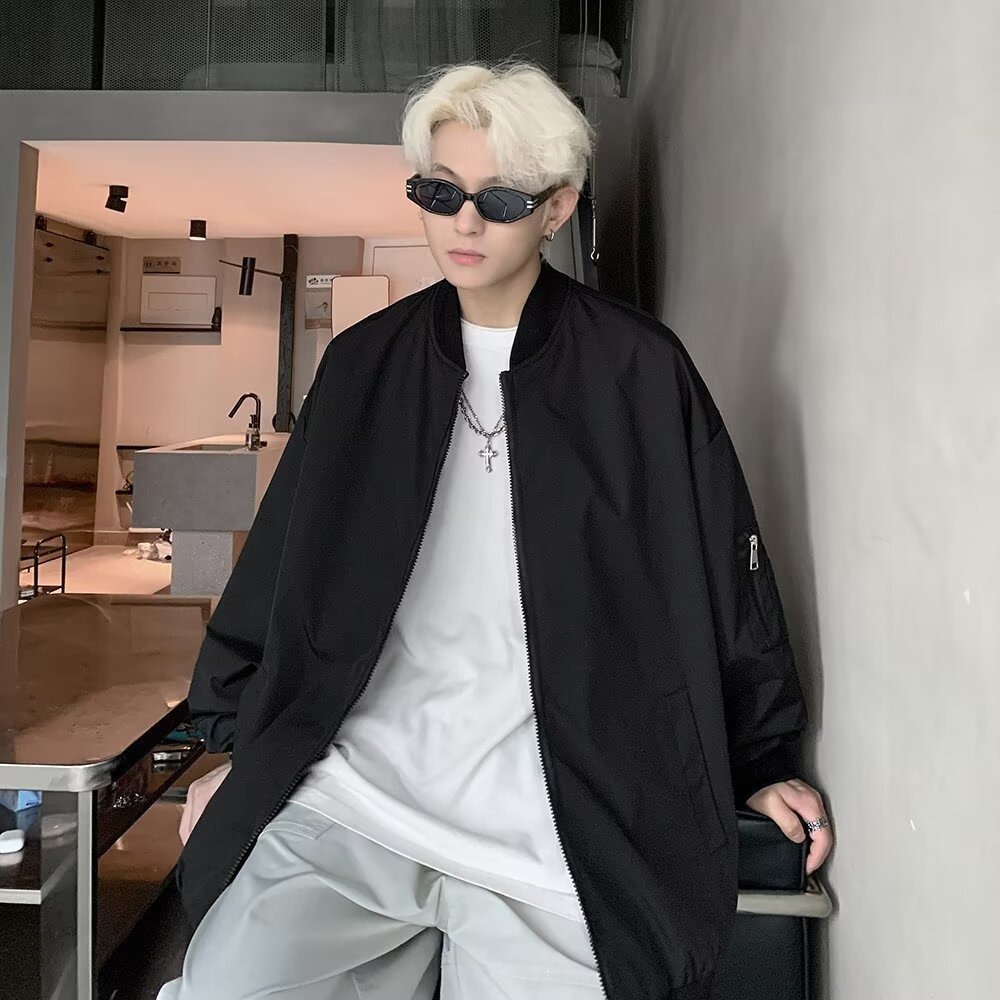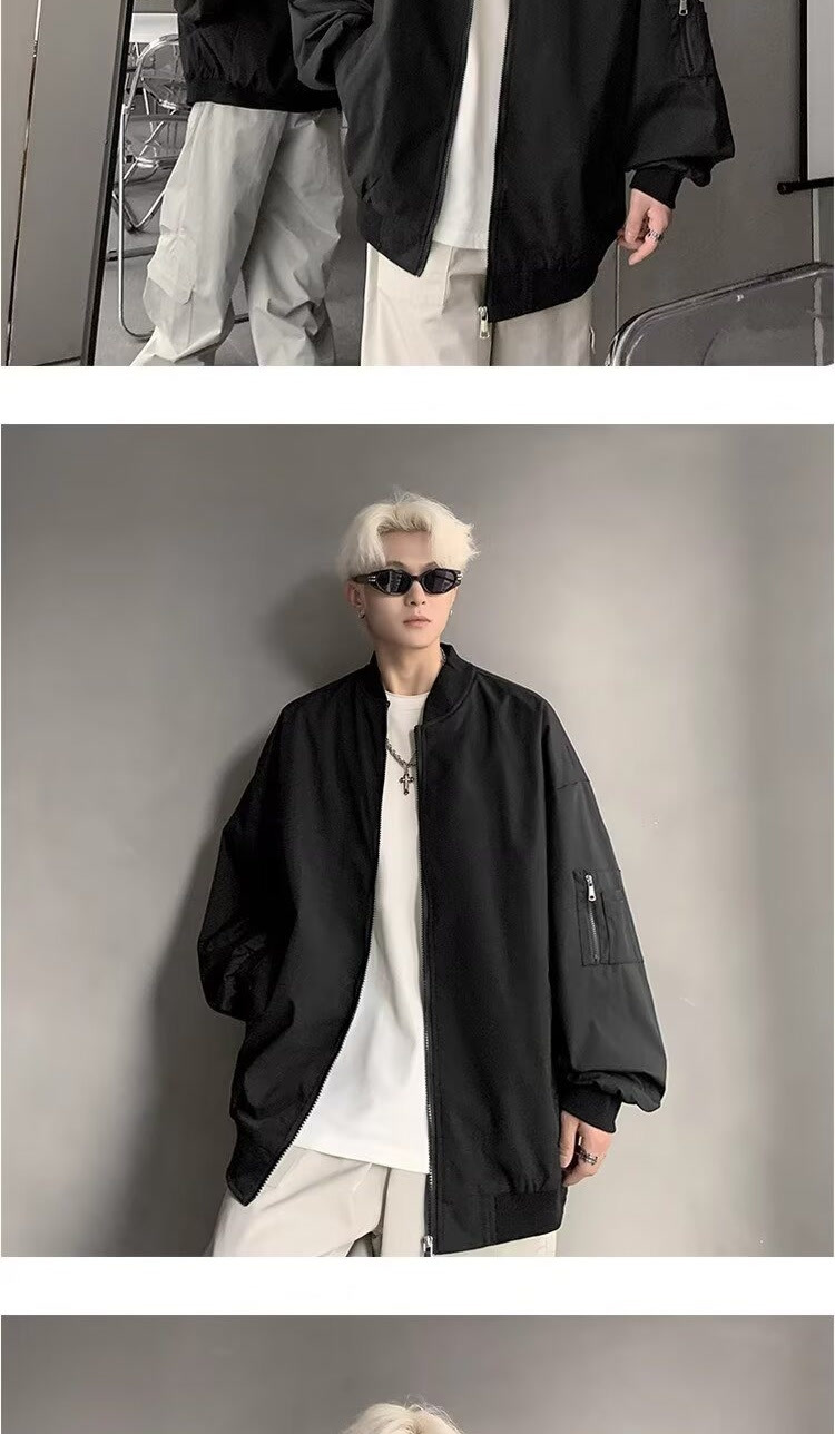 솔리드 컬러 올 매치 야구 세트 폭격기 재킷 코트 남자 국경 2025 봄과 가을 새로운 느슨한 캐주얼 커플스토어 가기