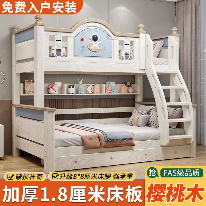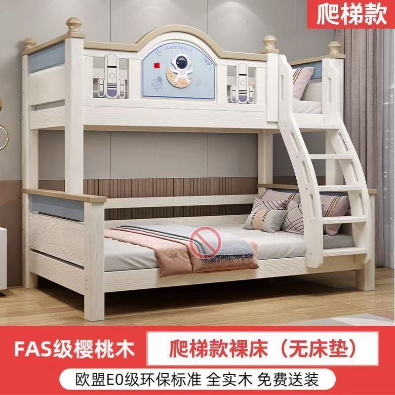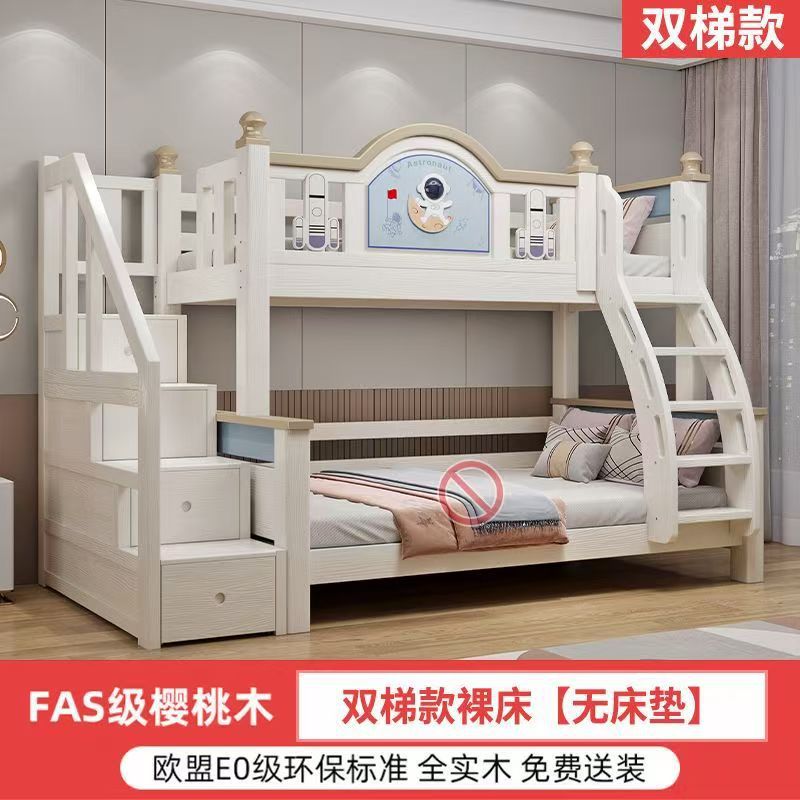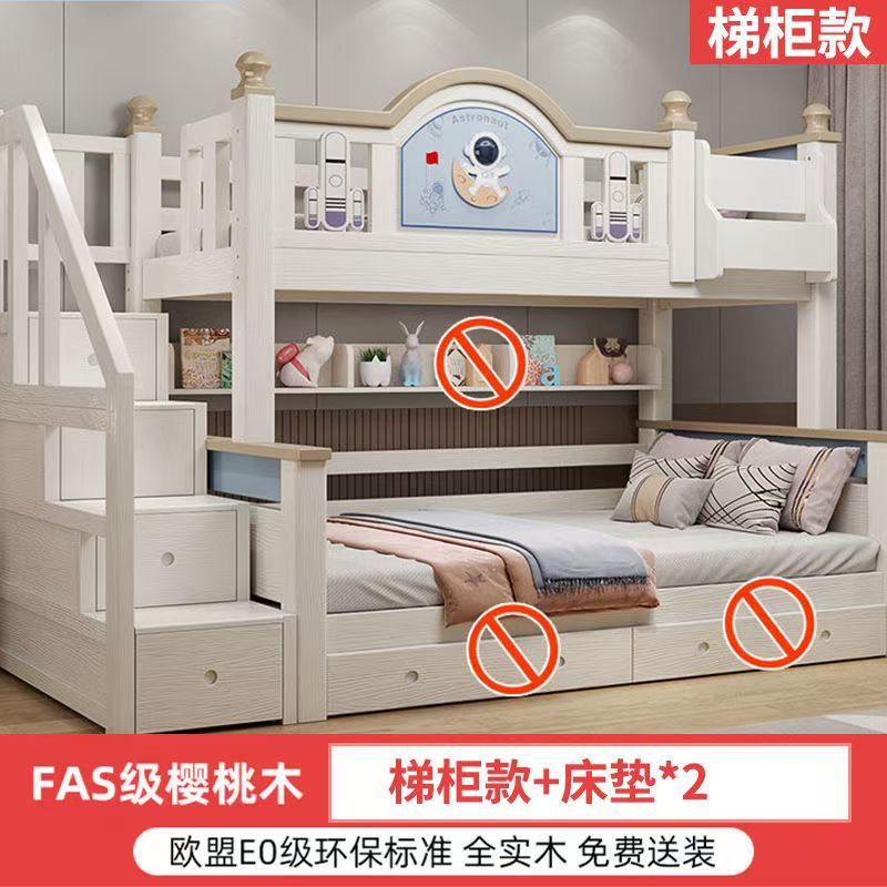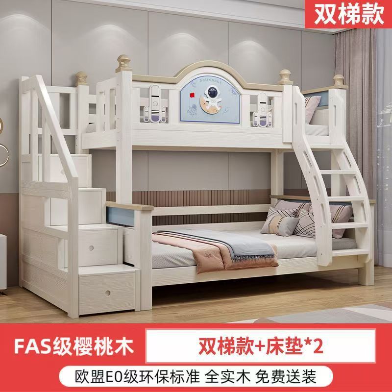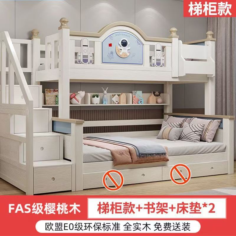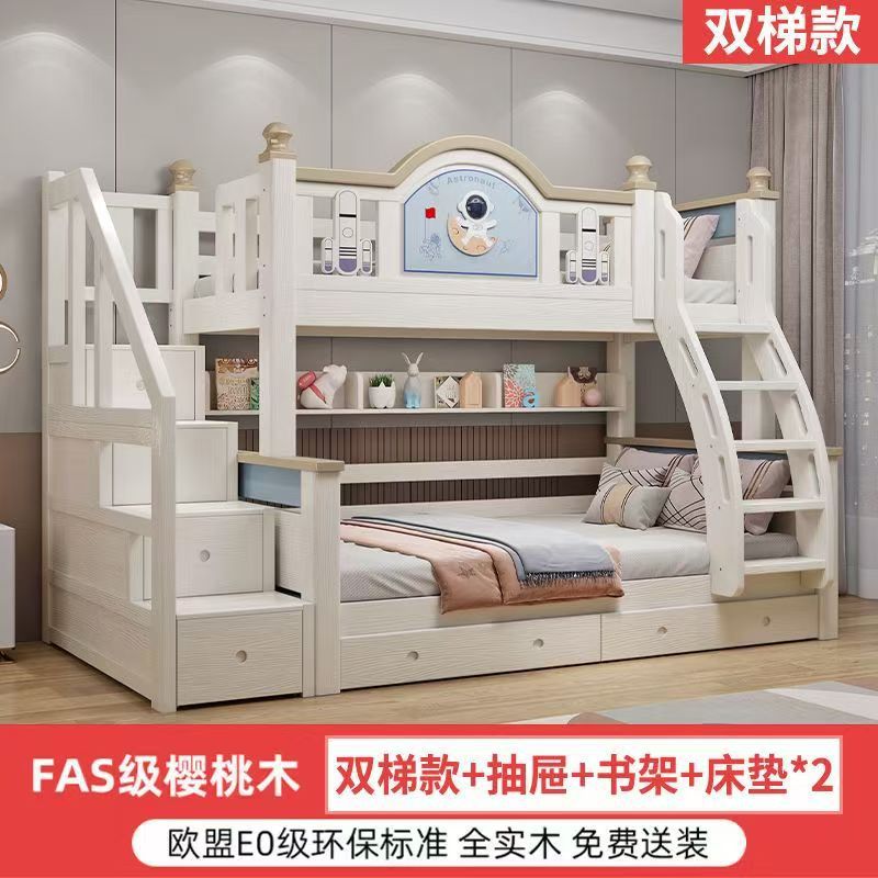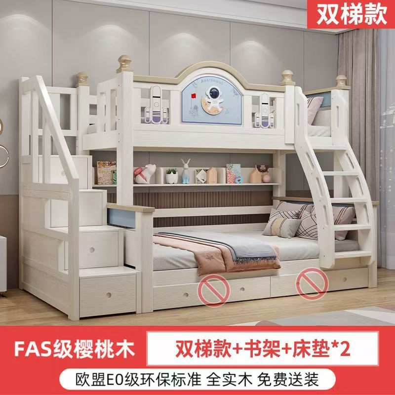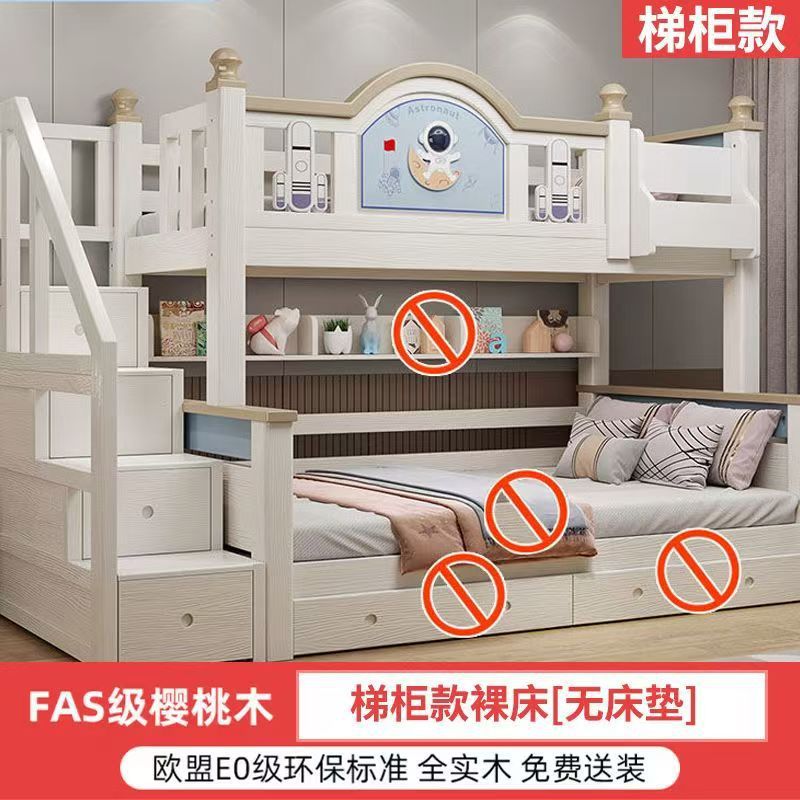 체리 우드 침대 이층 침대 솔리드 우드 라이트 럭셔리 2 층 높고 낮은 어린이 침대 분할 침대 공주 스타일스토어 가기