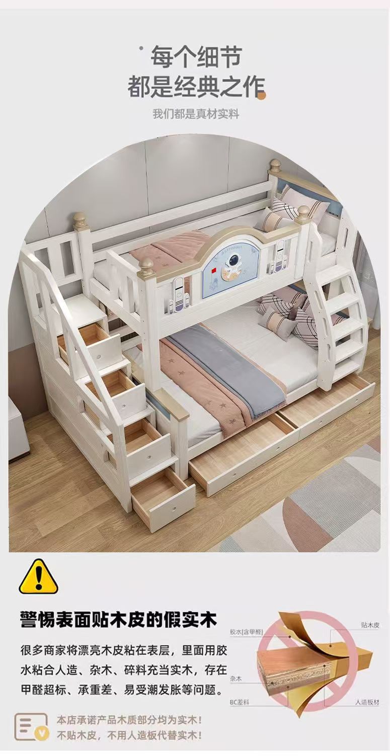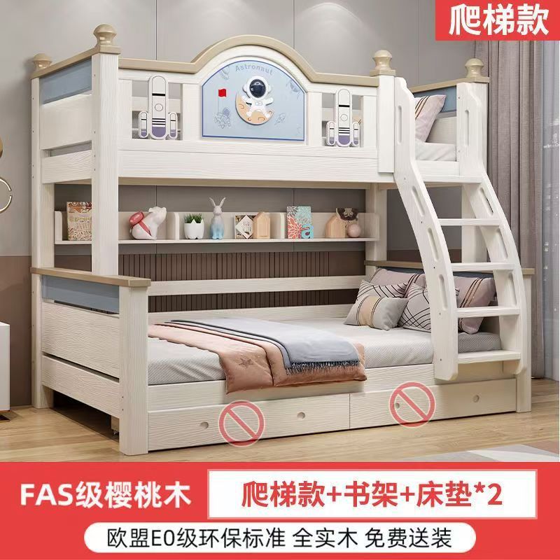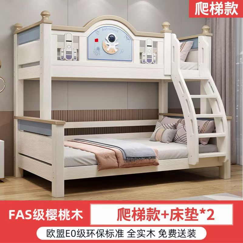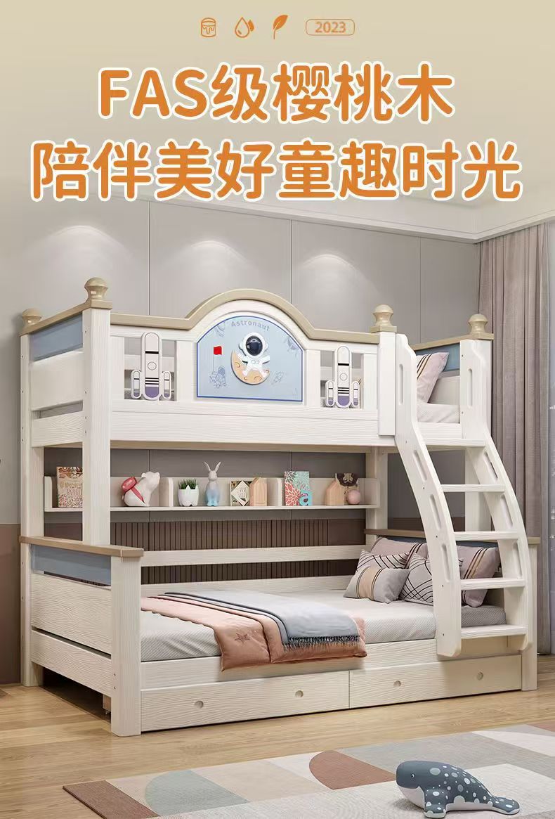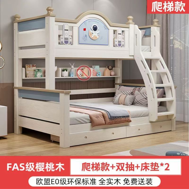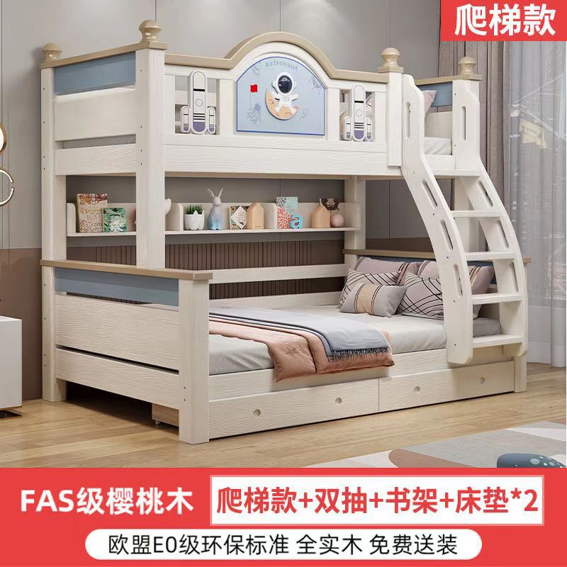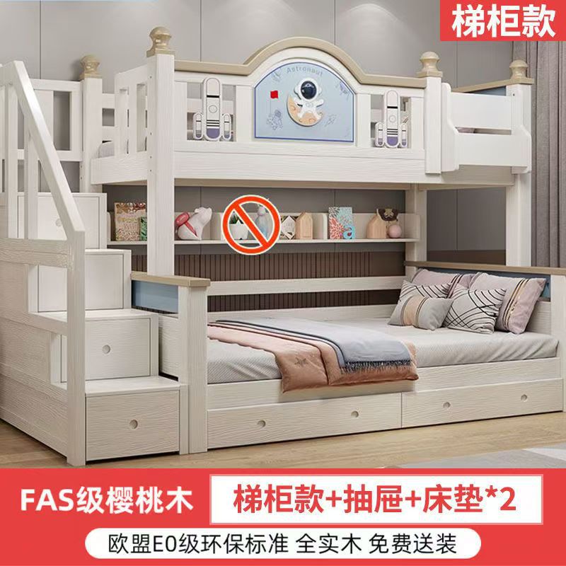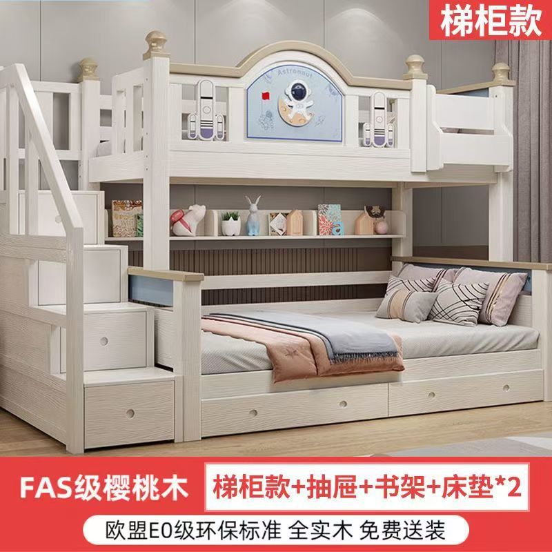체리 우드 침대 이층 침대 솔리드 우드 라이트 럭셔리 2 층 높고 낮은 어린이 침대 분할 침대 공주 스타일스토어 가기