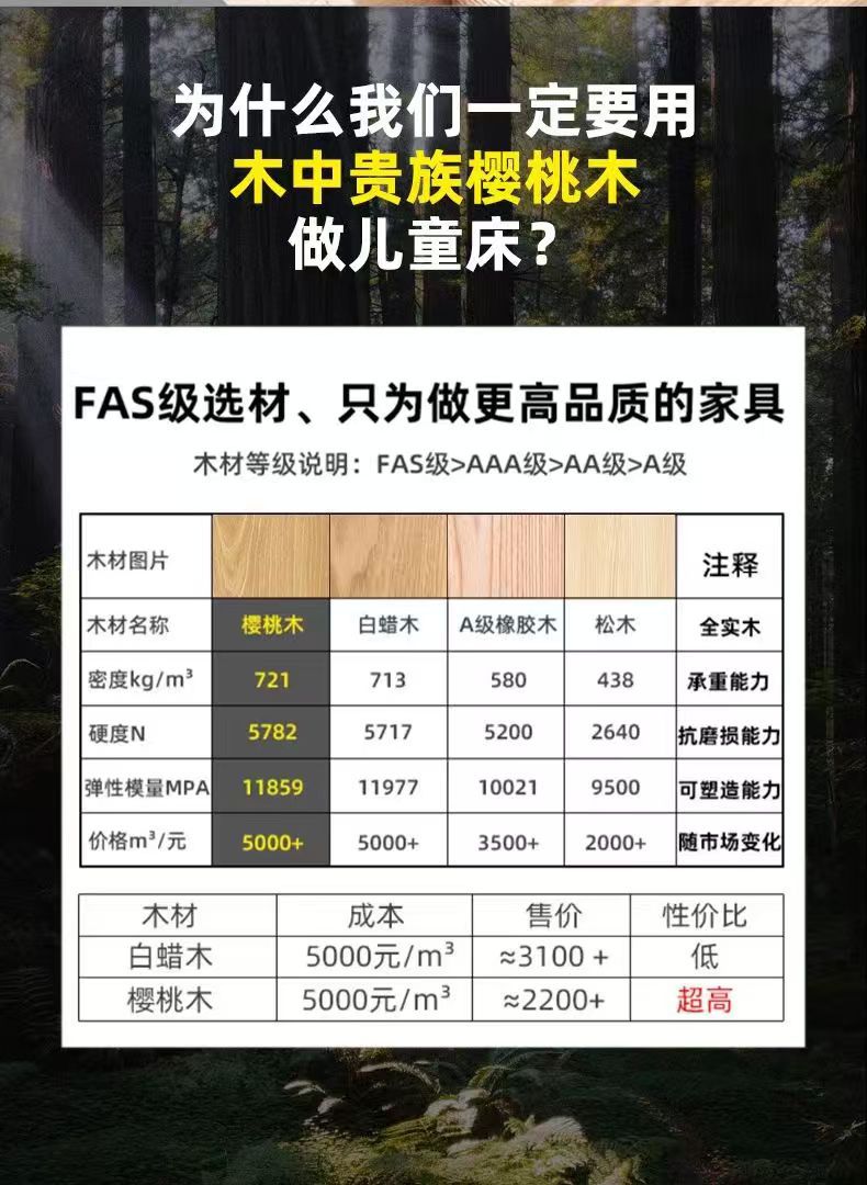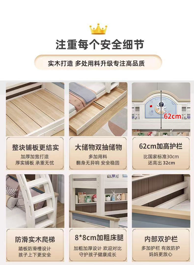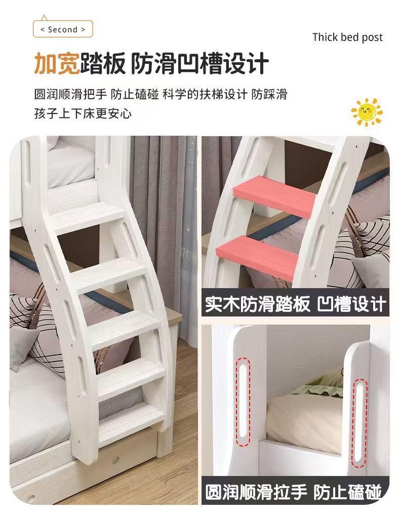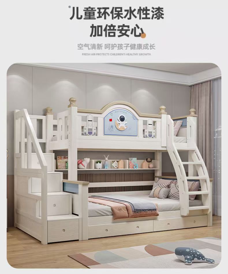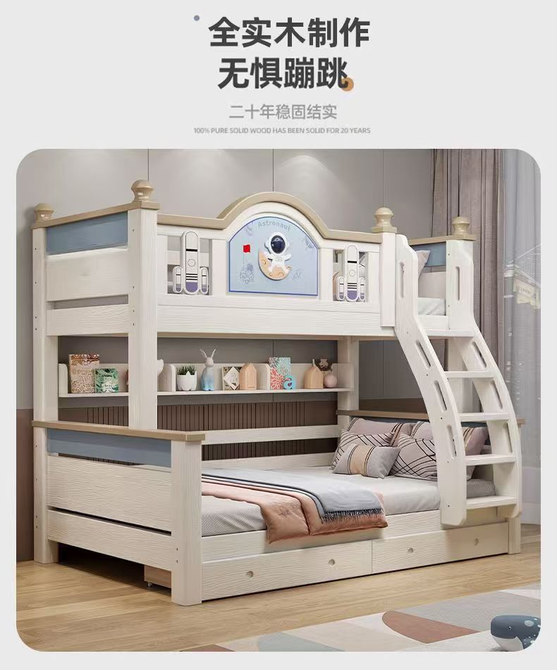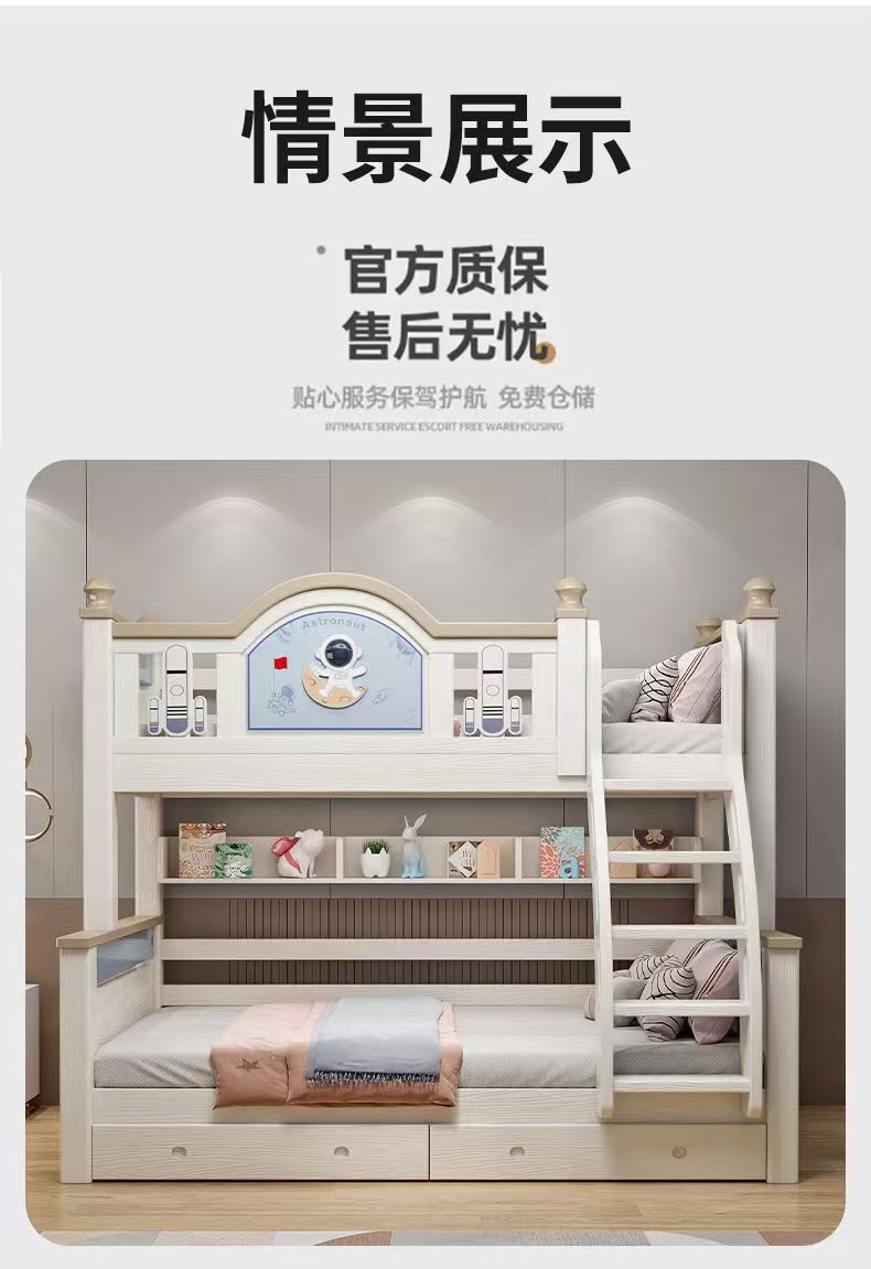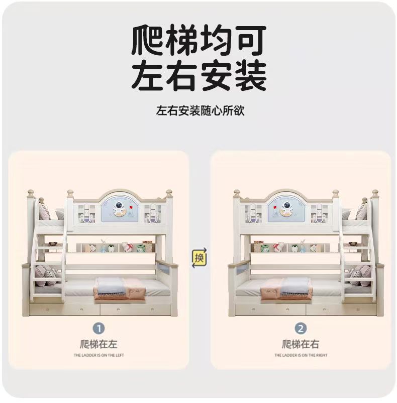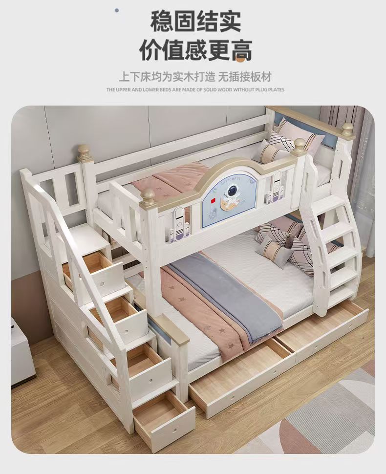 체리 우드 침대 이층 침대 솔리드 우드 라이트 럭셔리 2 층 높고 낮은 어린이 침대 분할 침대 공주 스타일스토어 가기