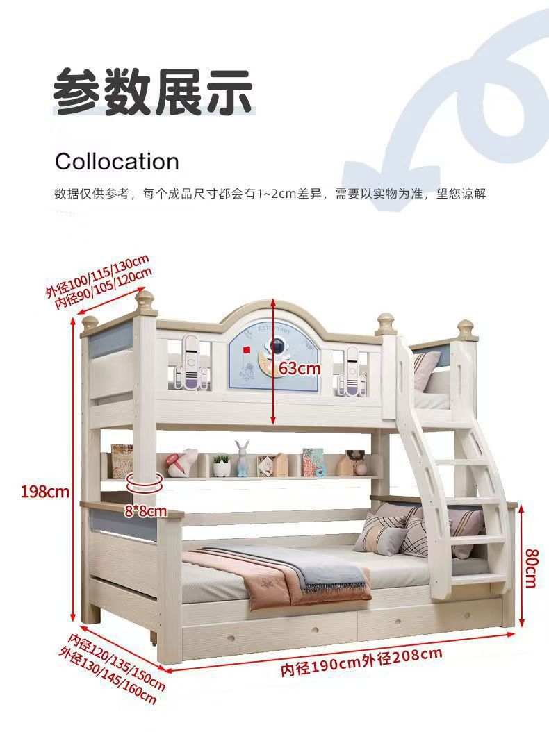 • 상부 침대 폭 130cm, 하부 침대 폭 160cm(외경) 위층 포함 + 설치
