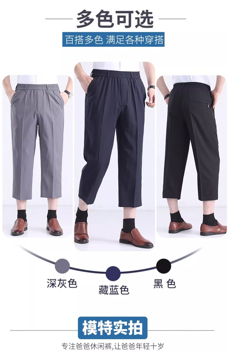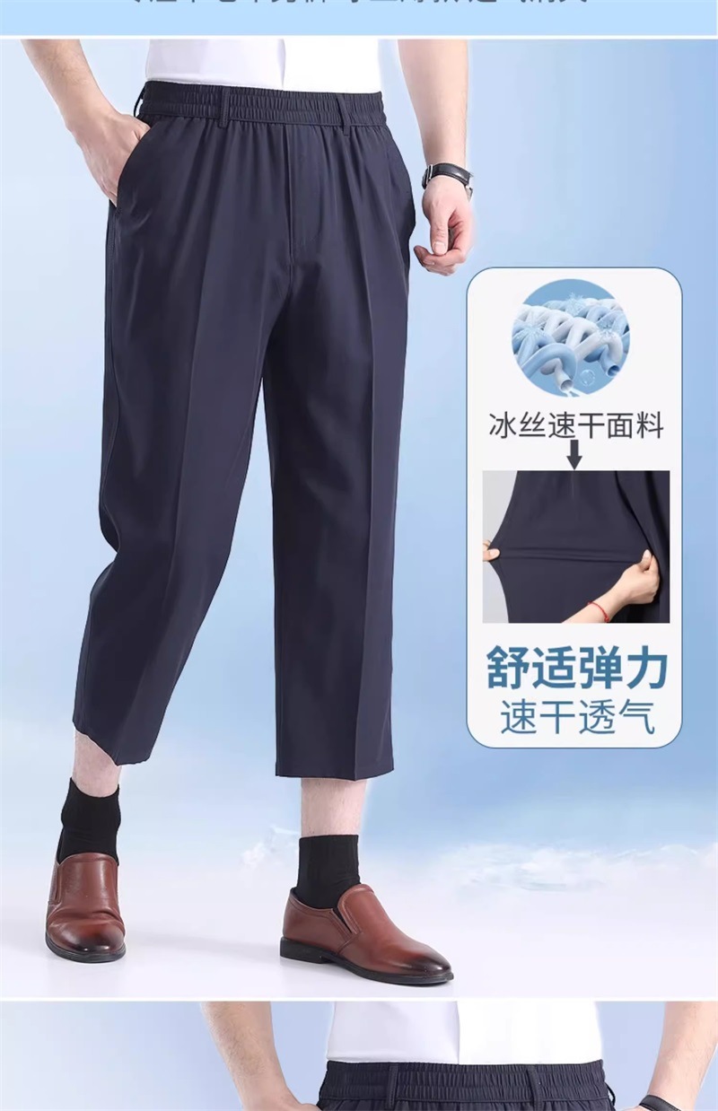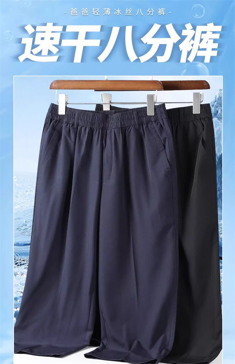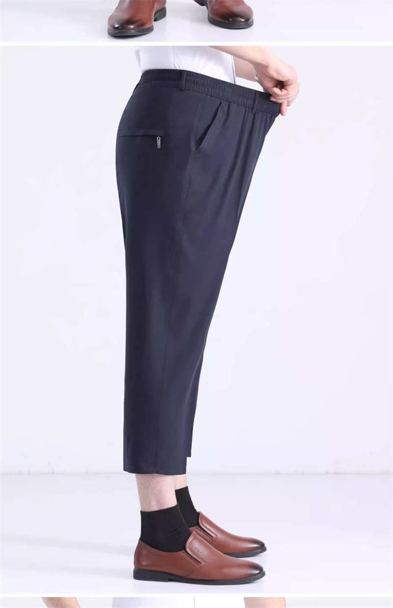 아빠의 바지 남자 여름 얇은 중년 노인 사람들의 얼음 실크 반바지 남자 스트레이트 느슨한 작은 남자 바지스토어 가기