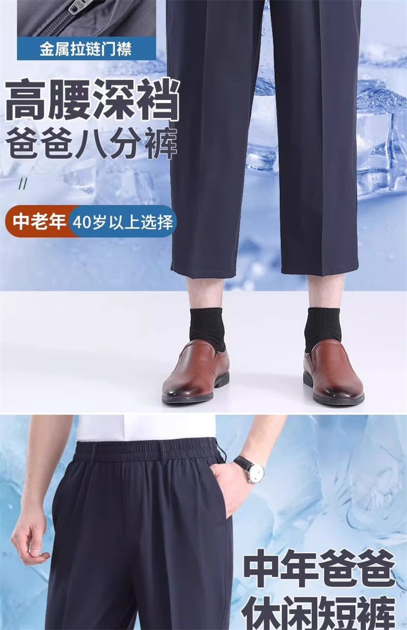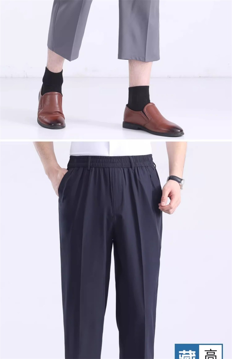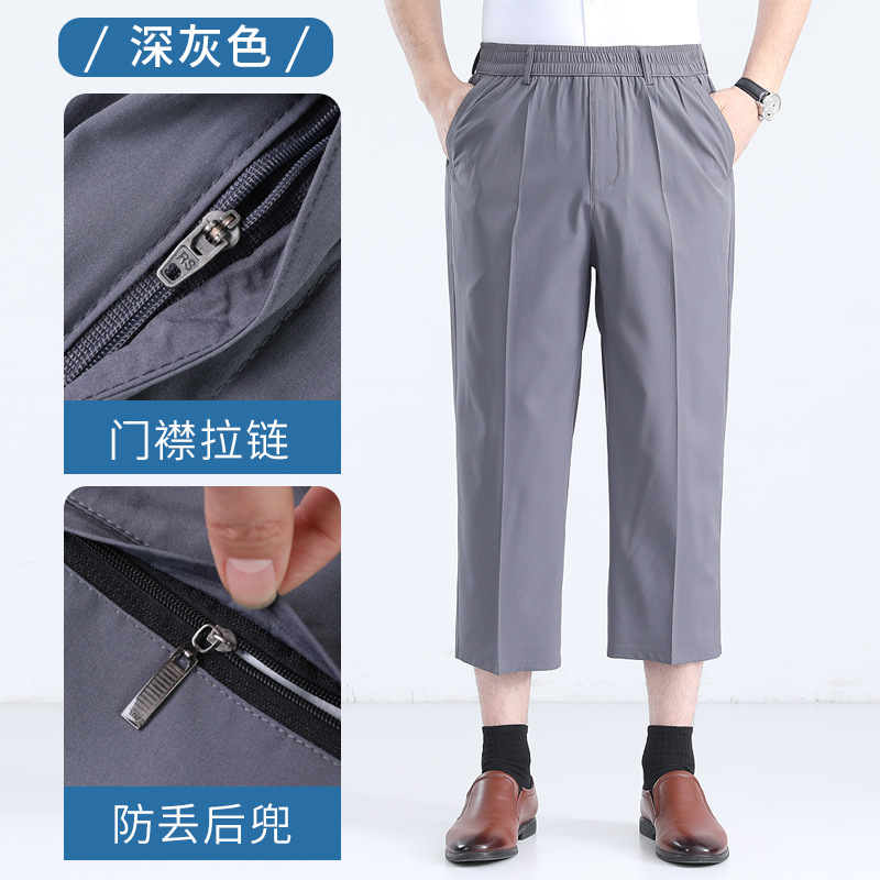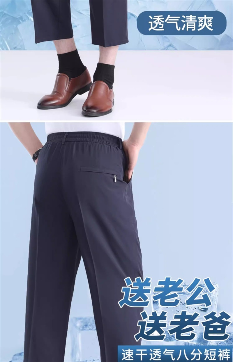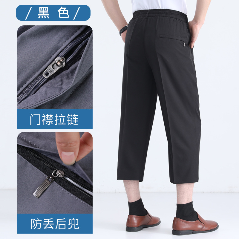 아빠의 바지 남자 여름 얇은 중년 노인 사람들의 얼음 실크 반바지 남자 스트레이트 느슨한 작은 남자 바지스토어 가기