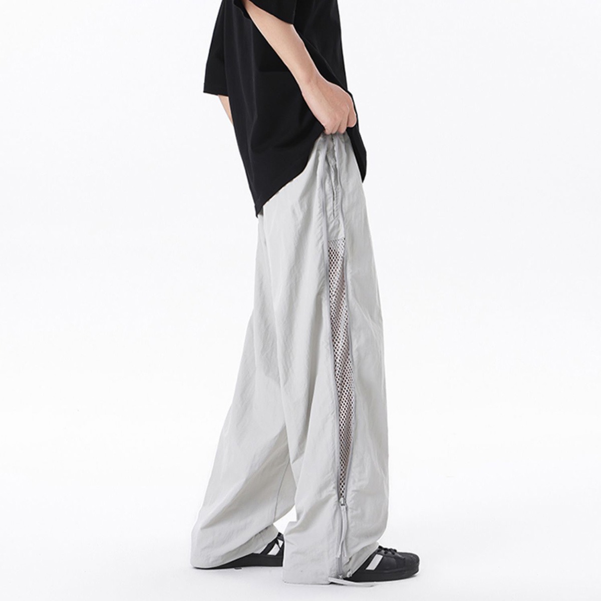 미국 트렌디 브랜드 레트로 하이 스트리트 아이스 실크 속건성 방수 지퍼 공수 바지 남성용 조절 가능한 레깅스 캐주얼 충전 바지스토어 가기