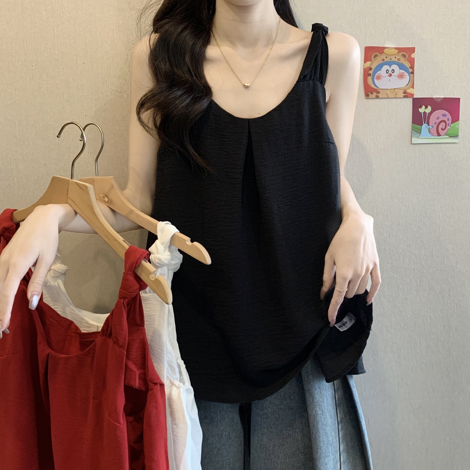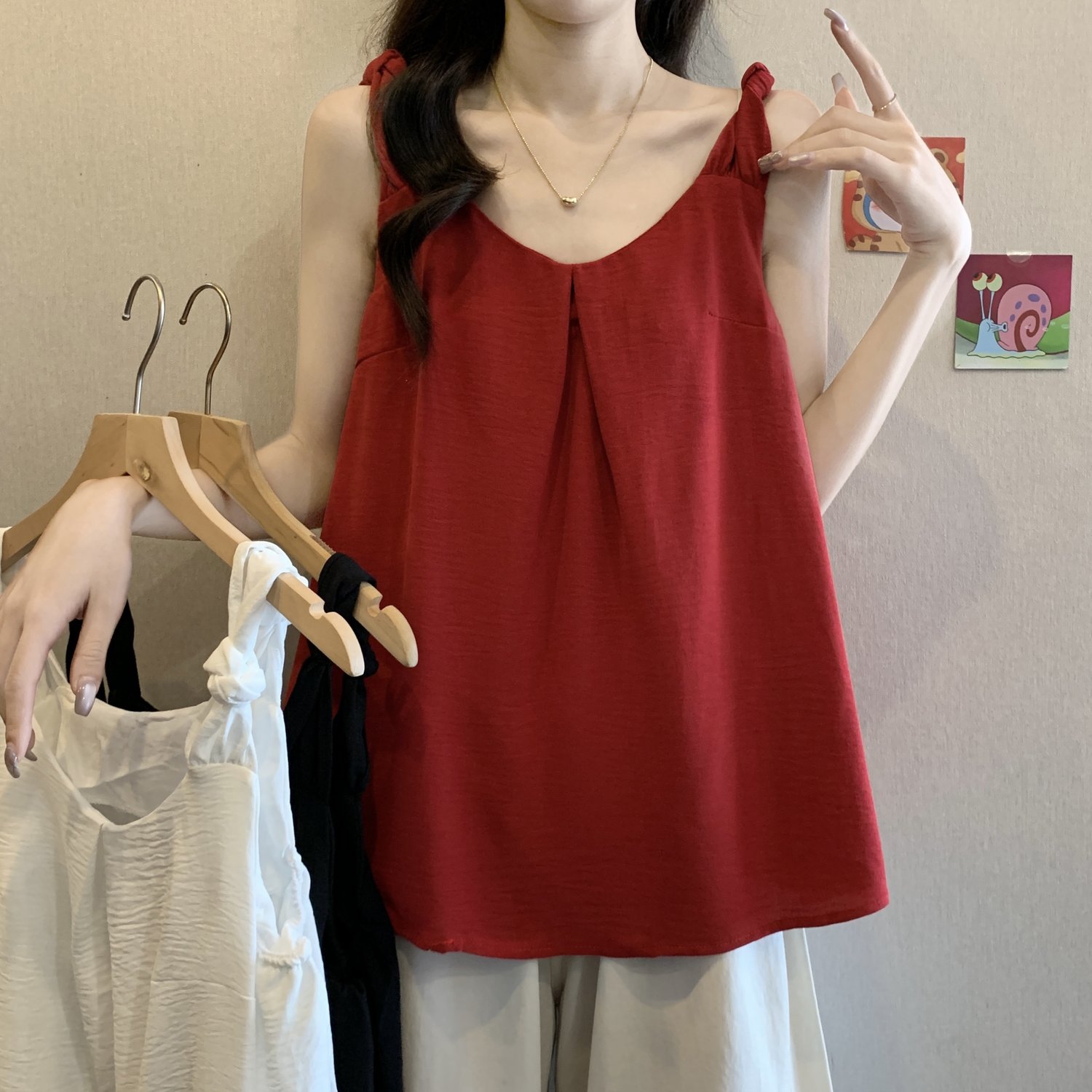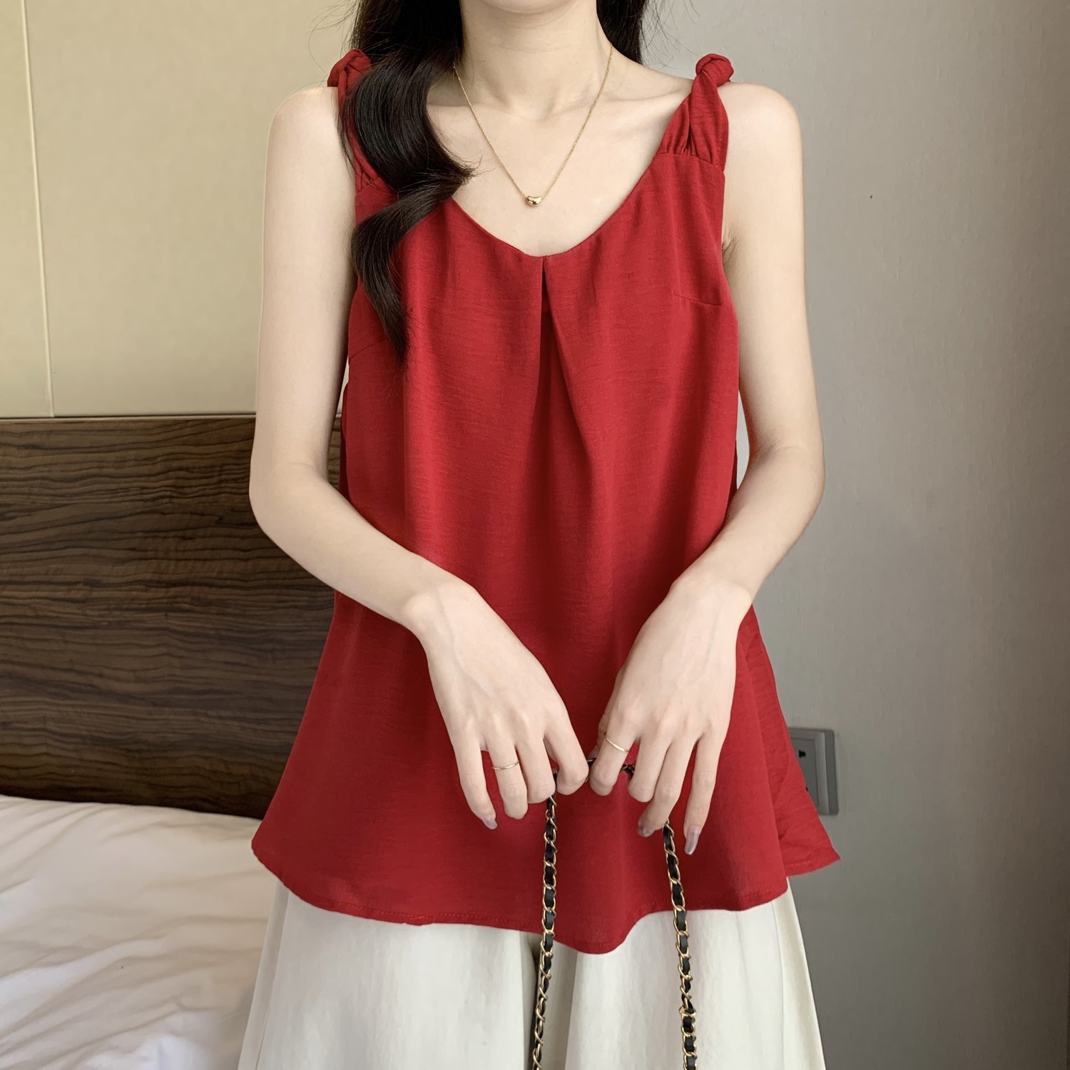 슈퍼 잘 생긴 레드 V 넥 카미 솔 여성 2025 년 봄과 여름 새로운 셔츠 통통녀 인형 셔츠 민소매 탑