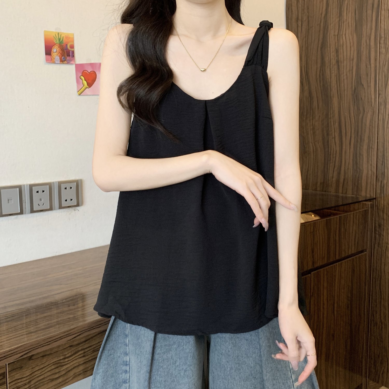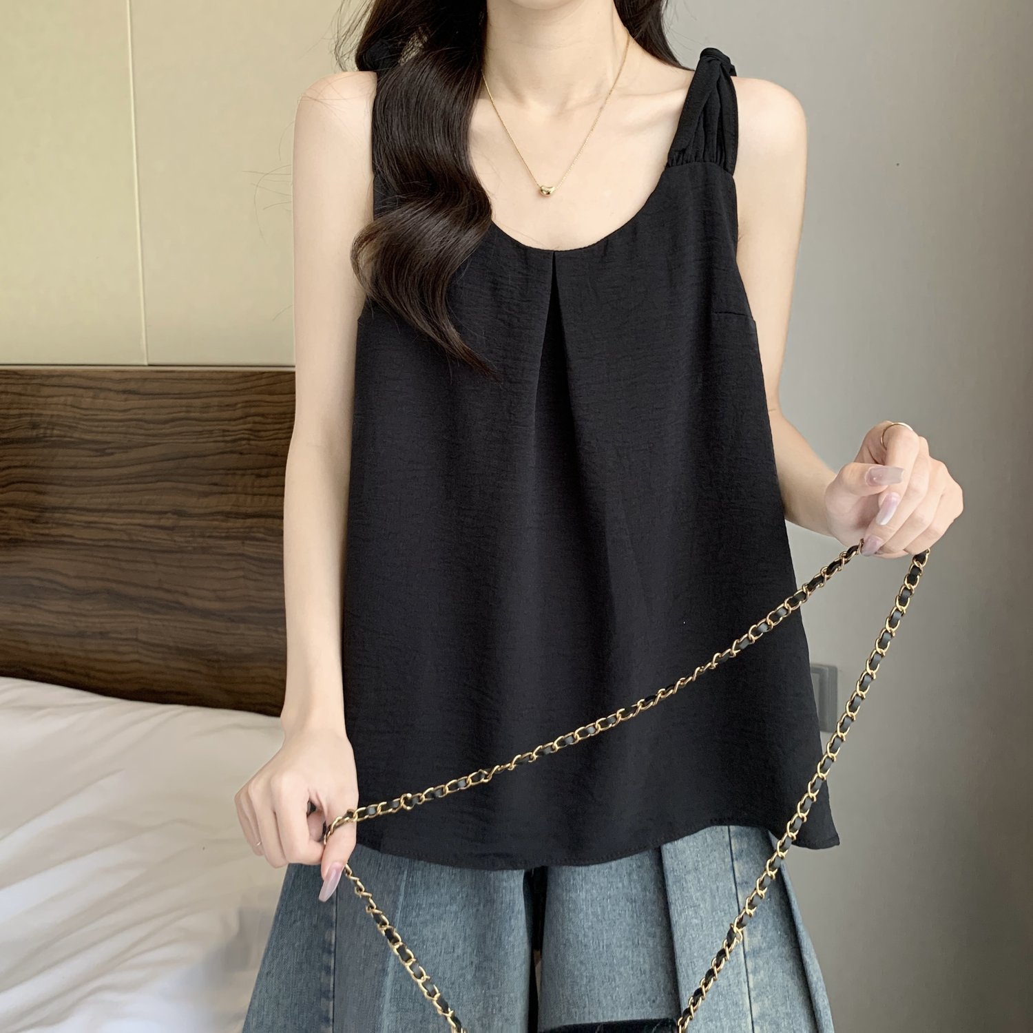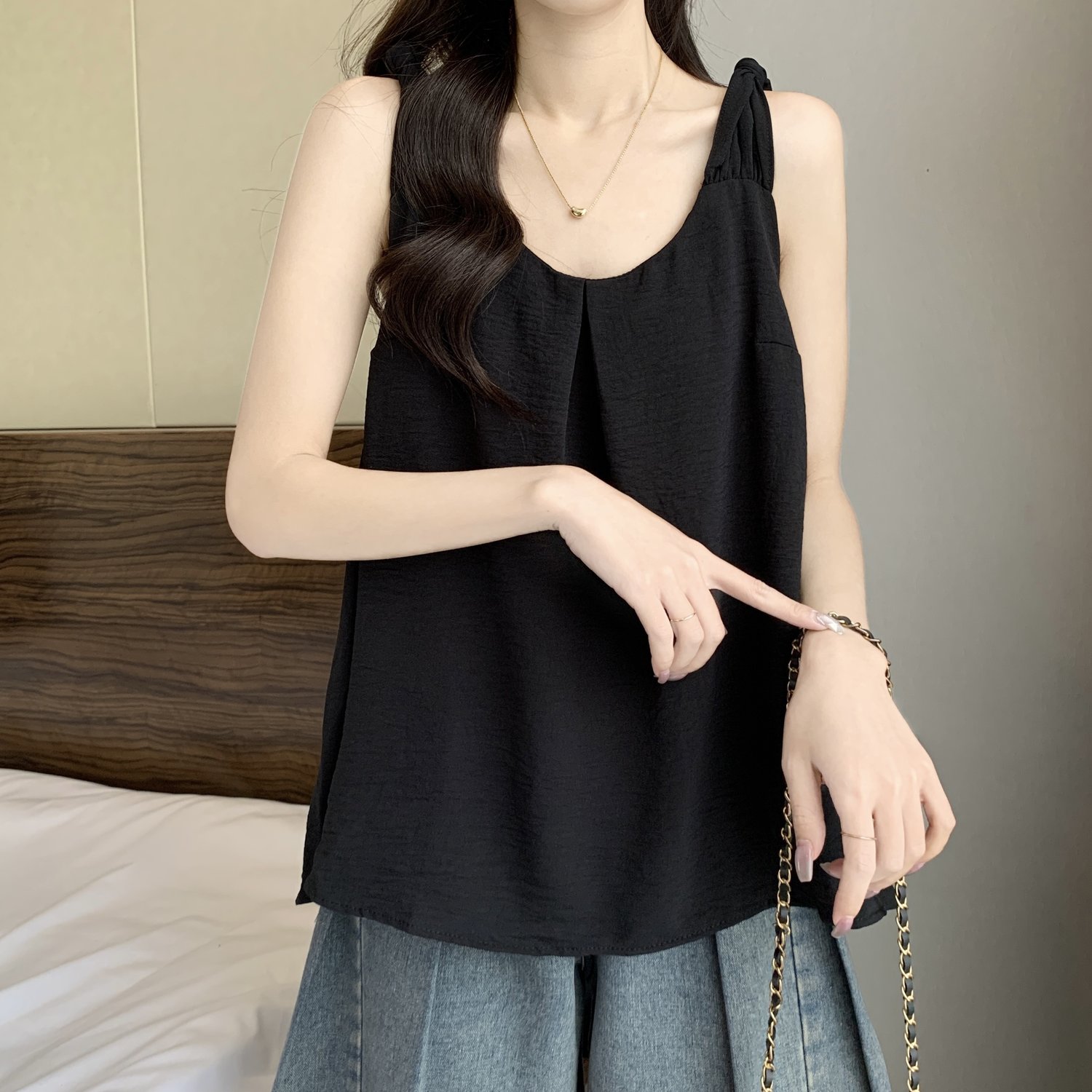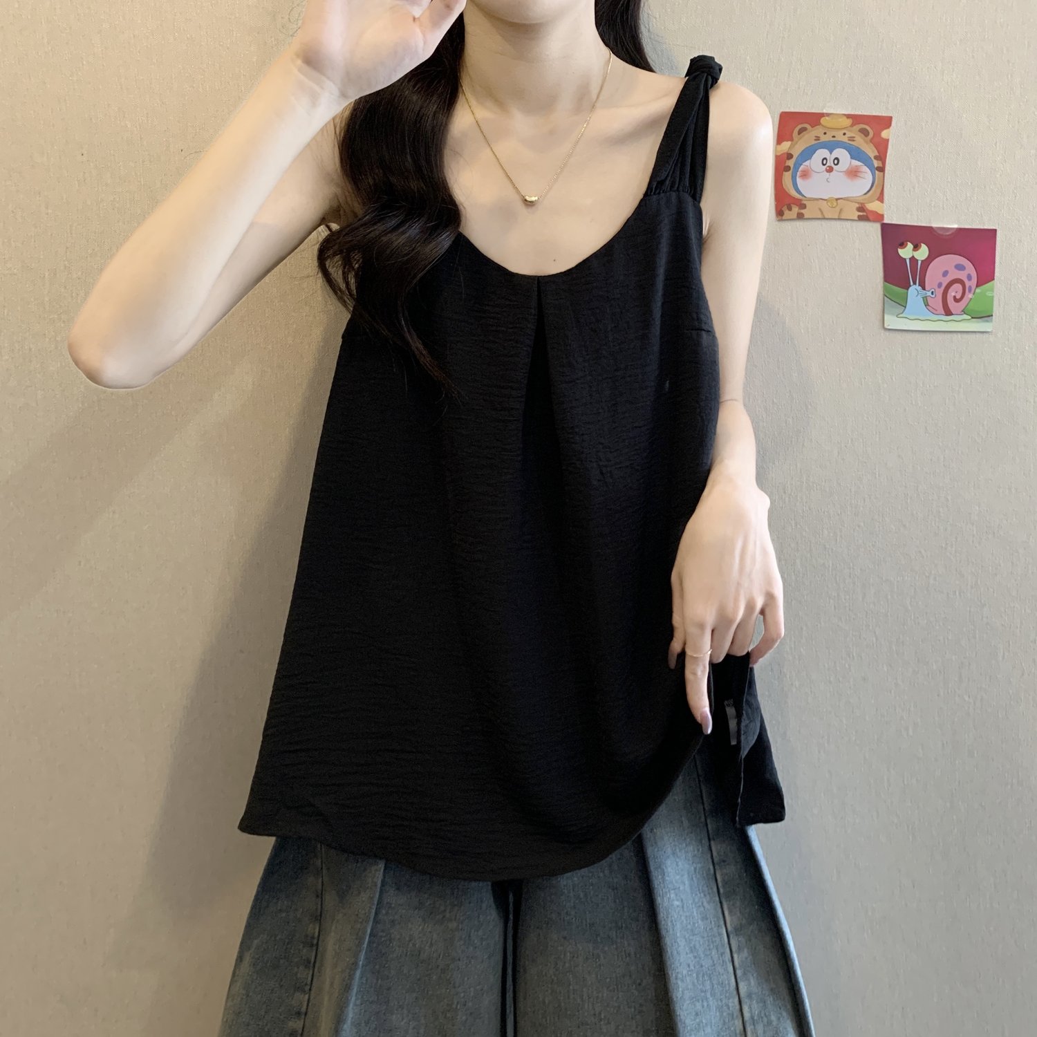 슈퍼 잘 생긴 레드 V 넥 카미 솔 여성 2025 년 봄과 여름 새로운 셔츠 통통녀 인형 셔츠 민소매 탑