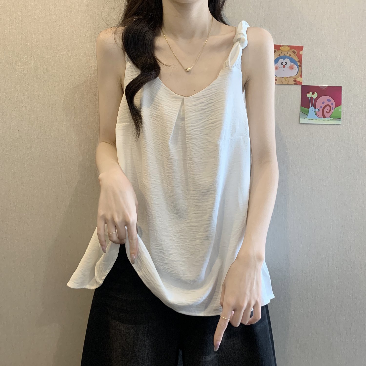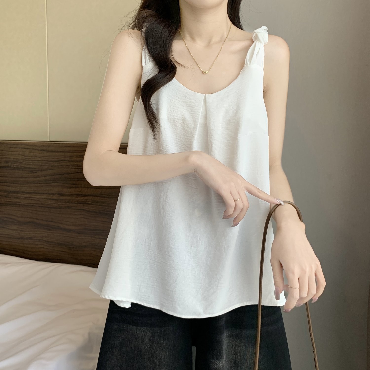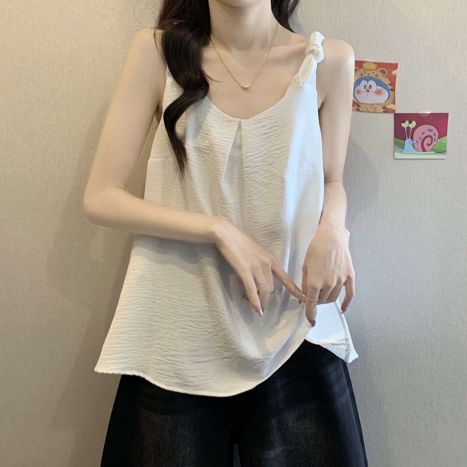 • 흰색 멜빵 [차맛/순정욕/아메리칸 레트로/배형체형/짧은 상의/예술적인 생우유/요정정신/성격/교활/쇄골/심플/