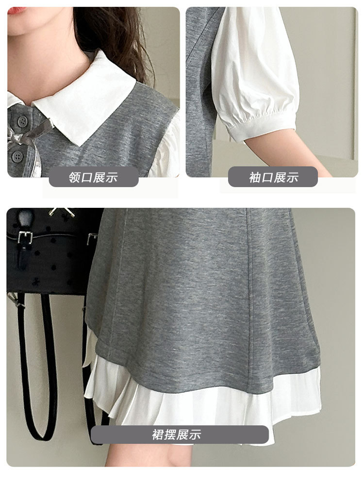 소녀 여름 얇은 원피스 2025 새로운 대학 스타일 가짜 투피스 폴로 칼라 유행 외국 스타일 큰 어린이 여름 원피스스토어 가기