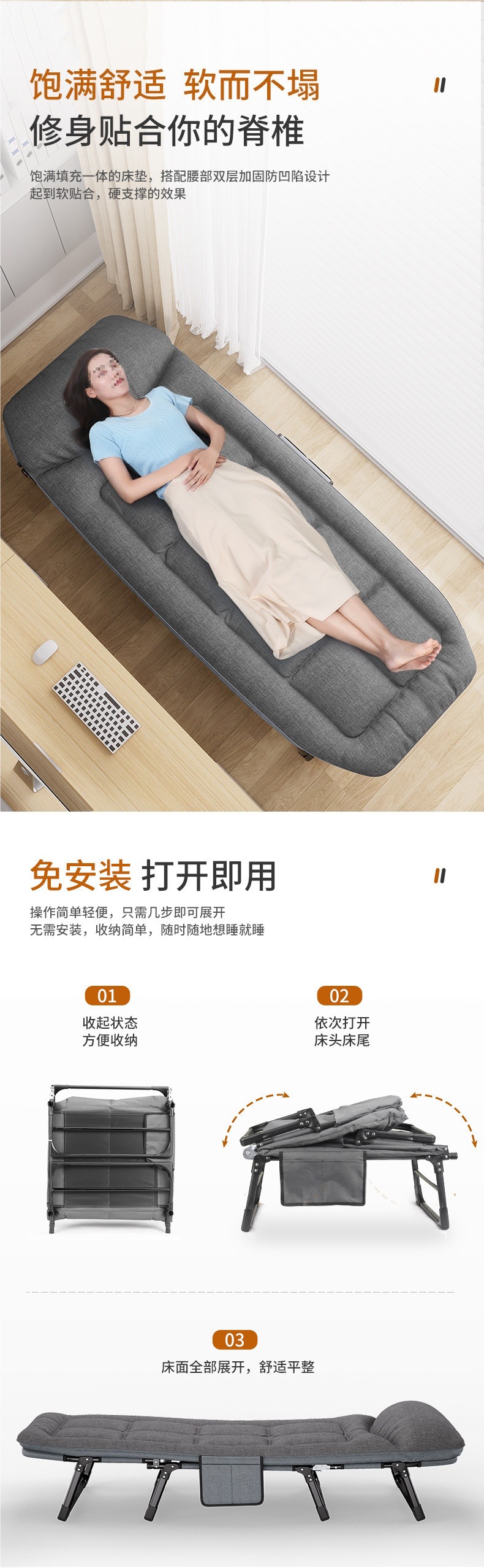접이식 침대 싱글 사람 점심 휴식 사무실 가구 휴대용 육군 침대 리콜 동반 침대 간단한 다기능스토어 가기