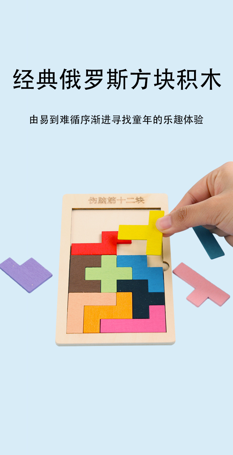 어린이를 위한 나무 직소 퍼즐, 러시안 테트리스 퍼즐, 조기 교육 재미있는 퍼즐, 두뇌를 사용하는 12개의 빌딩 블록 장난감