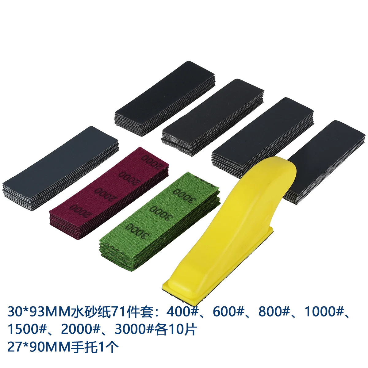 30*93MM水砂纸71件套:400#、600#、800#、1000#、1500#、2000#、3000#各10片+27*90MM手托1个