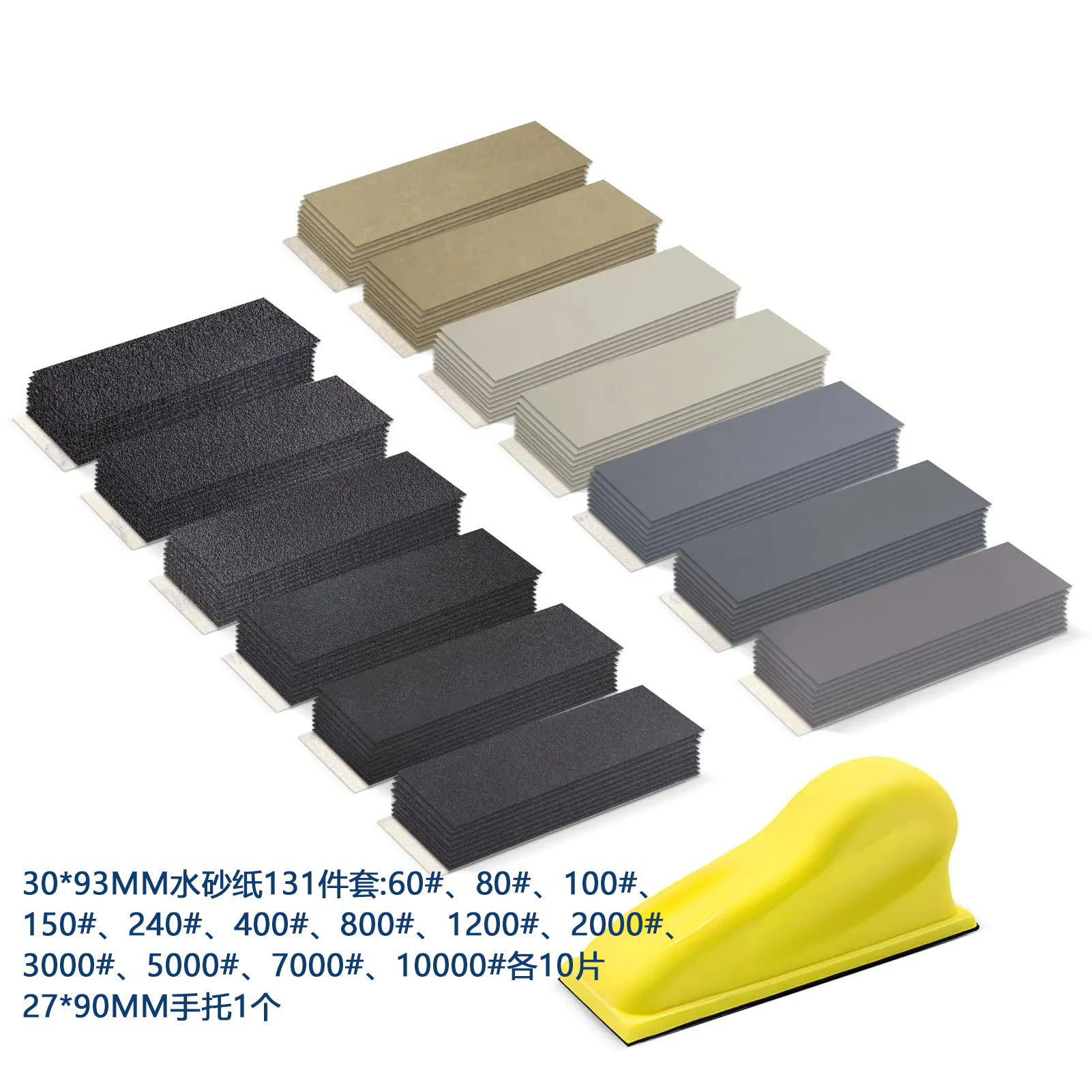 30*93MM水砂纸131件套:60#、80#、100#、150#、240#、400#、800#、1200#、2000#、3000#、5000#、7000#、10000#各10片+27*90MM手托1个