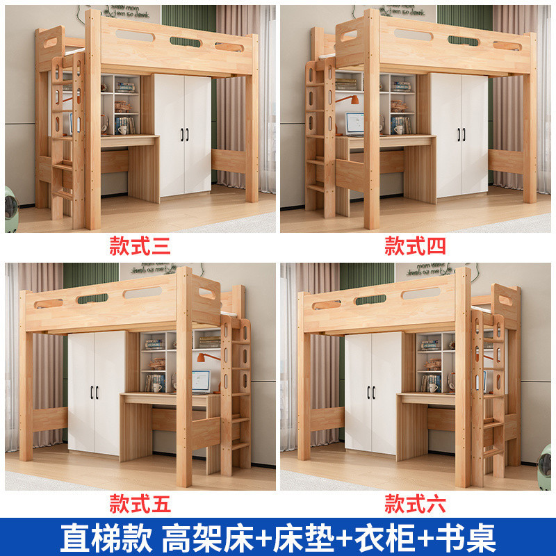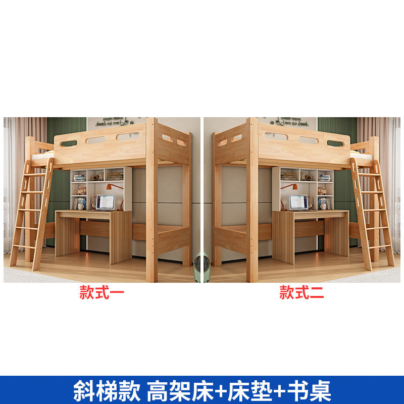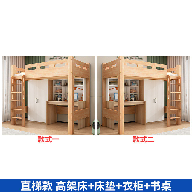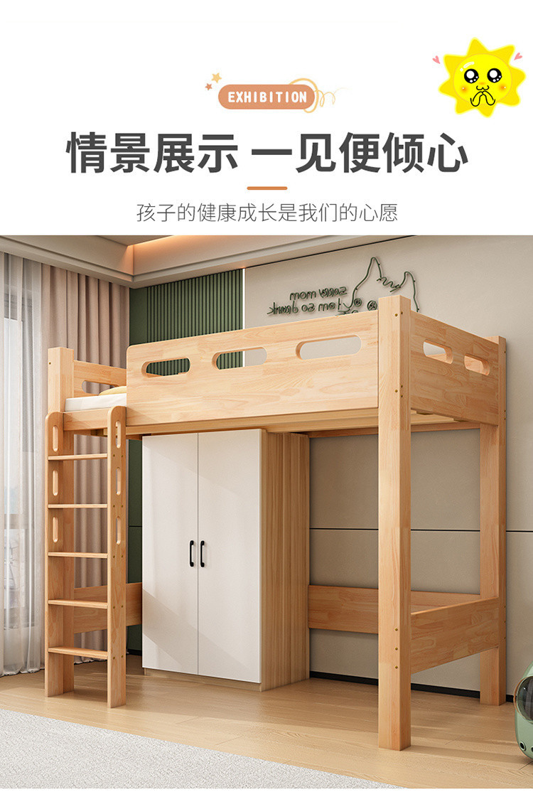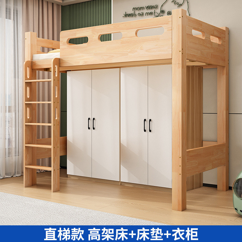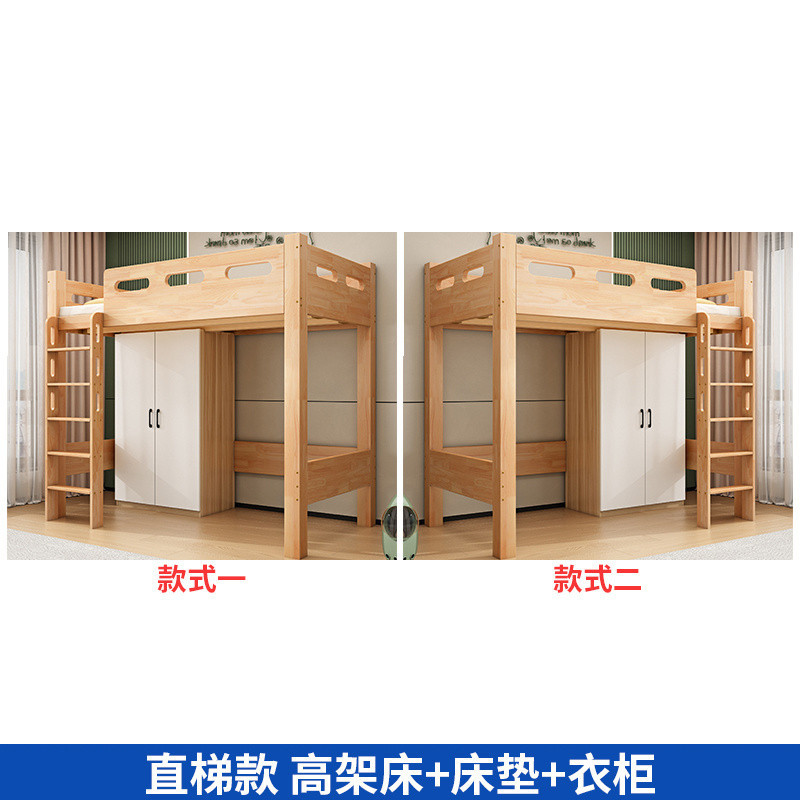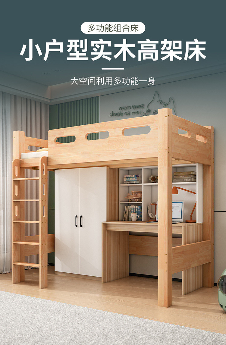 Fls 침대와 낮은 테이블 단단한 나무 고무 나무 작은 아파트 옷장 높은 낮은 침대 및 낮은 침대스토어 가기