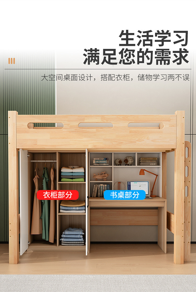 • 업그레이드된 로프트 침대 + 옷장, 무료 매트리스