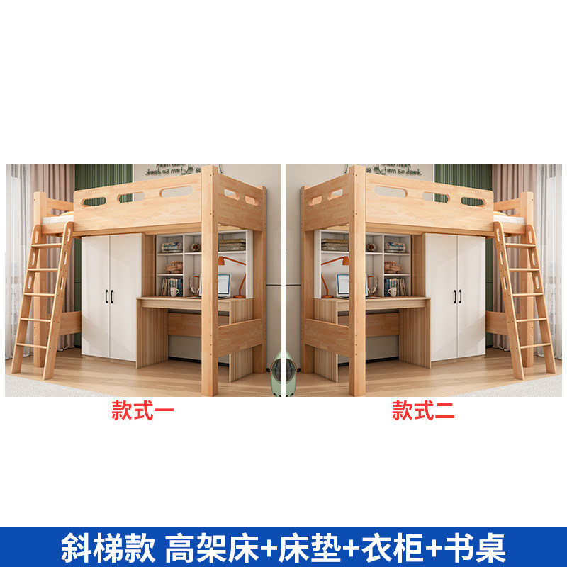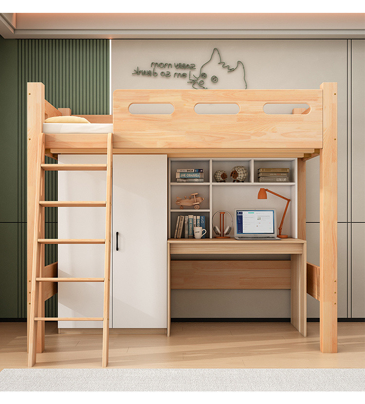 Fls 침대와 낮은 테이블 단단한 나무 고무 나무 작은 아파트 옷장 높은 낮은 침대 및 낮은 침대