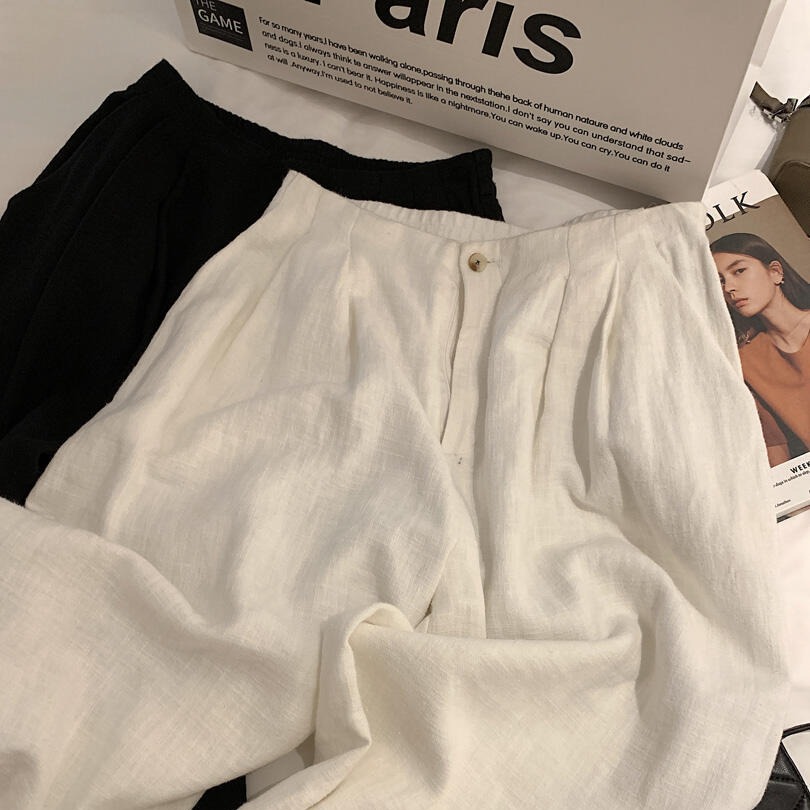 슬랙 선 스크린 화이트 리넨 게으른 드레이핑 높은 허리 넓은 다리 바지로 기질 미친 보너스